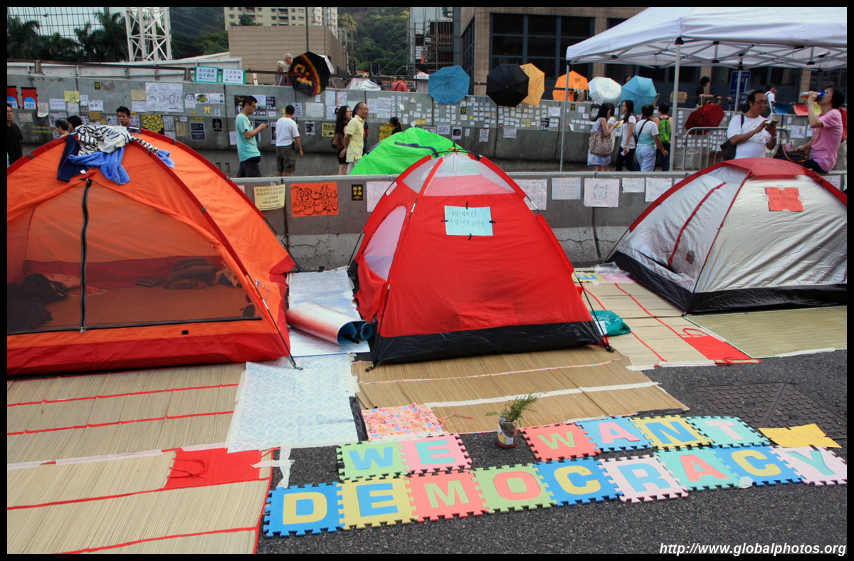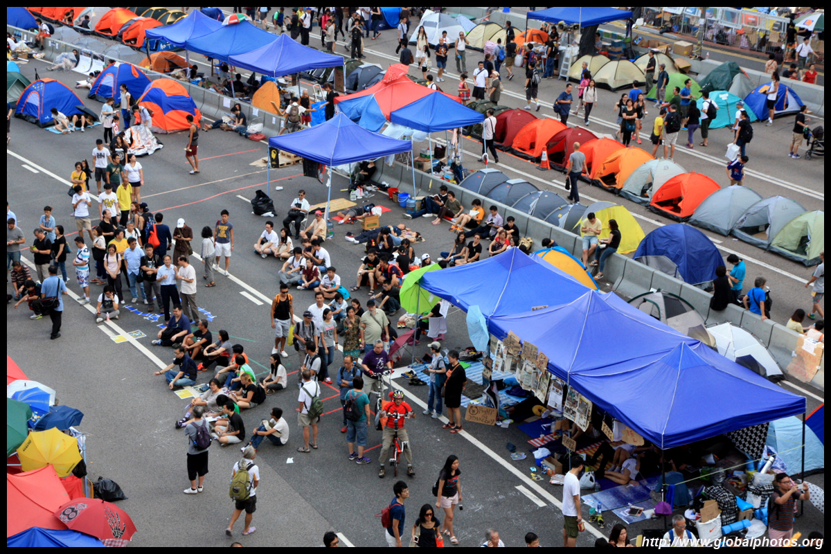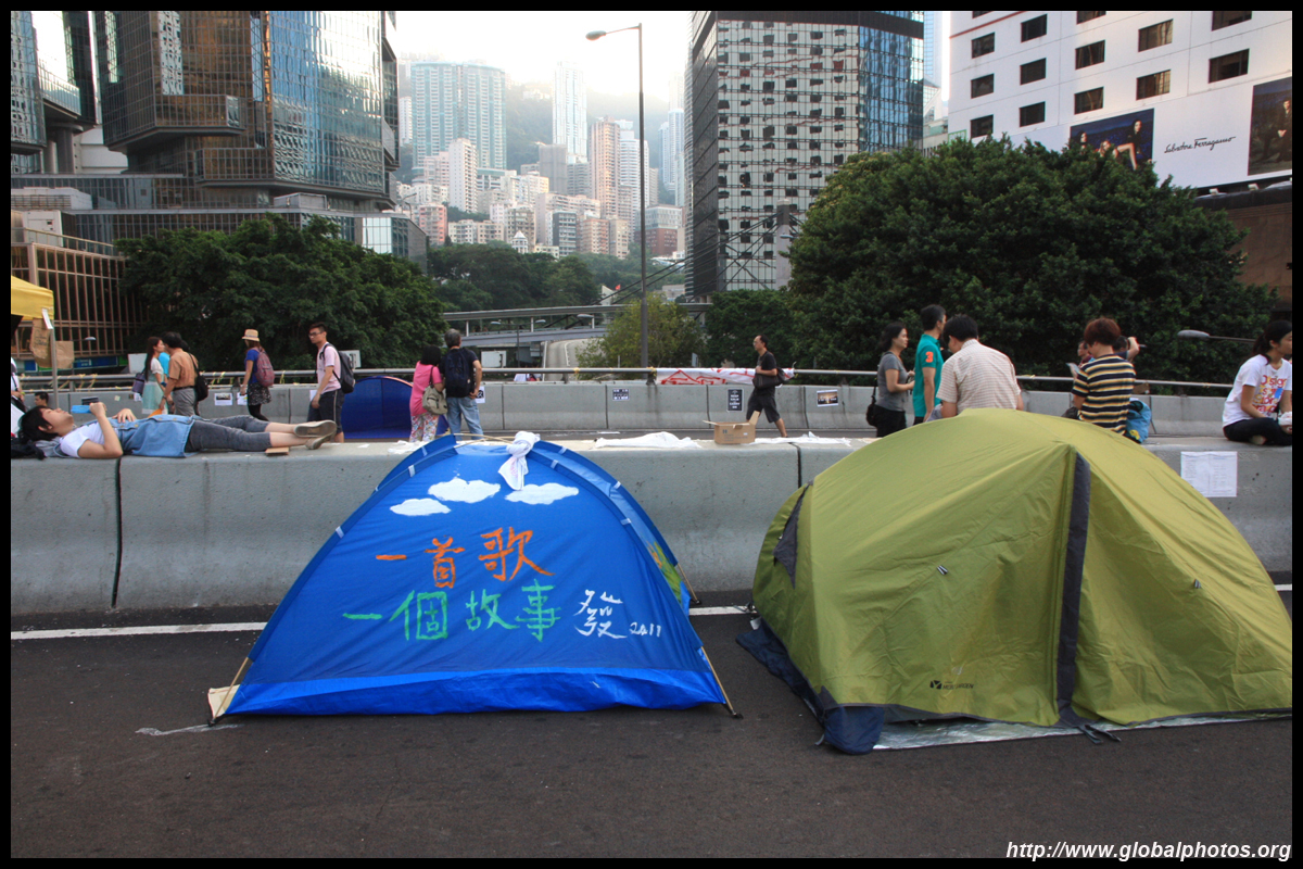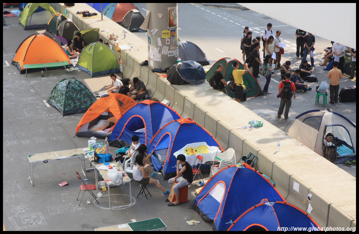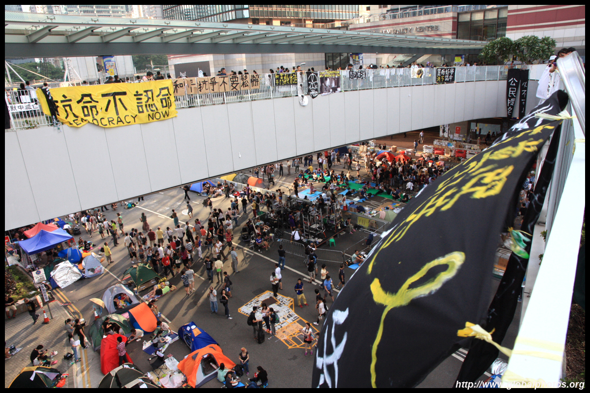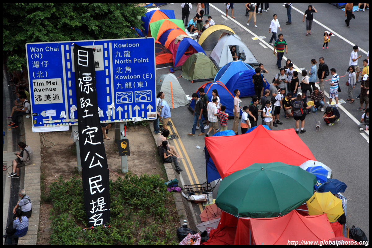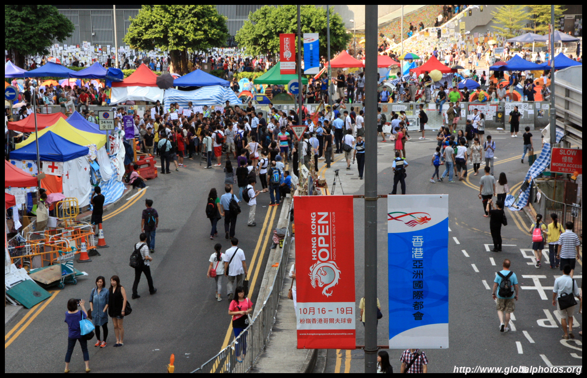 The Occupy Central civil disobedience protest began on September 28, 2014 to voice out against restrictions to universal suffrage being proposed. While originally meant to paralyze the financial district, spillover protests appeared in many parts of the city. The main protest camp was outside the government headquarters in Admiralty.