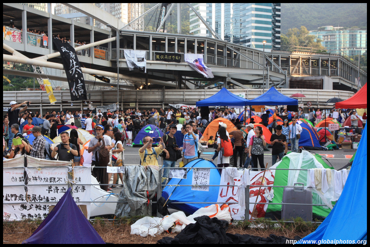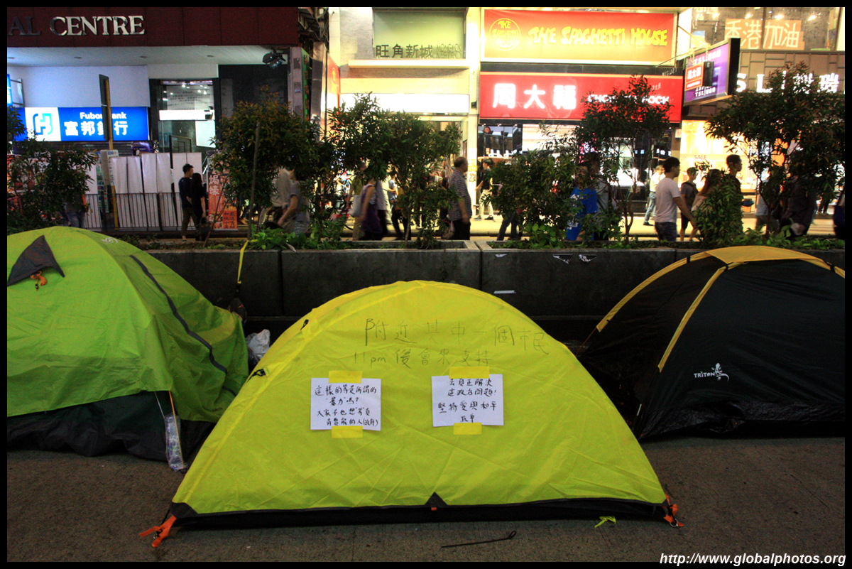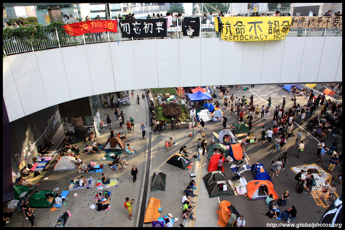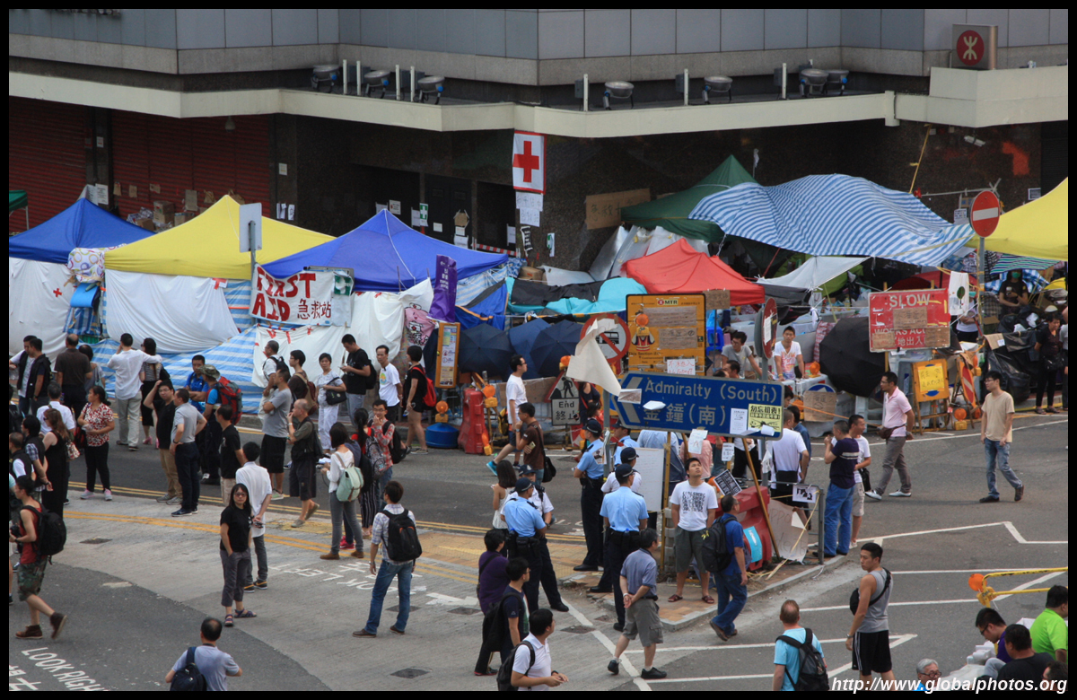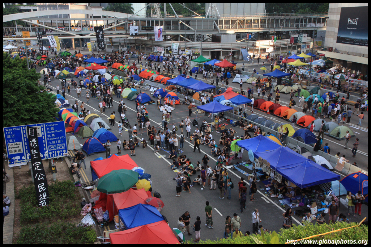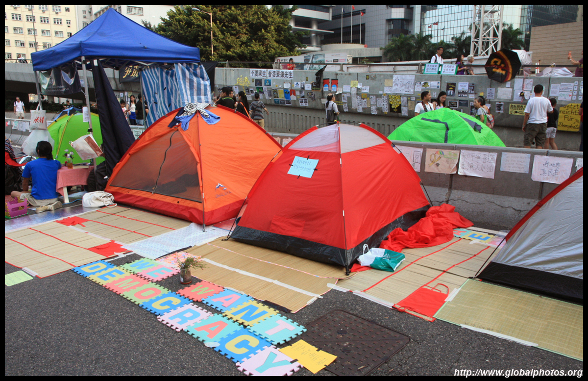 The Occupy Central civil disobedience protest began on September 28, 2014 to voice out against restrictions to universal suffrage being proposed. While originally meant to paralyze the financial district, spillover protests appeared in many parts of the city. The main protest camp was outside the government headquarters in Admiralty.