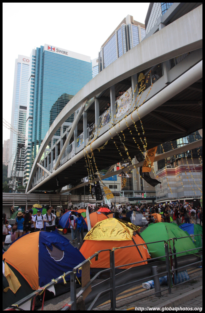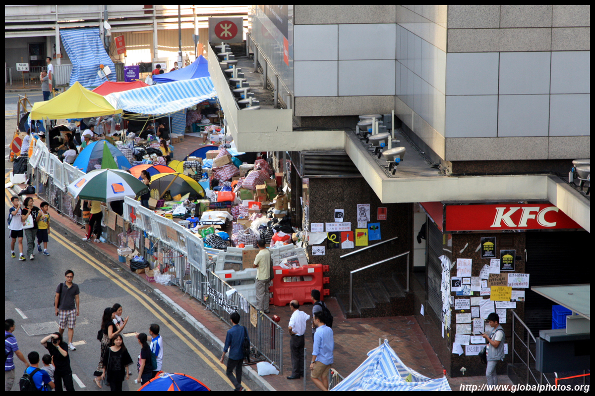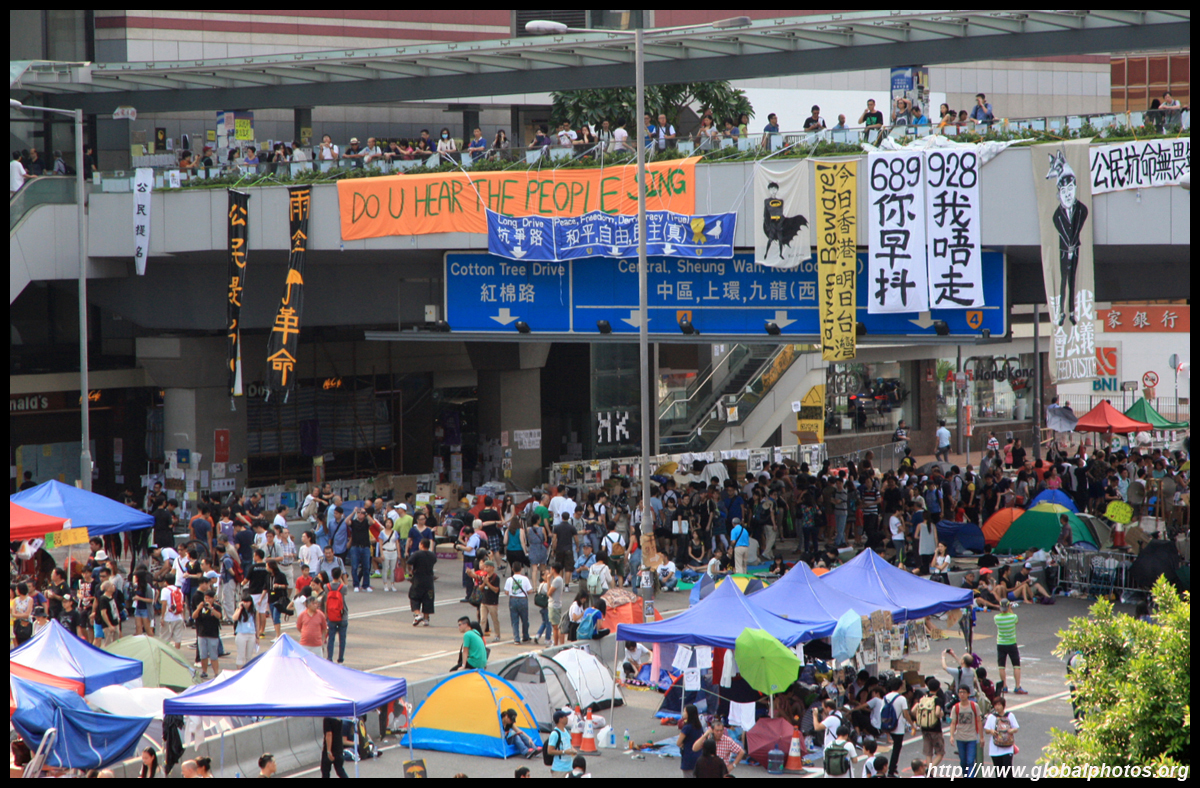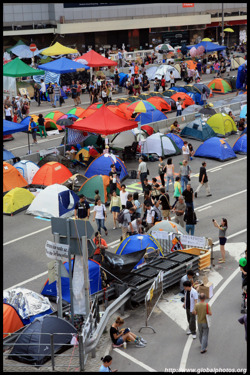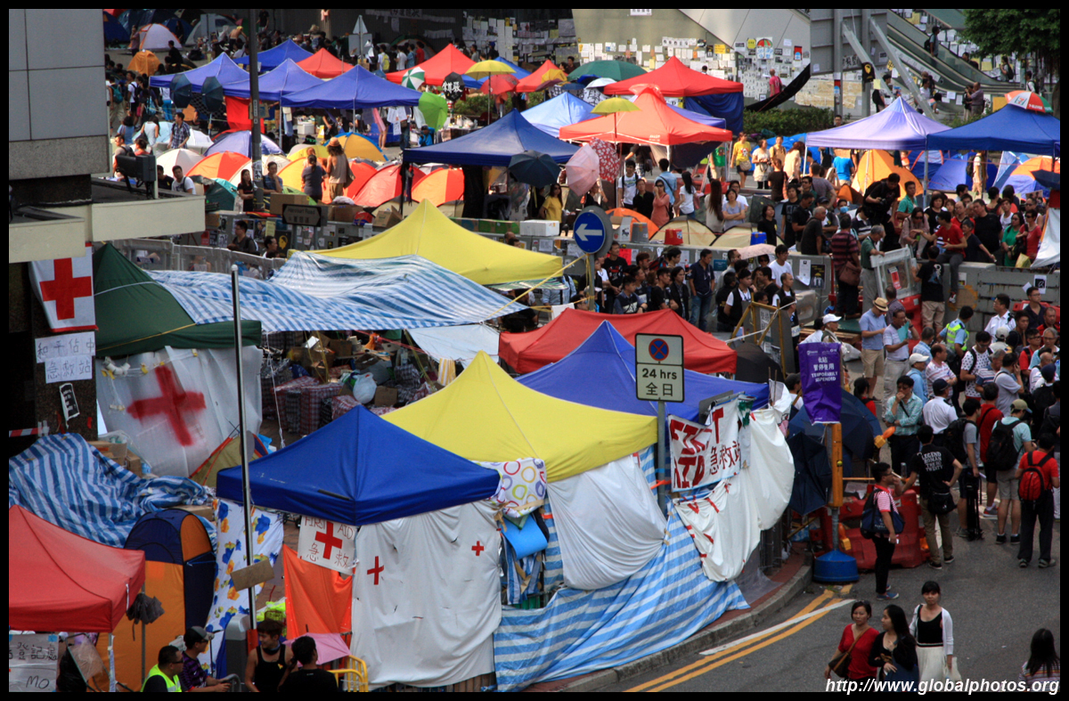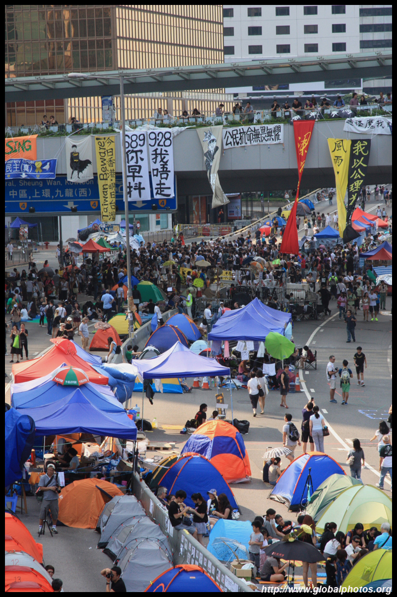 The Occupy Central civil disobedience protest began on September 28, 2014 to voice out against restrictions to universal suffrage being proposed. While originally meant to paralyze the financial district, spillover protests appeared in many parts of the city. The main protest camp was outside the government headquarters in Admiralty.