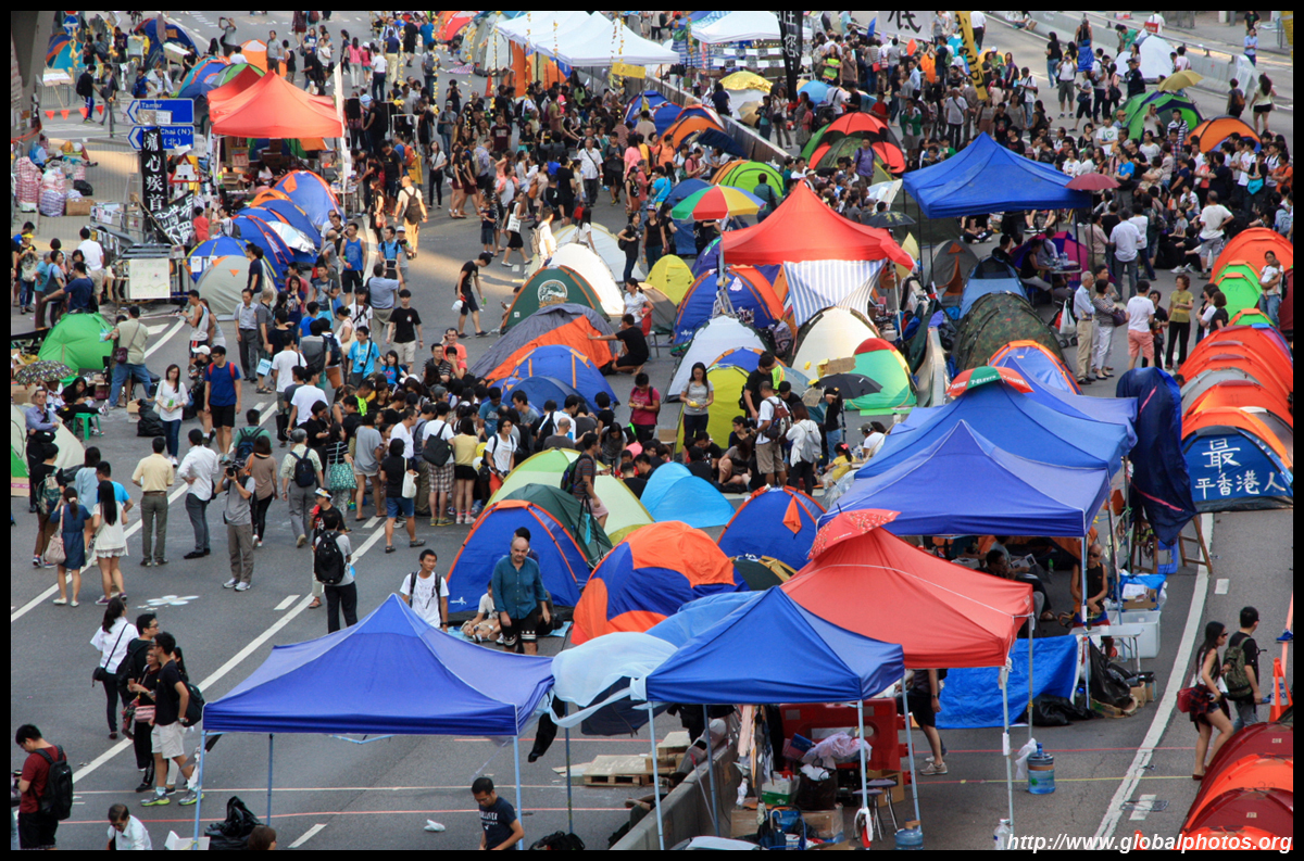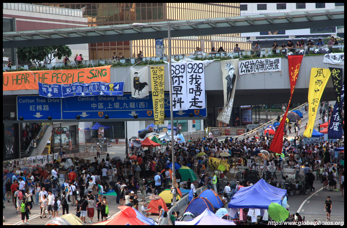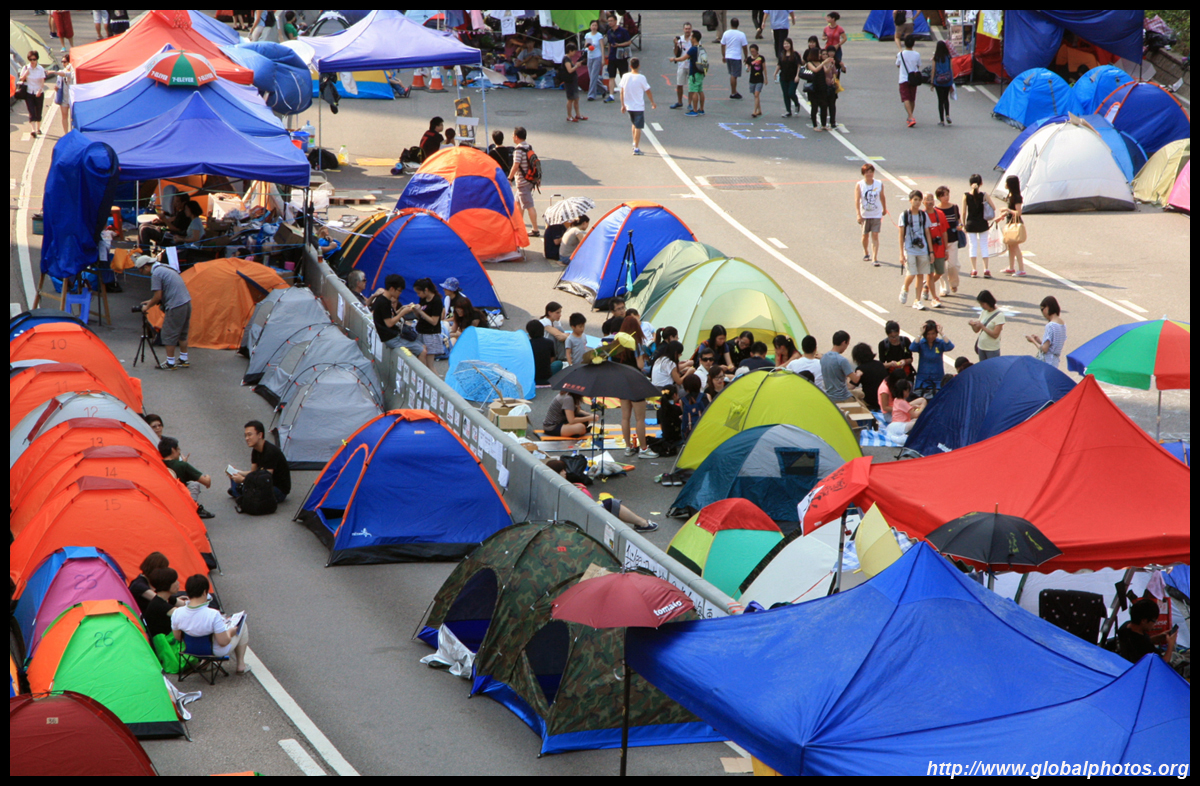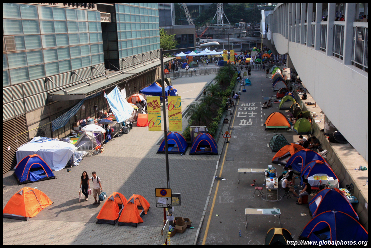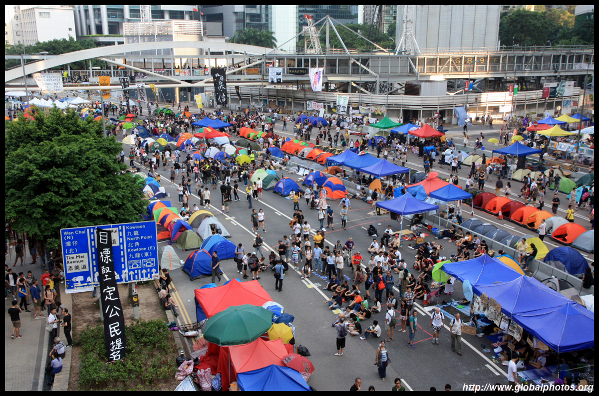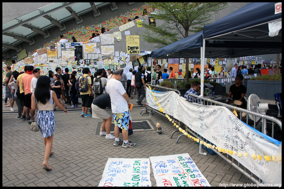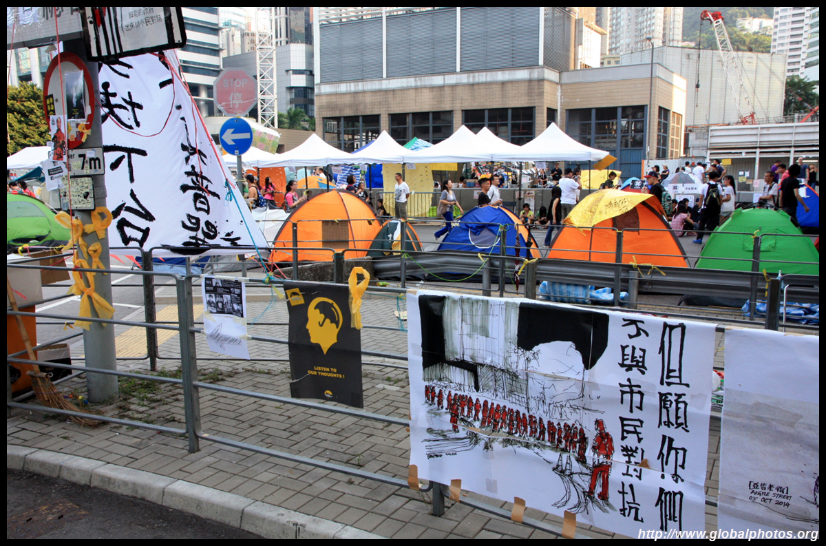 The Occupy Central civil disobedience protest began on September 28, 2014 to voice out against restrictions to universal suffrage being proposed. While originally meant to paralyze the financial district, spillover protests appeared in many parts of the city. The main protest camp was outside the government headquarters in Admiralty.
