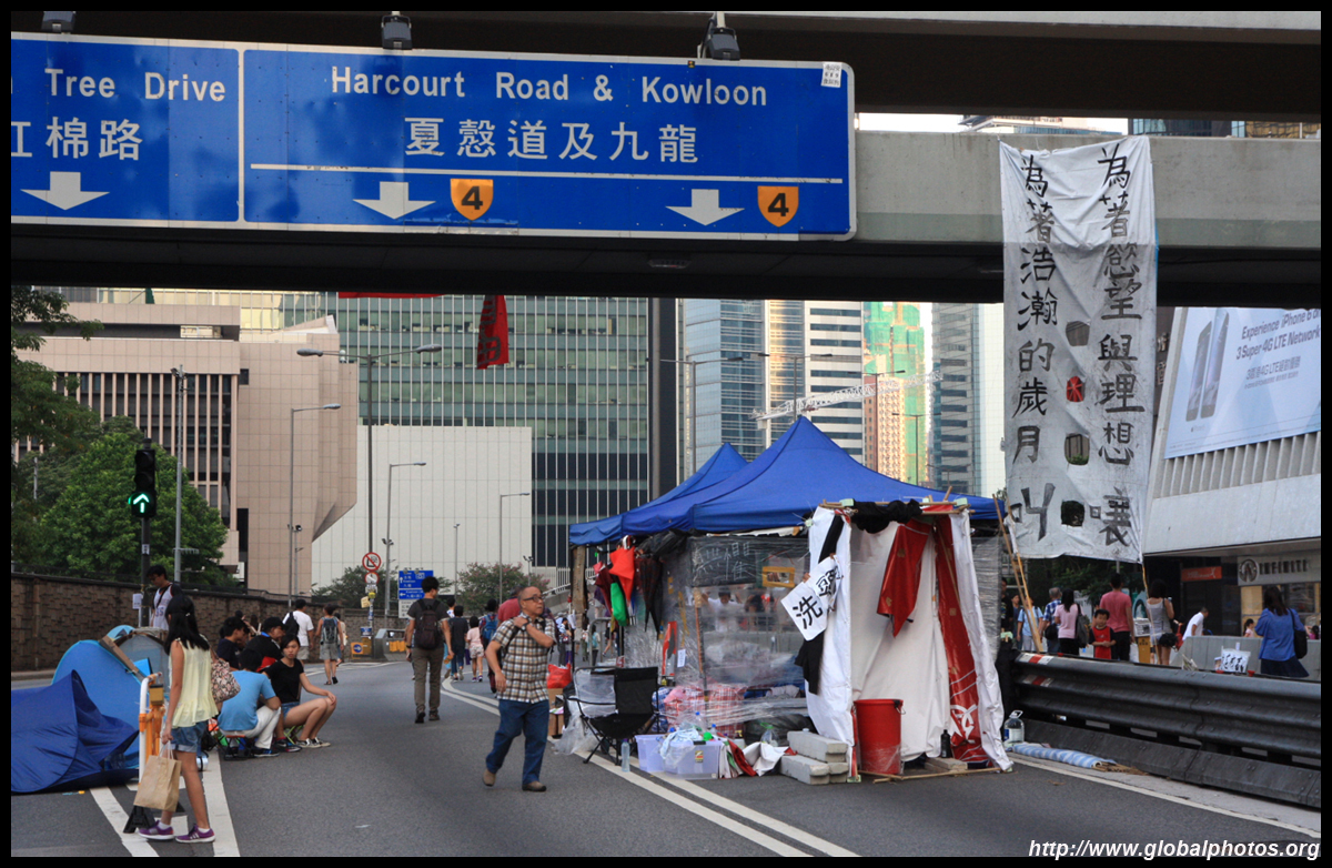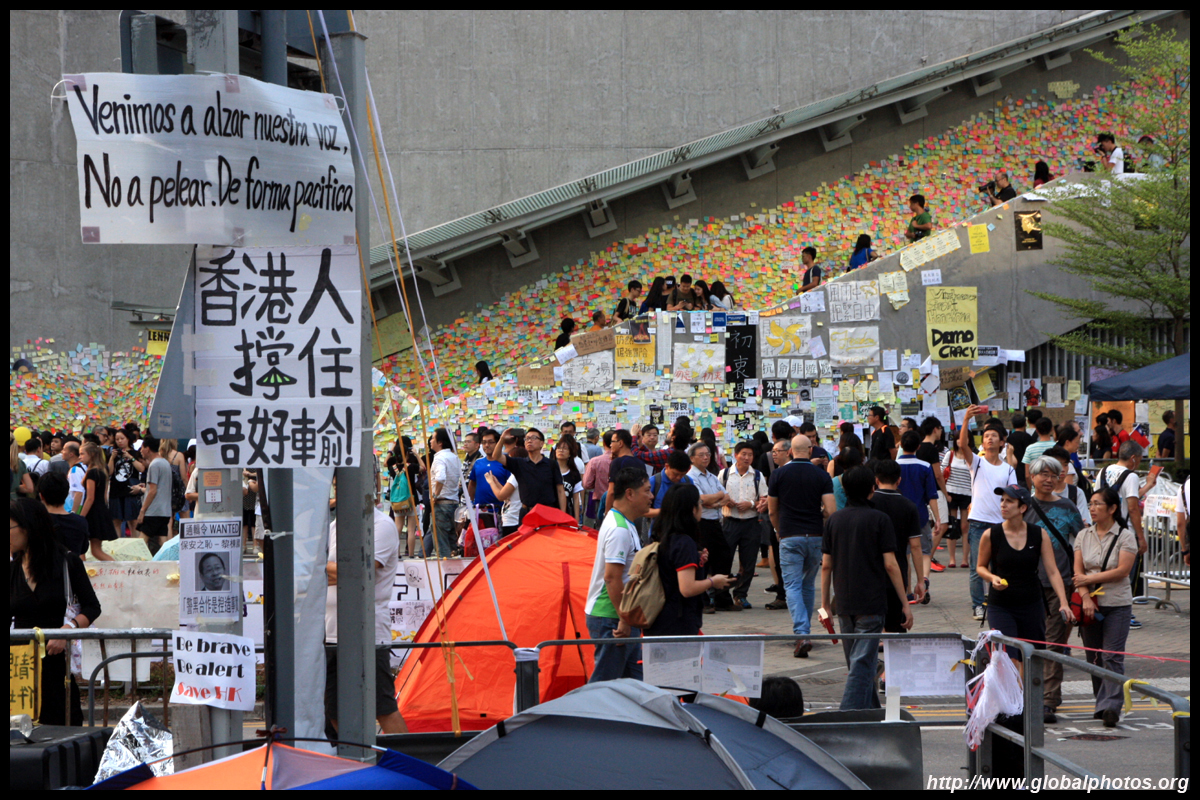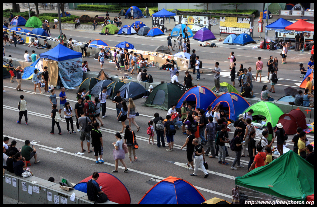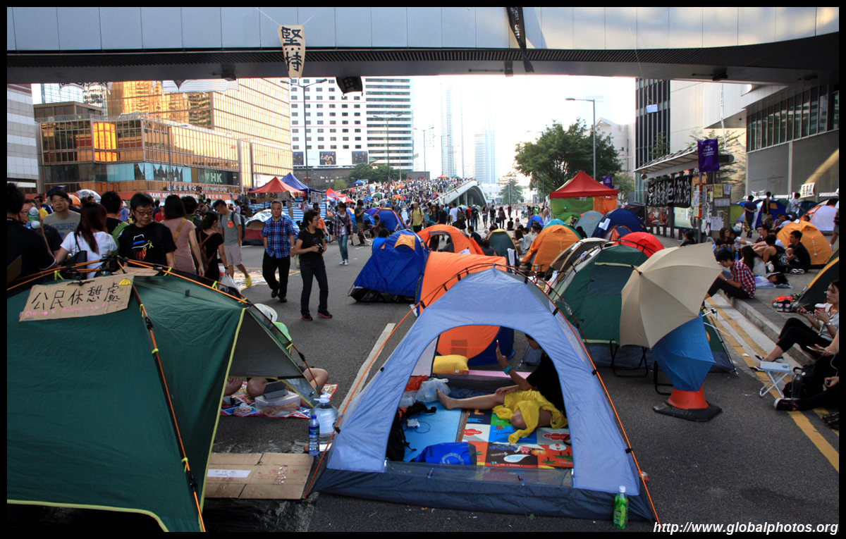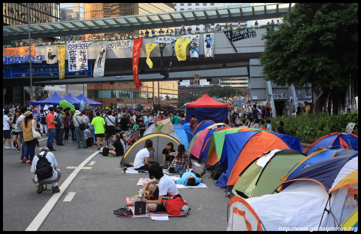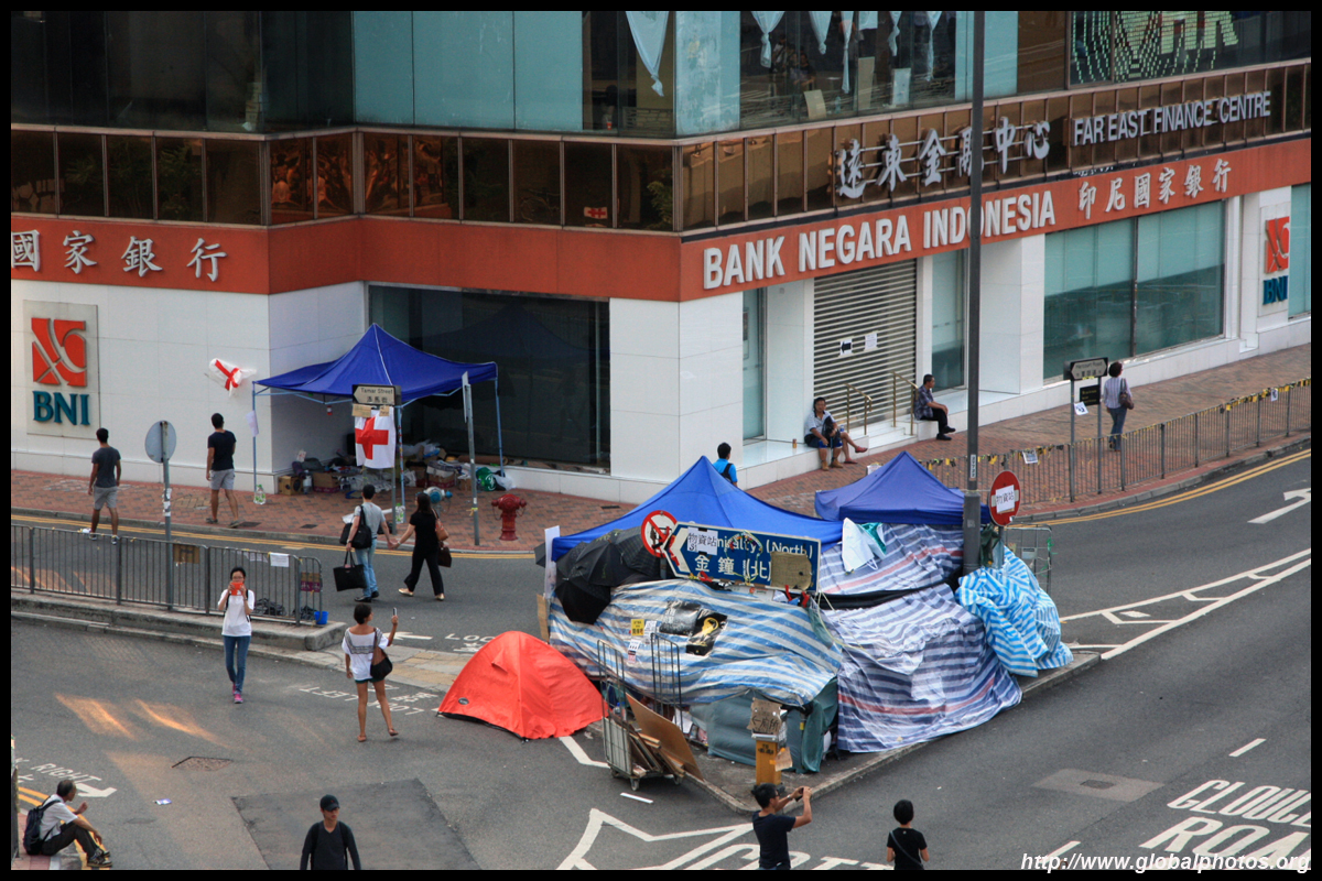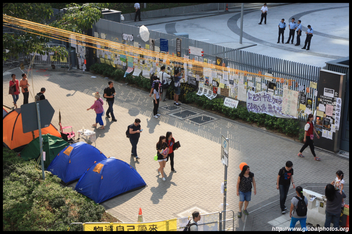 The Occupy Central civil disobedience protest began on September 28, 2014 to voice out against restrictions to universal suffrage being proposed. While originally meant to paralyze the financial district, spillover protests appeared in many parts of the city. The main protest camp was outside the government headquarters in Admiralty.