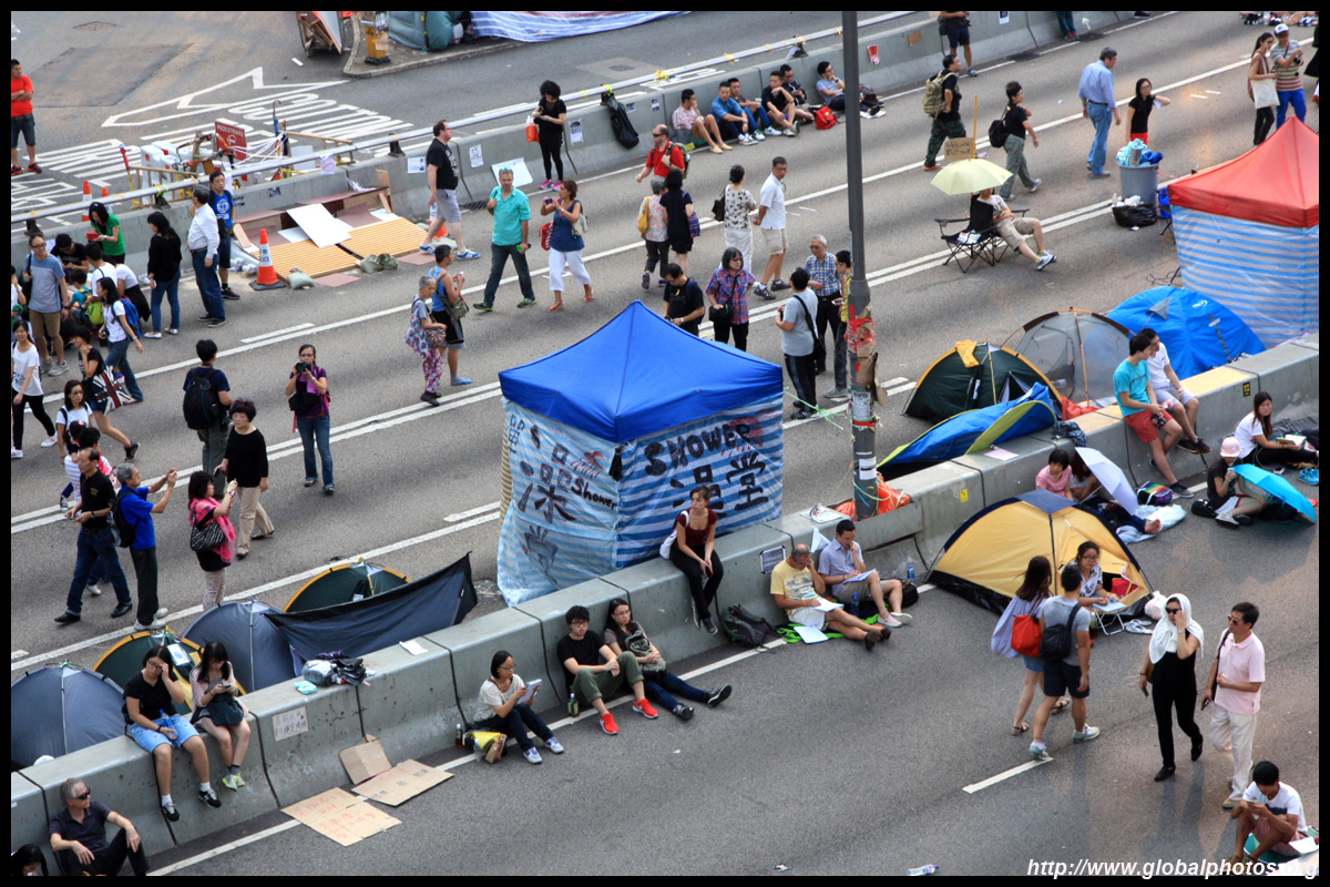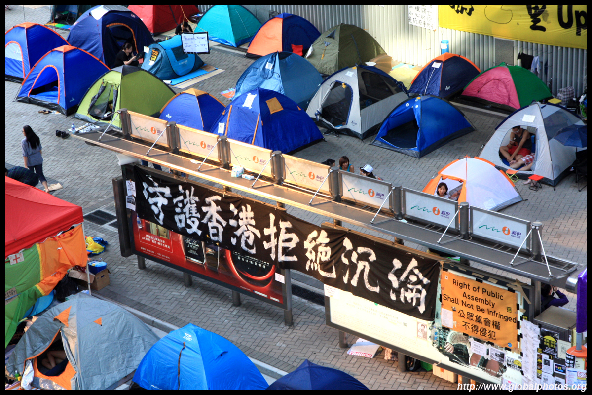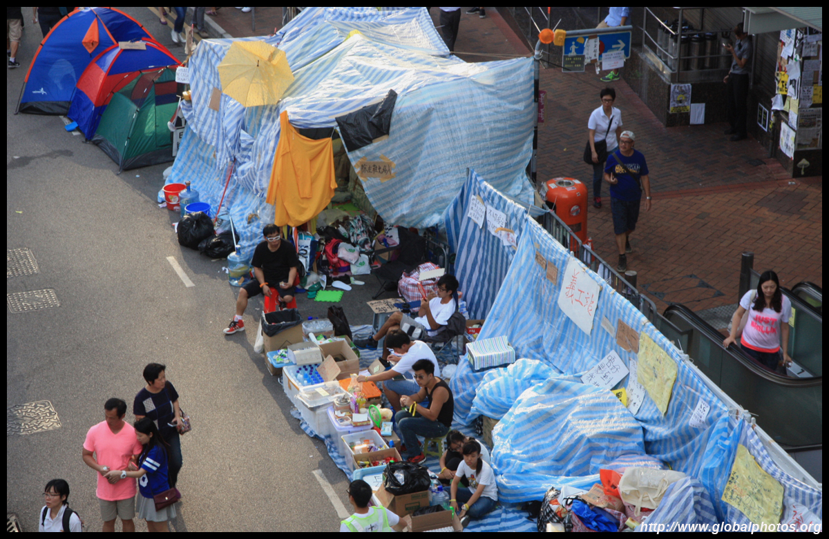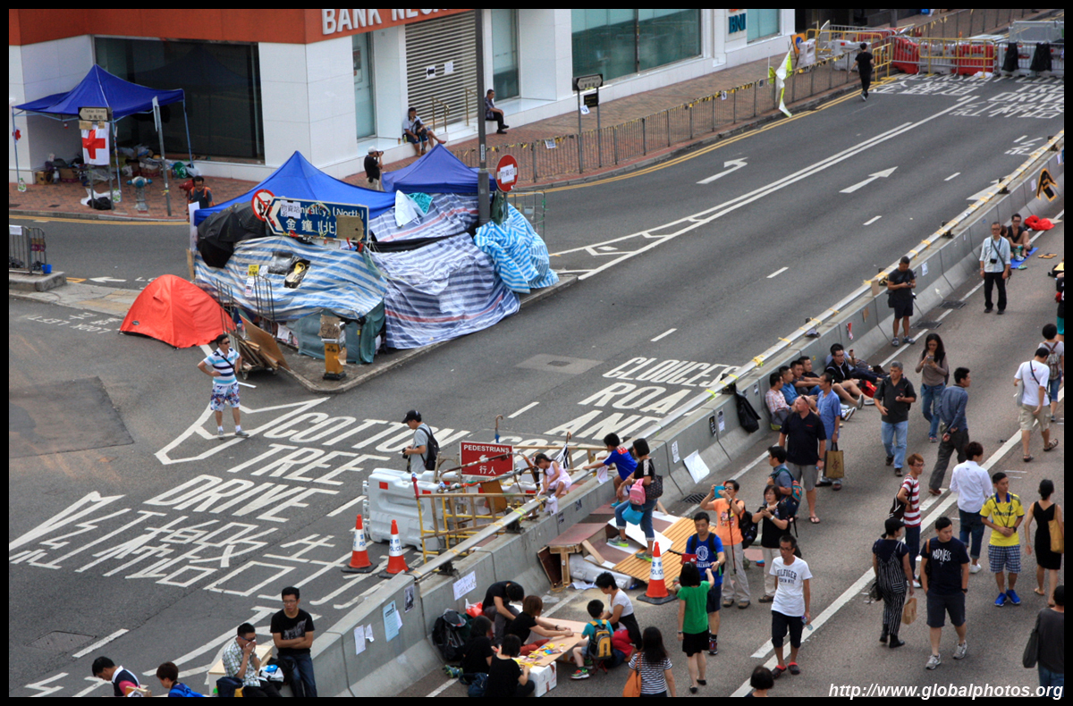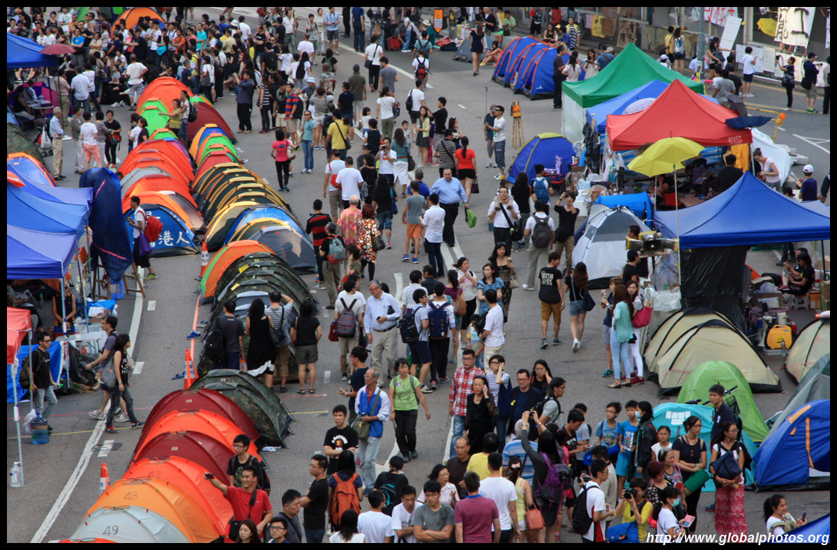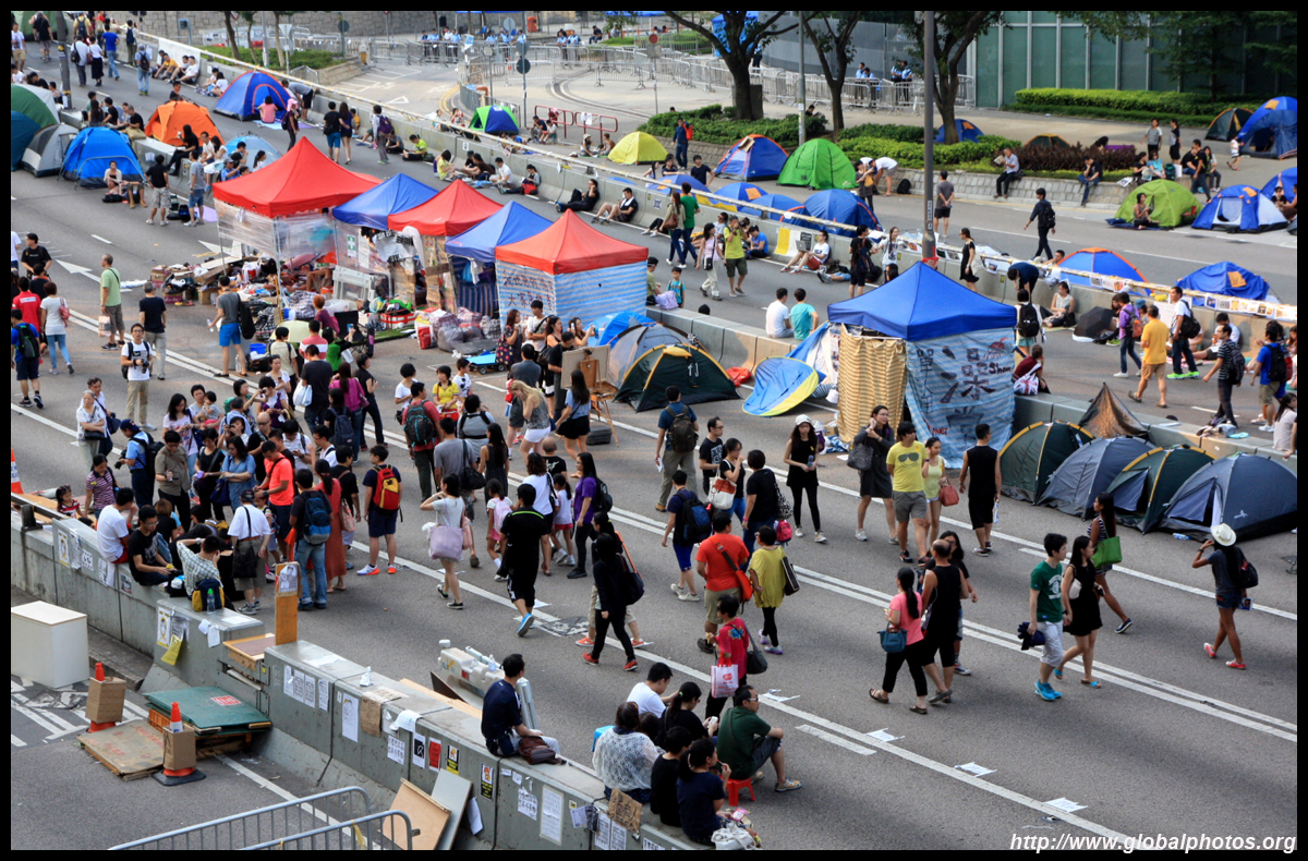 The Occupy Central civil disobedience protest began on September 28, 2014 to voice out against restrictions to universal suffrage being proposed. While originally meant to paralyze the financial district, spillover protests appeared in many parts of the city. The main protest camp was outside the government headquarters in Admiralty.