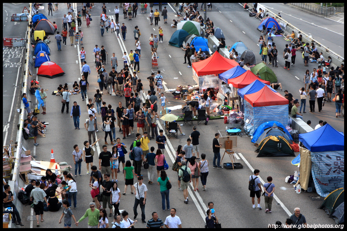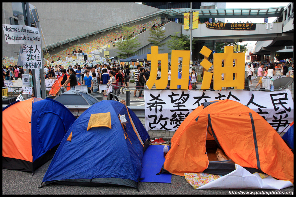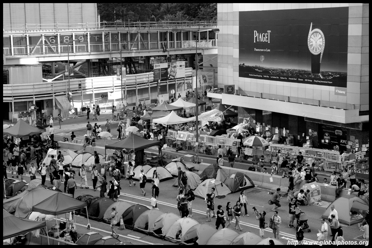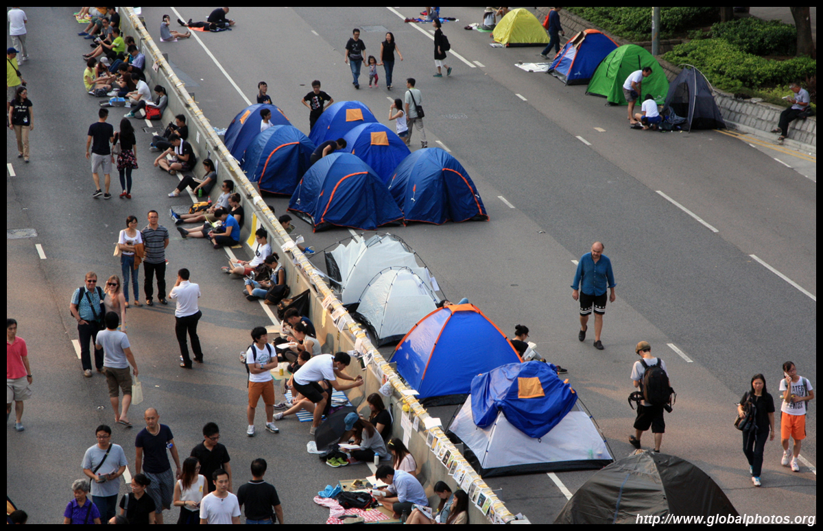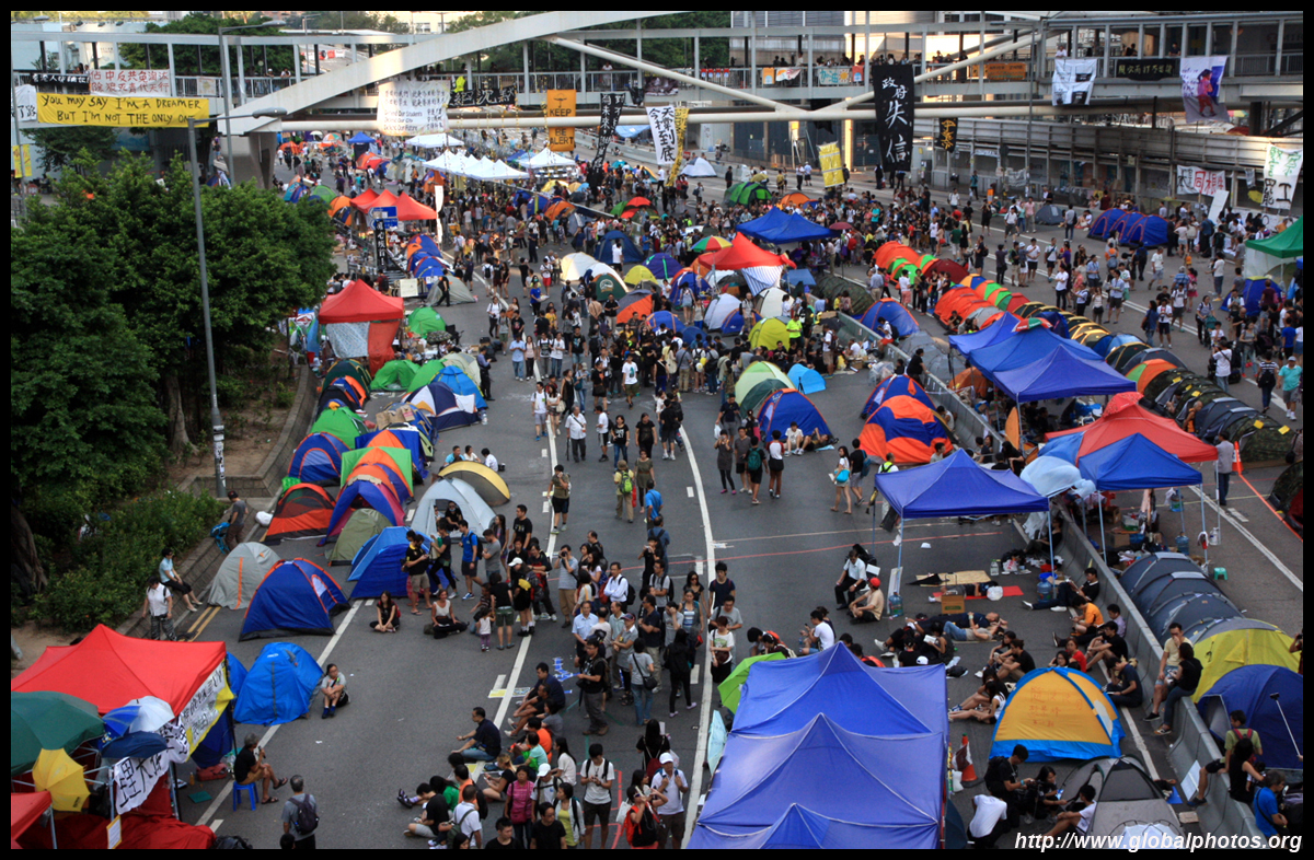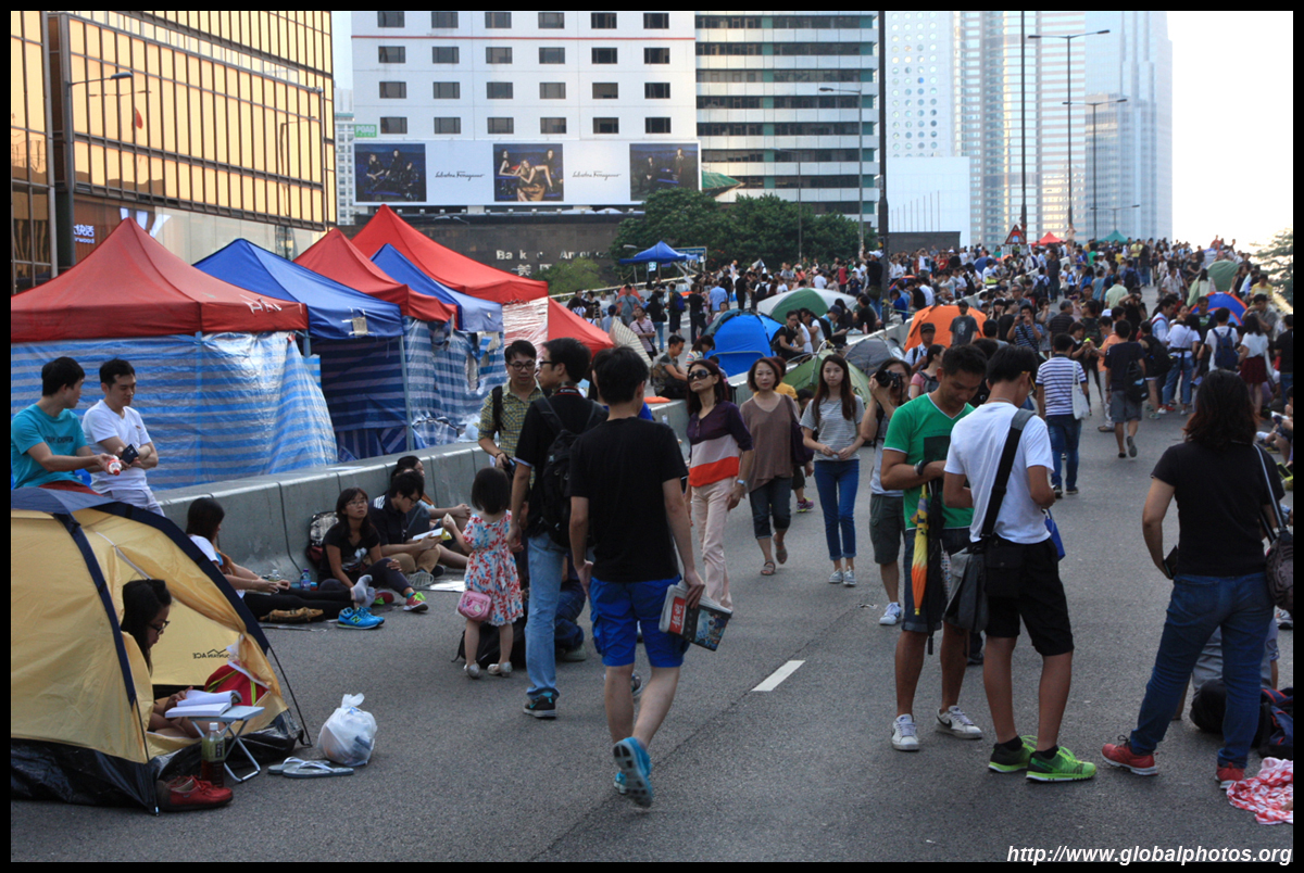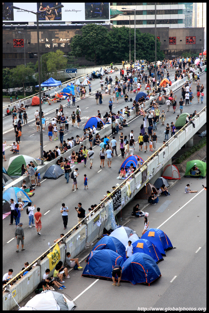 The Occupy Central civil disobedience protest began on September 28, 2014 to voice out against restrictions to universal suffrage being proposed. While originally meant to paralyze the financial district, spillover protests appeared in many parts of the city. The main protest camp was outside the government headquarters in Admiralty.
