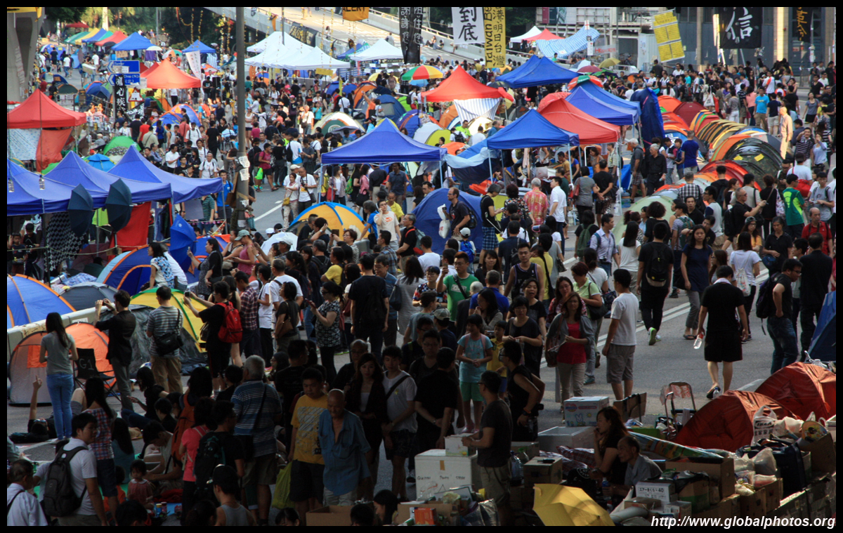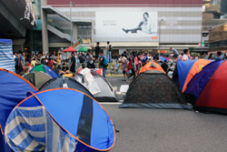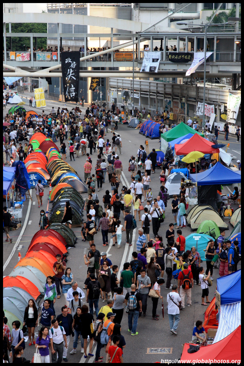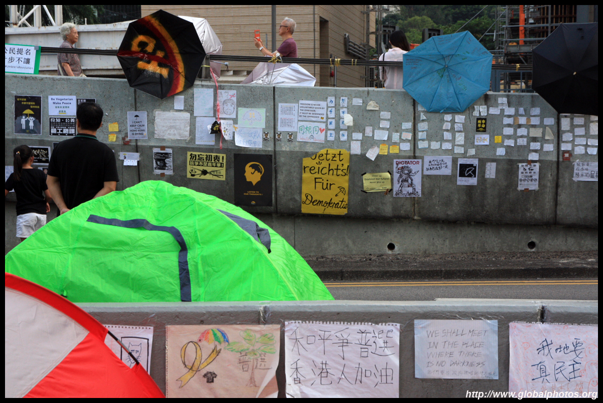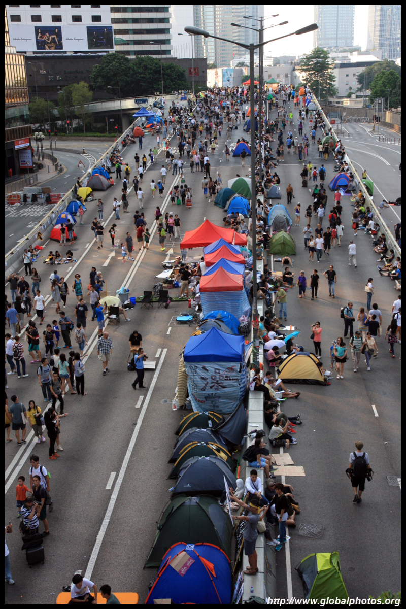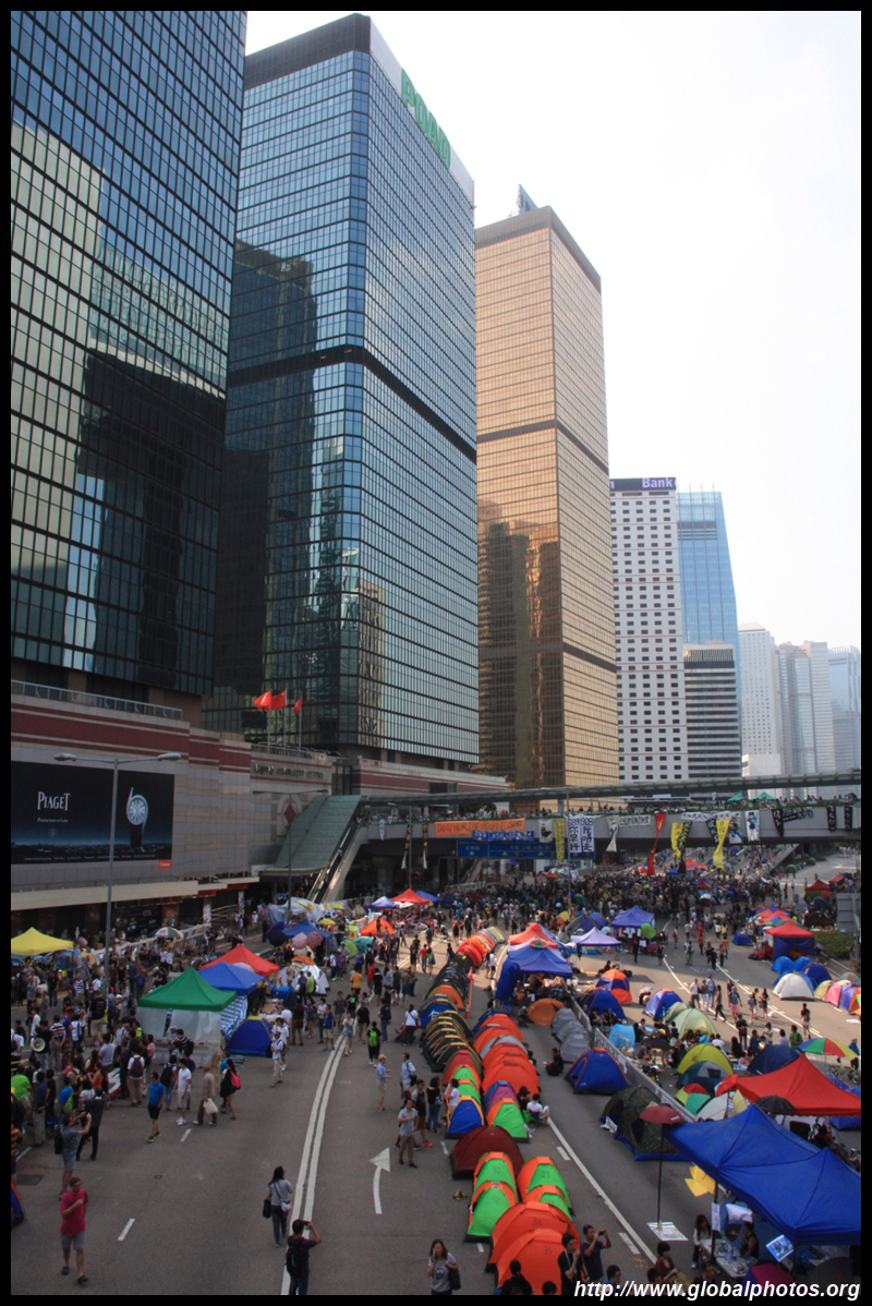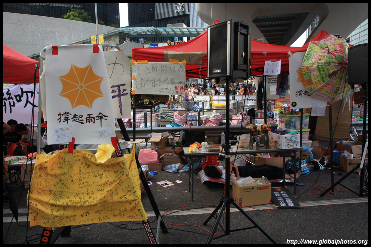 The Occupy Central civil disobedience protest began on September 28, 2014 to voice out against restrictions to universal suffrage being proposed. While originally meant to paralyze the financial district, spillover protests appeared in many parts of the city. The main protest camp was outside the government headquarters in Admiralty.