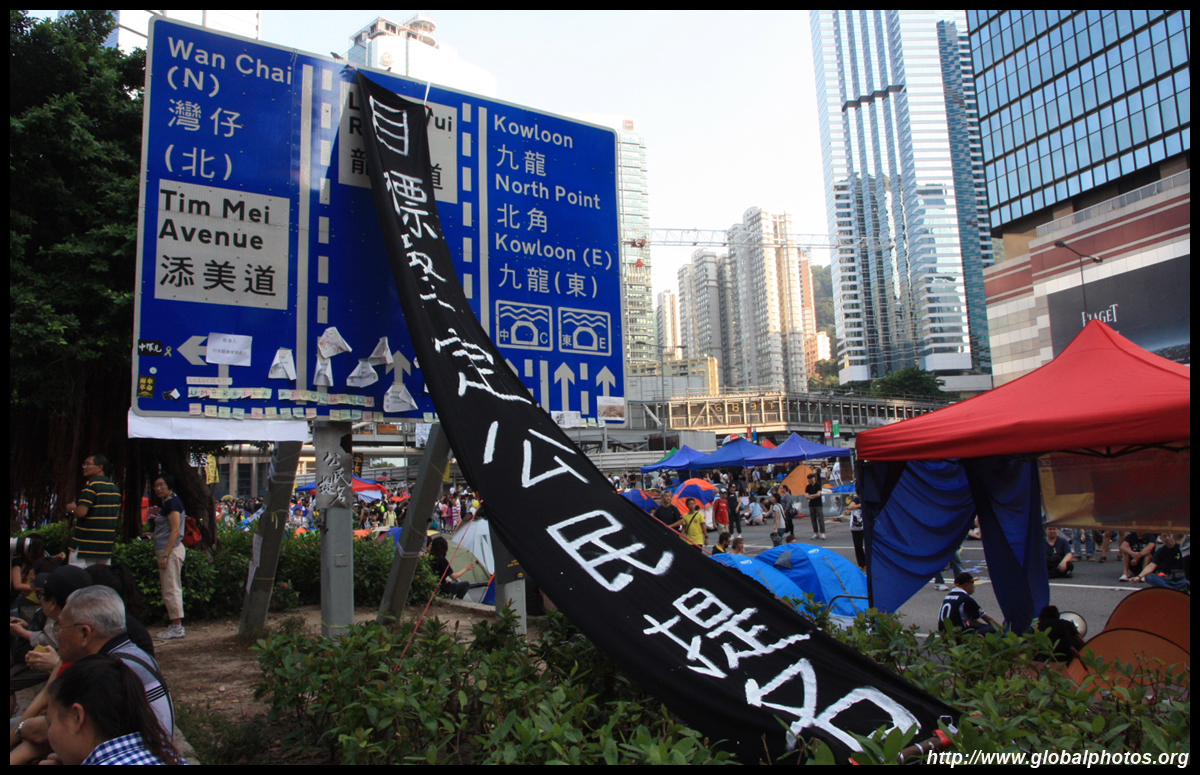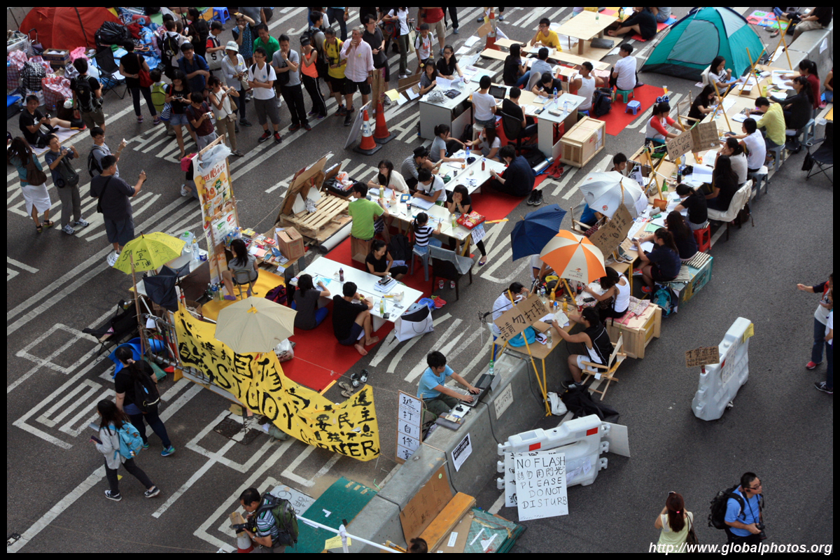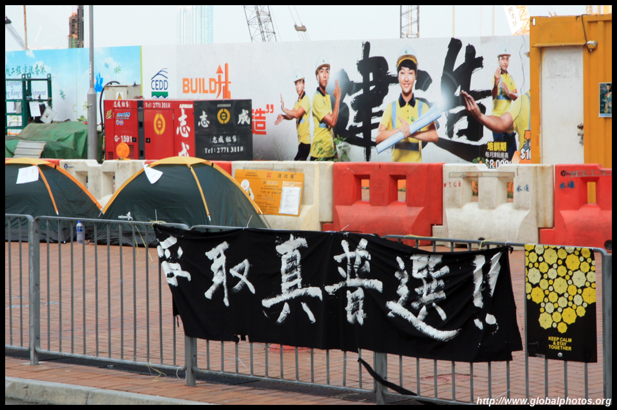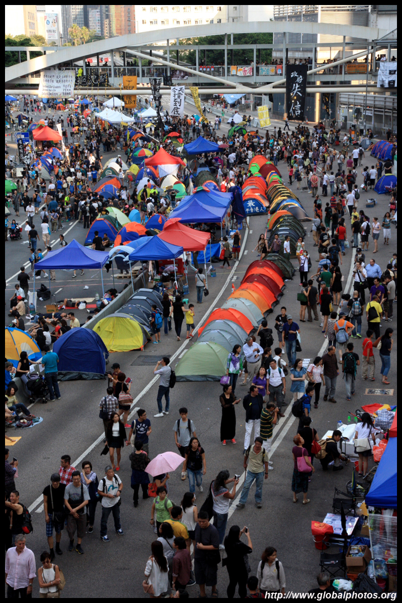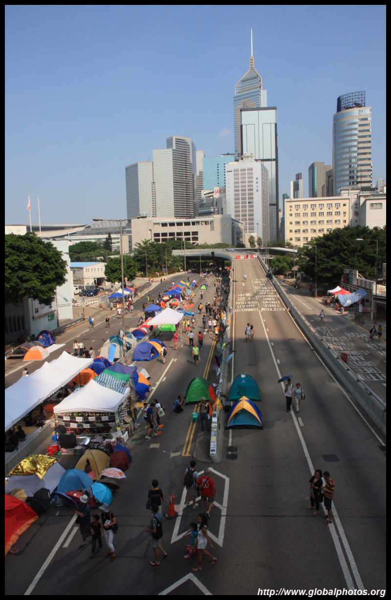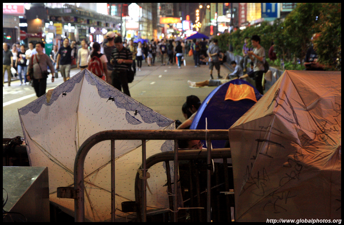 The Occupy Central civil disobedience protest began on September 28, 2014 to voice out against restrictions to universal suffrage being proposed. While originally meant to paralyze the financial district, spillover protests appeared in many parts of the city. The main protest camp was outside the government headquarters in Admiralty.