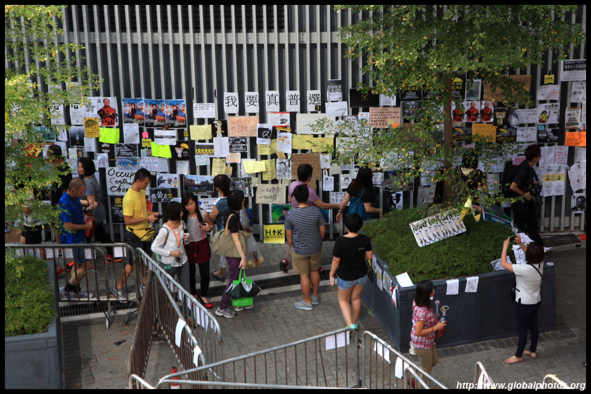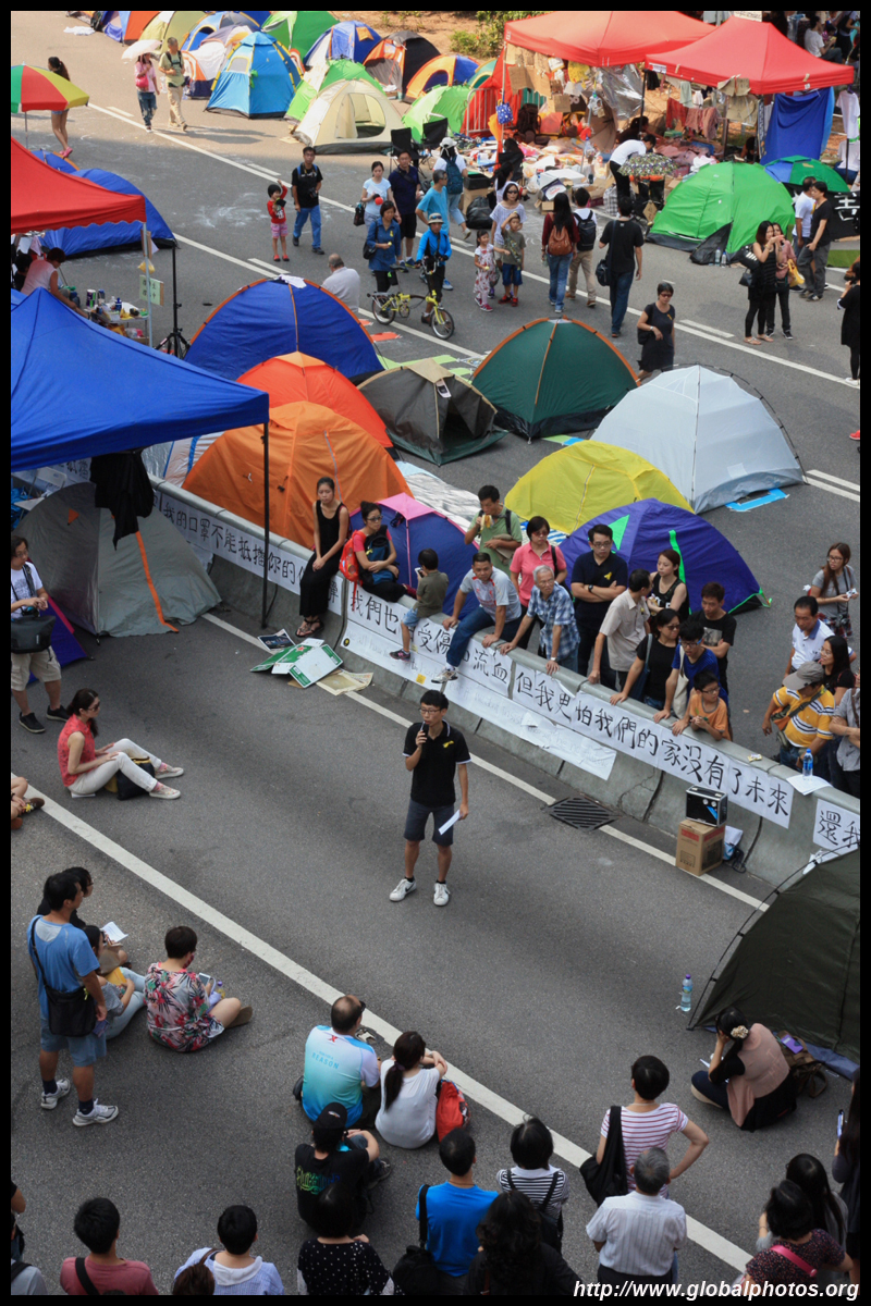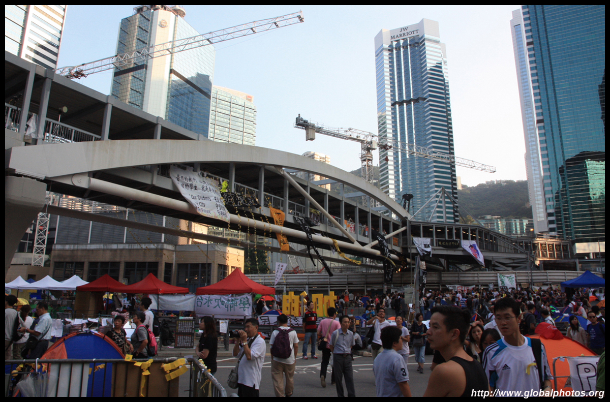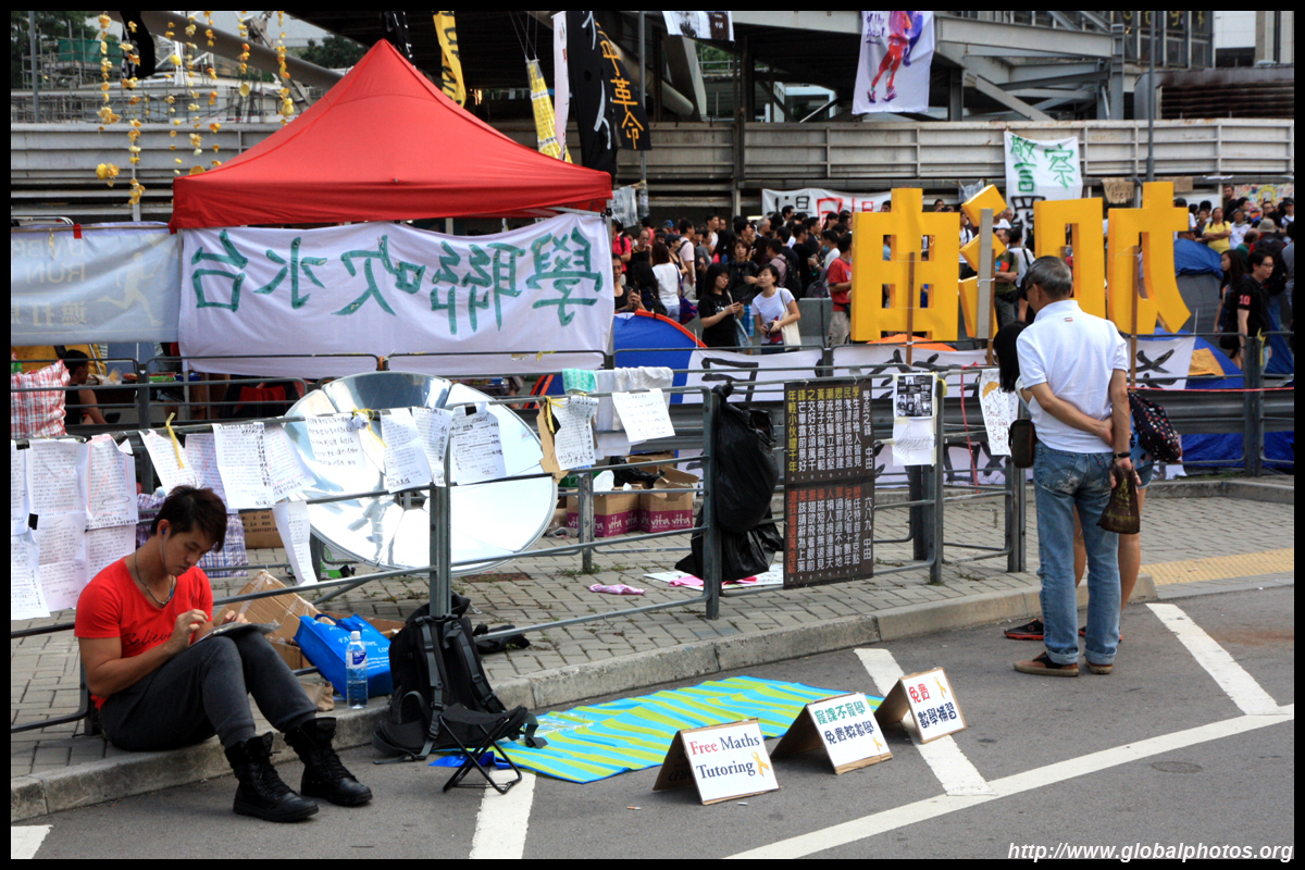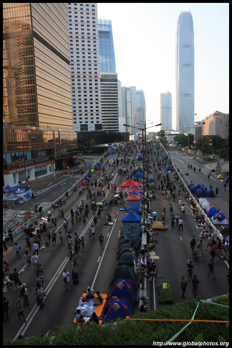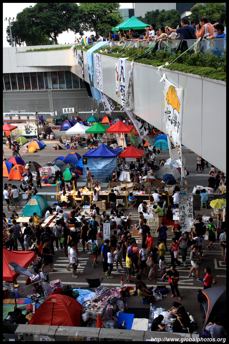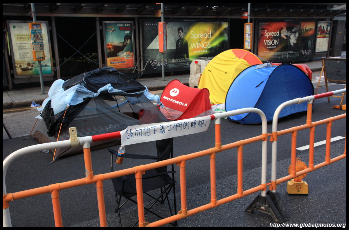 The Occupy Central civil disobedience protest began on September 28, 2014 to voice out against restrictions to universal suffrage being proposed. While originally meant to paralyze the financial district, spillover protests appeared in many parts of the city. The main protest camp was outside the government headquarters in Admiralty.