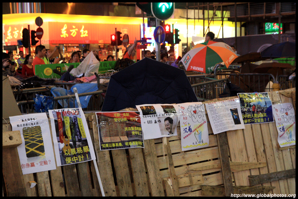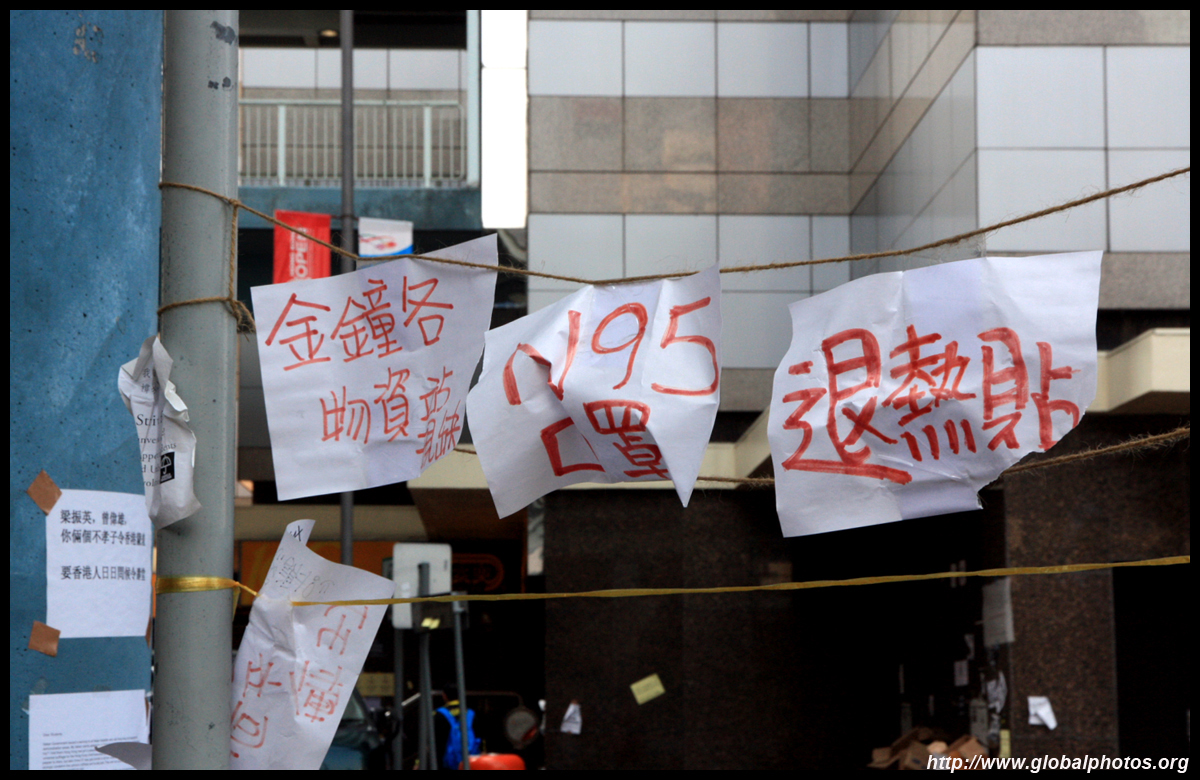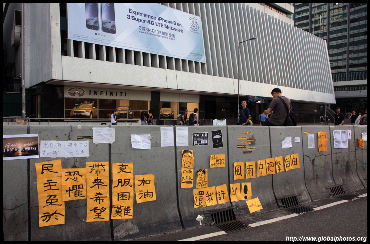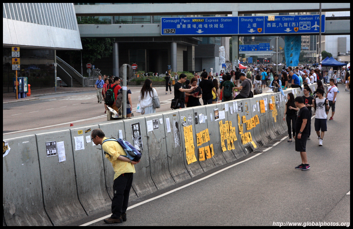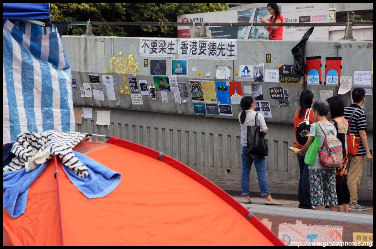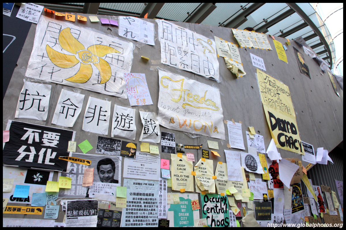 The Occupy Central civil disobedience protest began on September 28, 2014 to voice out against restrictions to universal suffrage being proposed. While originally meant to paralyze the financial district, spillover protests appeared in many parts of the city. The main protest camp was outside the government headquarters in Admiralty.