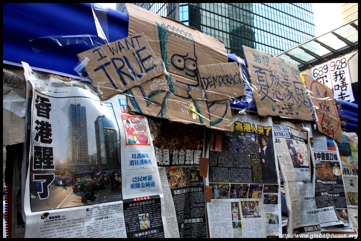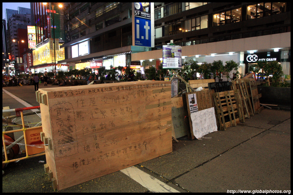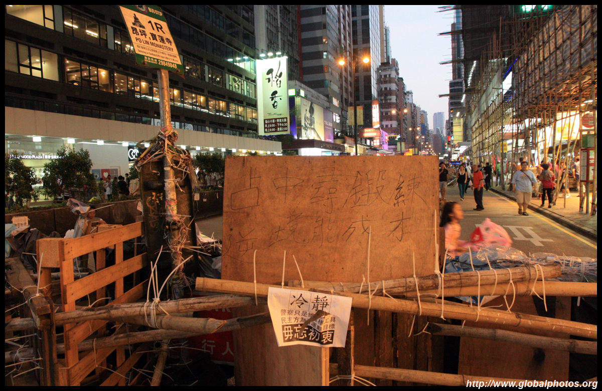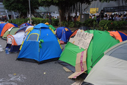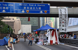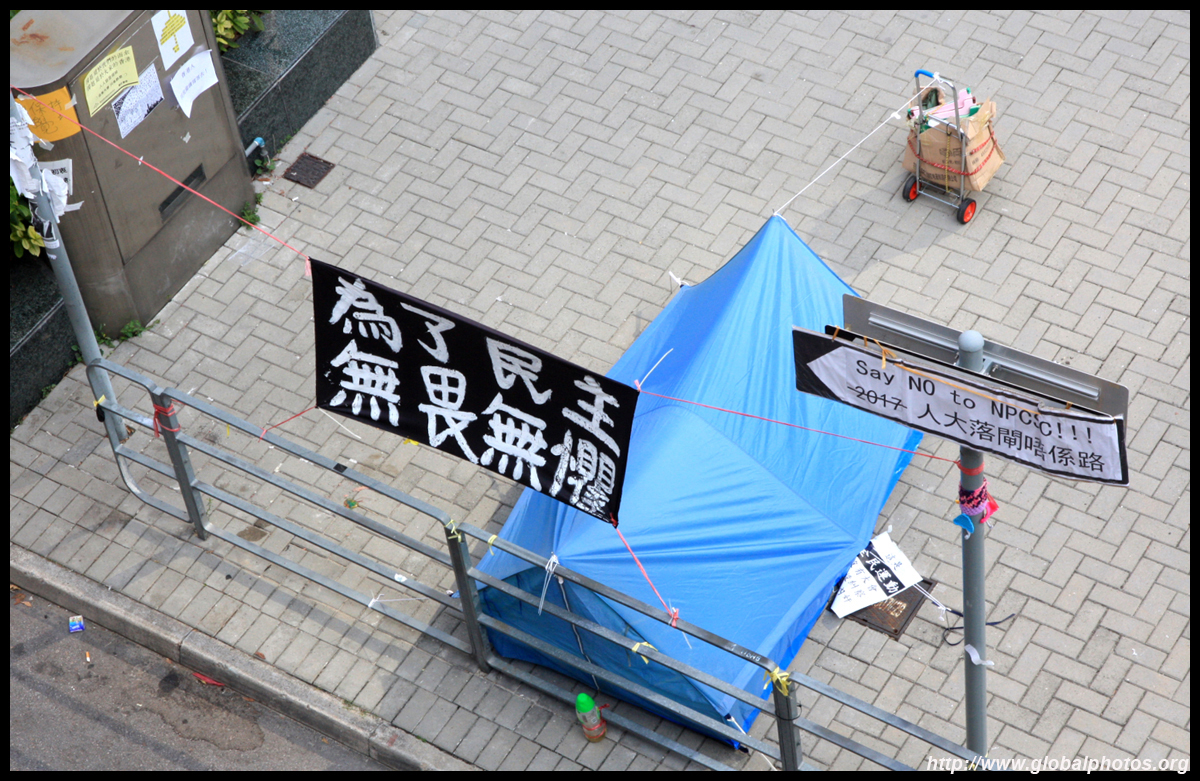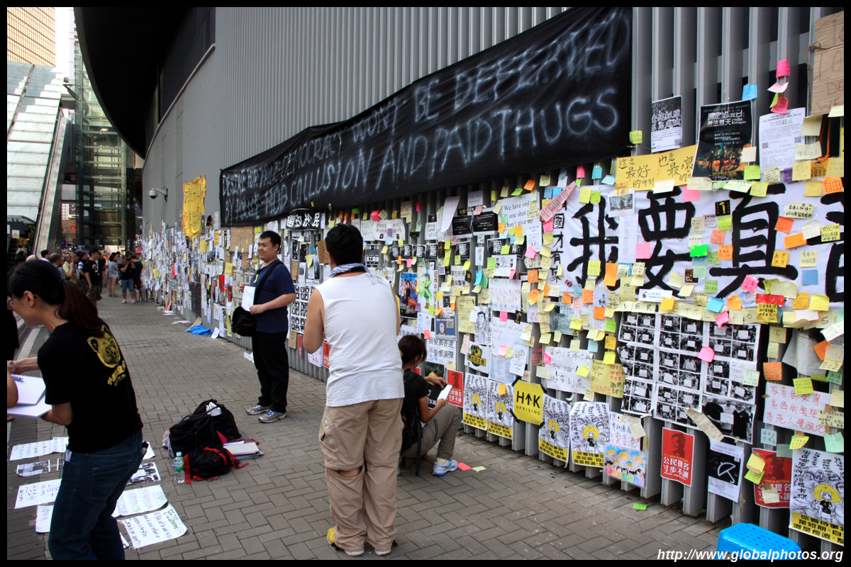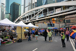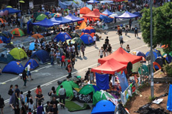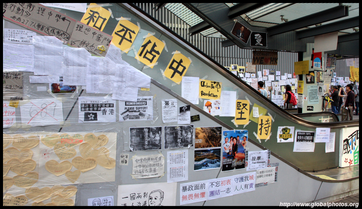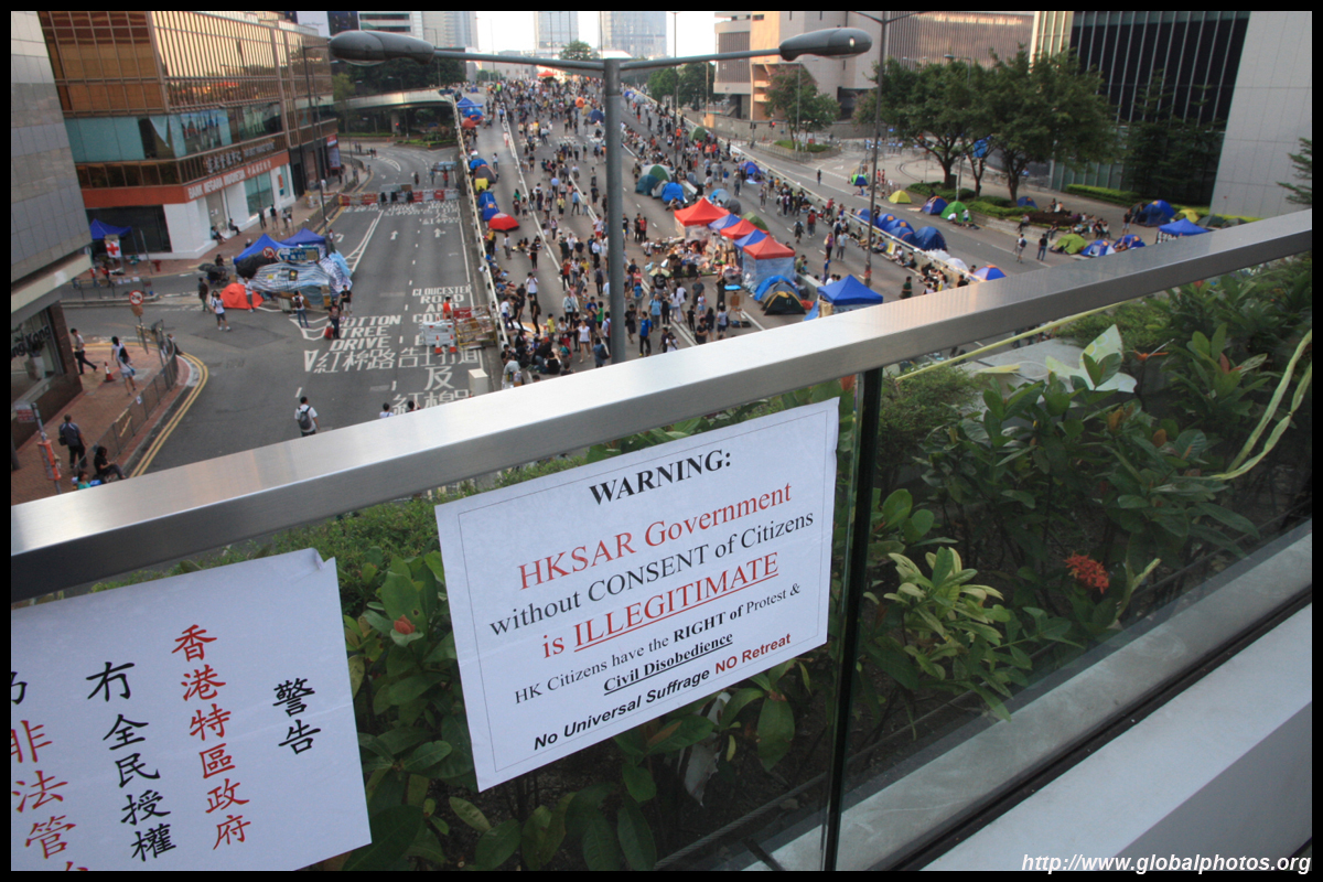 The Occupy Central civil disobedience protest began on September 28, 2014 to voice out against restrictions to universal suffrage being proposed. While originally meant to paralyze the financial district, spillover protests appeared in many parts of the city. The main protest camp was outside the government headquarters in Admiralty.