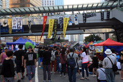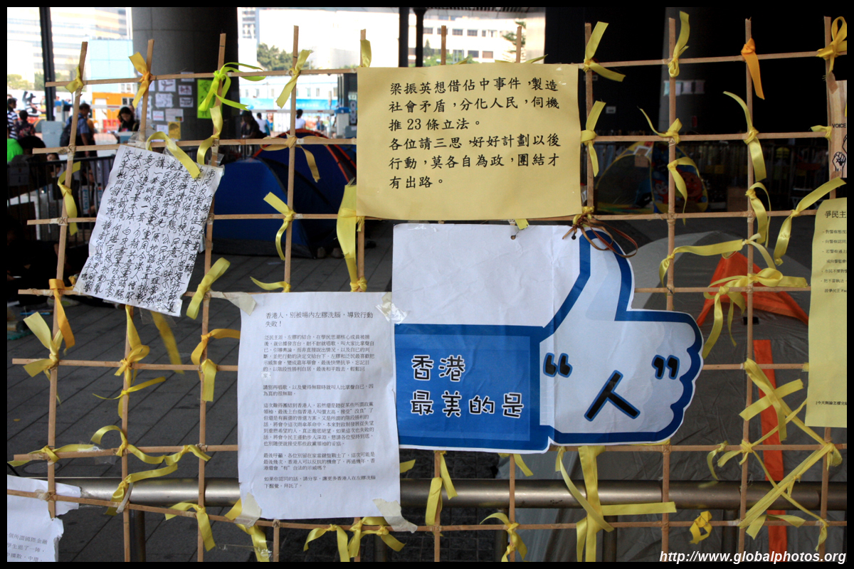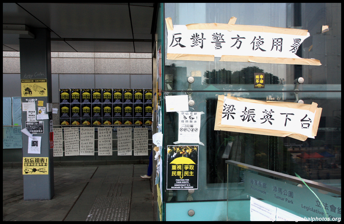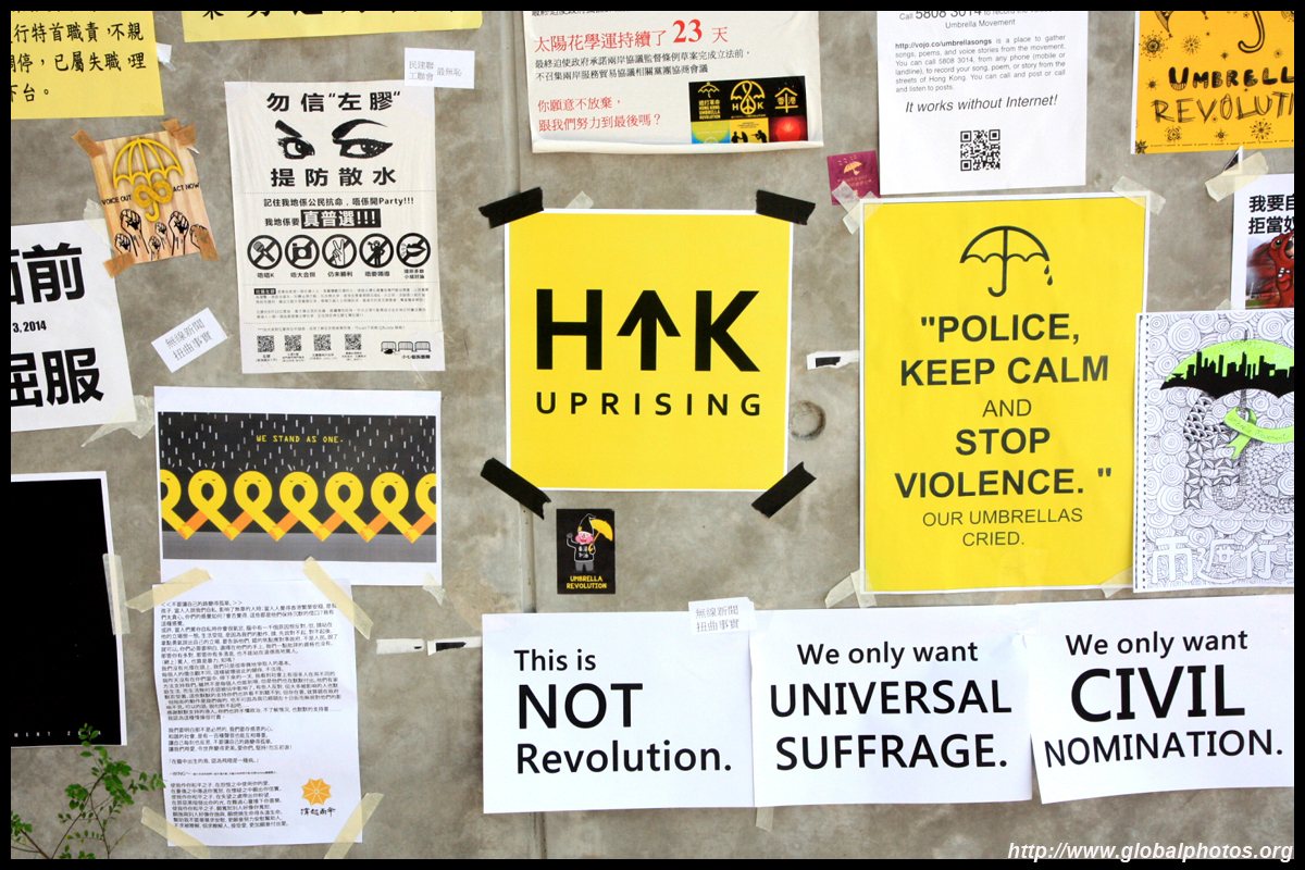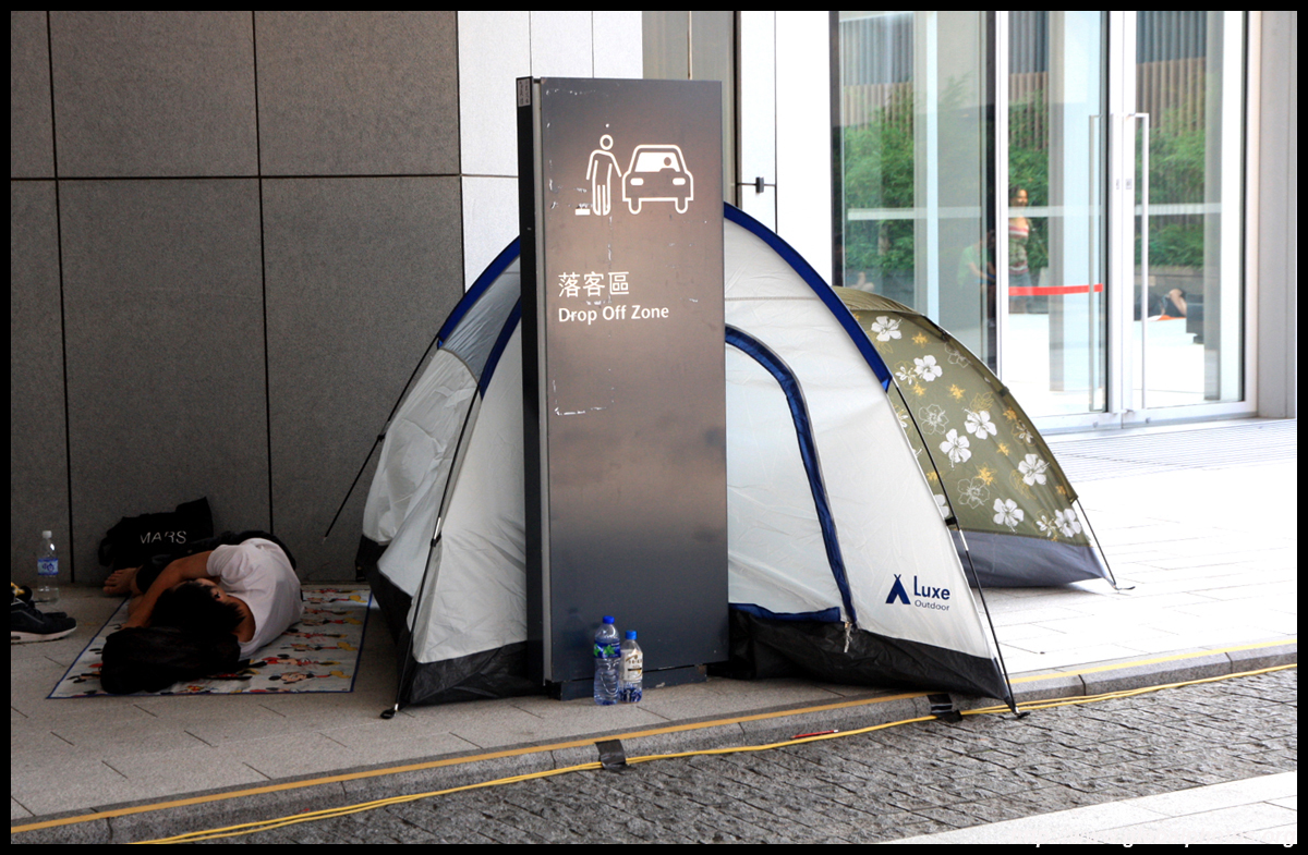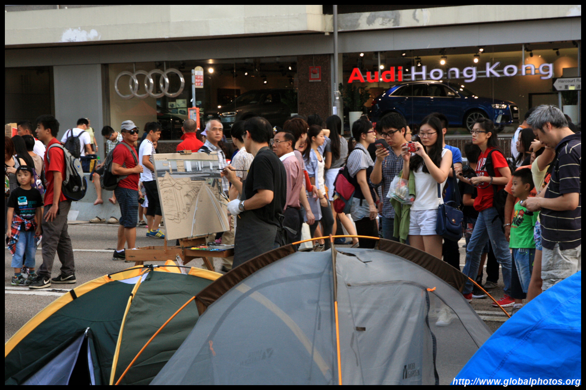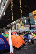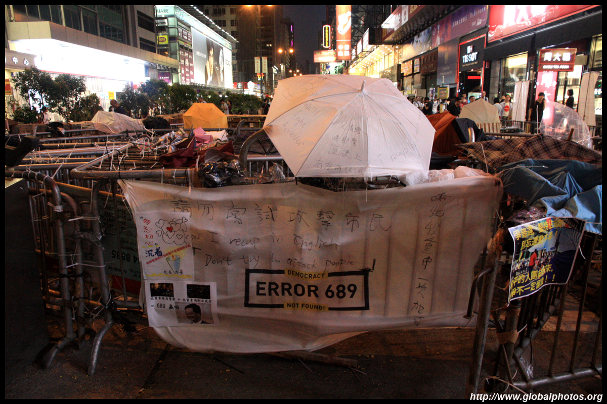 The Occupy Central civil disobedience protest began on September 28, 2014 to voice out against restrictions to universal suffrage being proposed. While originally meant to paralyze the financial district, spillover protests appeared in many parts of the city. The main protest camp was outside the government headquarters in Admiralty.