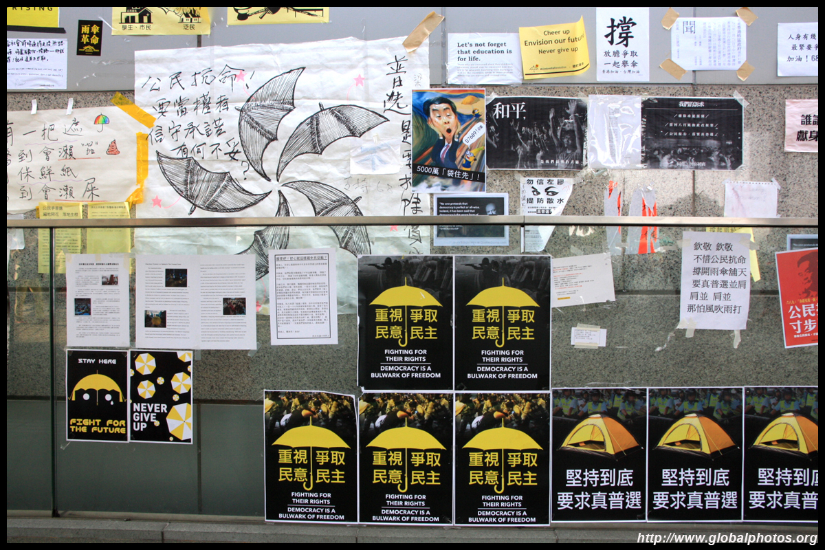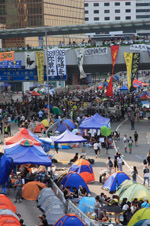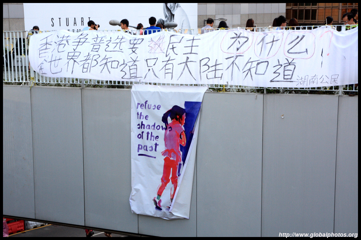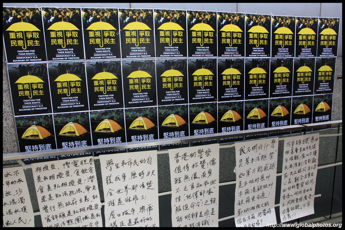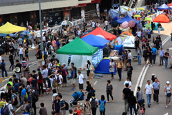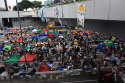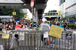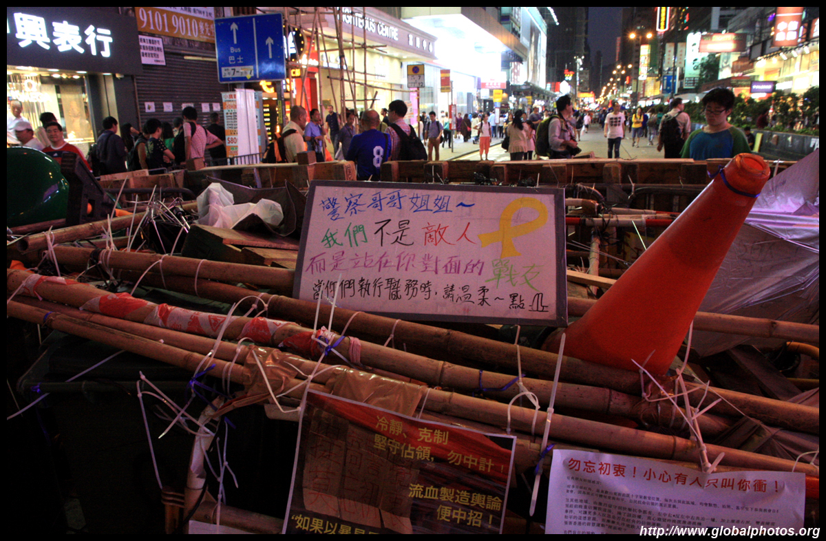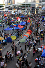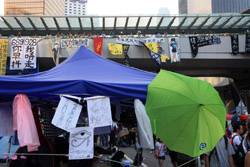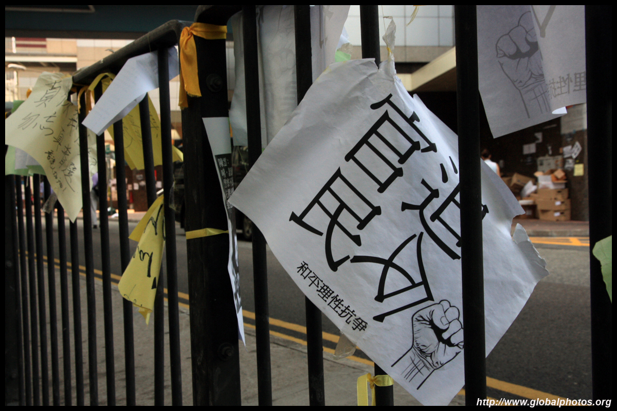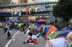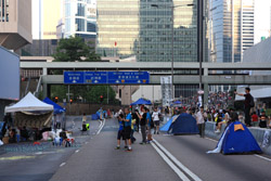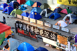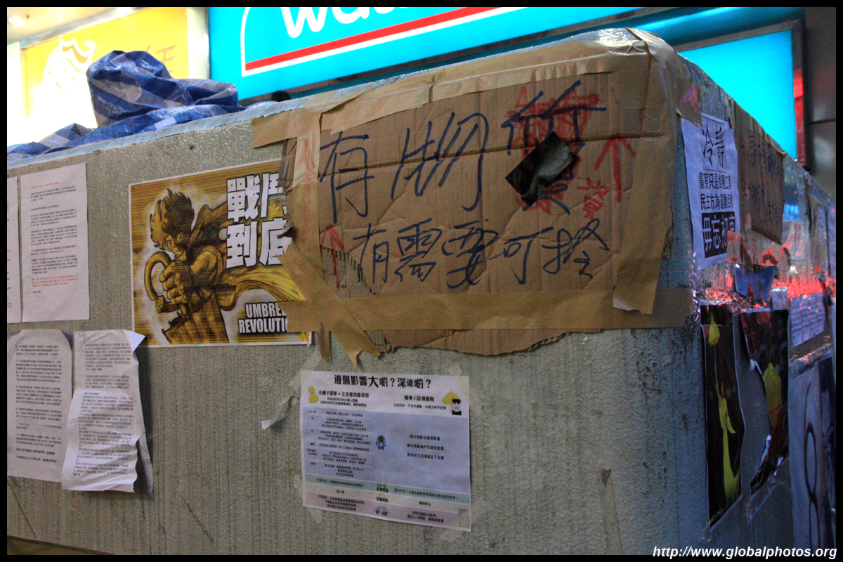 The Occupy Central civil disobedience protest began on September 28, 2014 to voice out against restrictions to universal suffrage being proposed. While originally meant to paralyze the financial district, spillover protests appeared in many parts of the city. The main protest camp was outside the government headquarters in Admiralty.