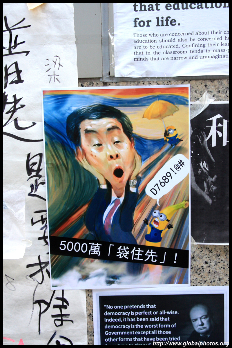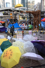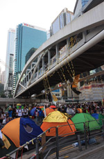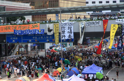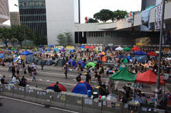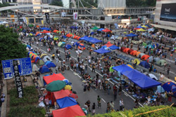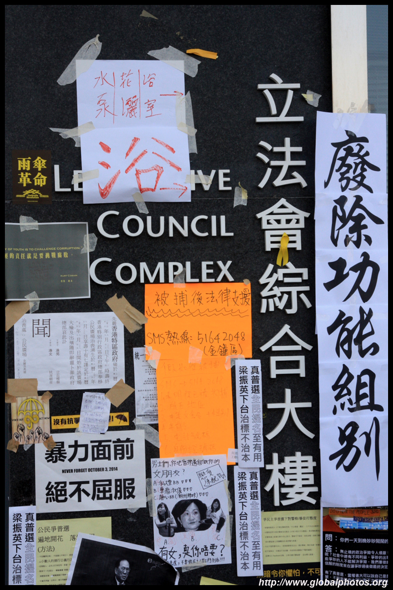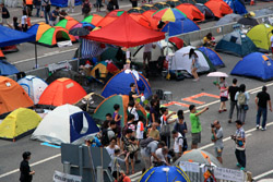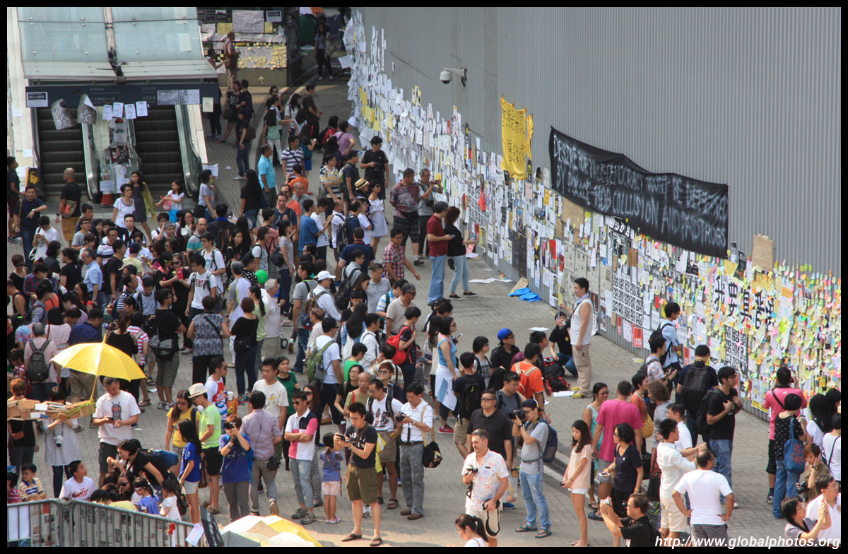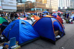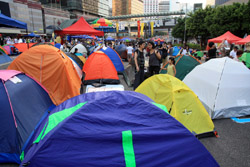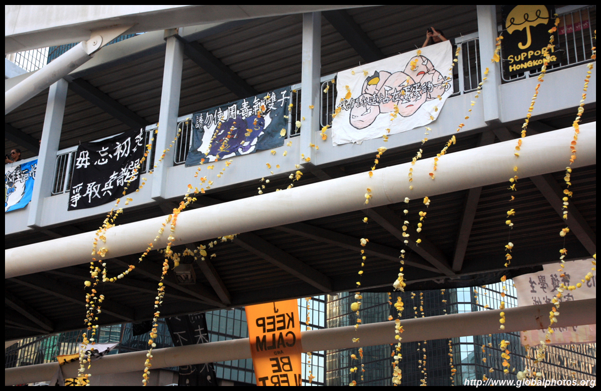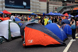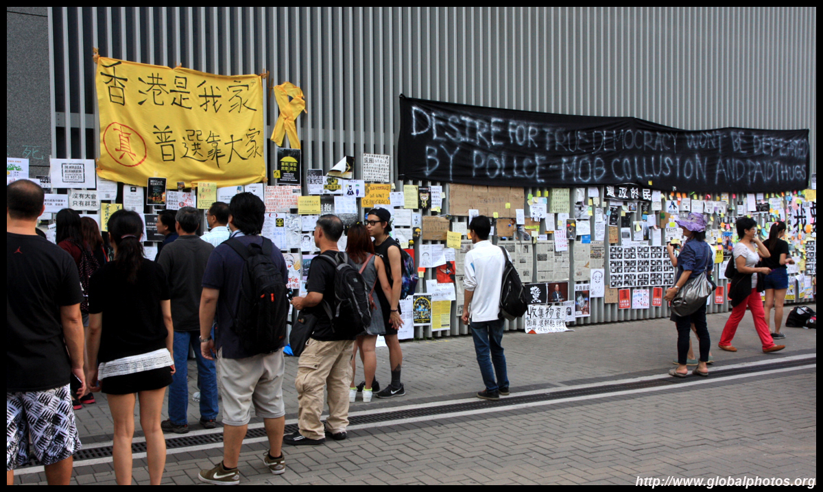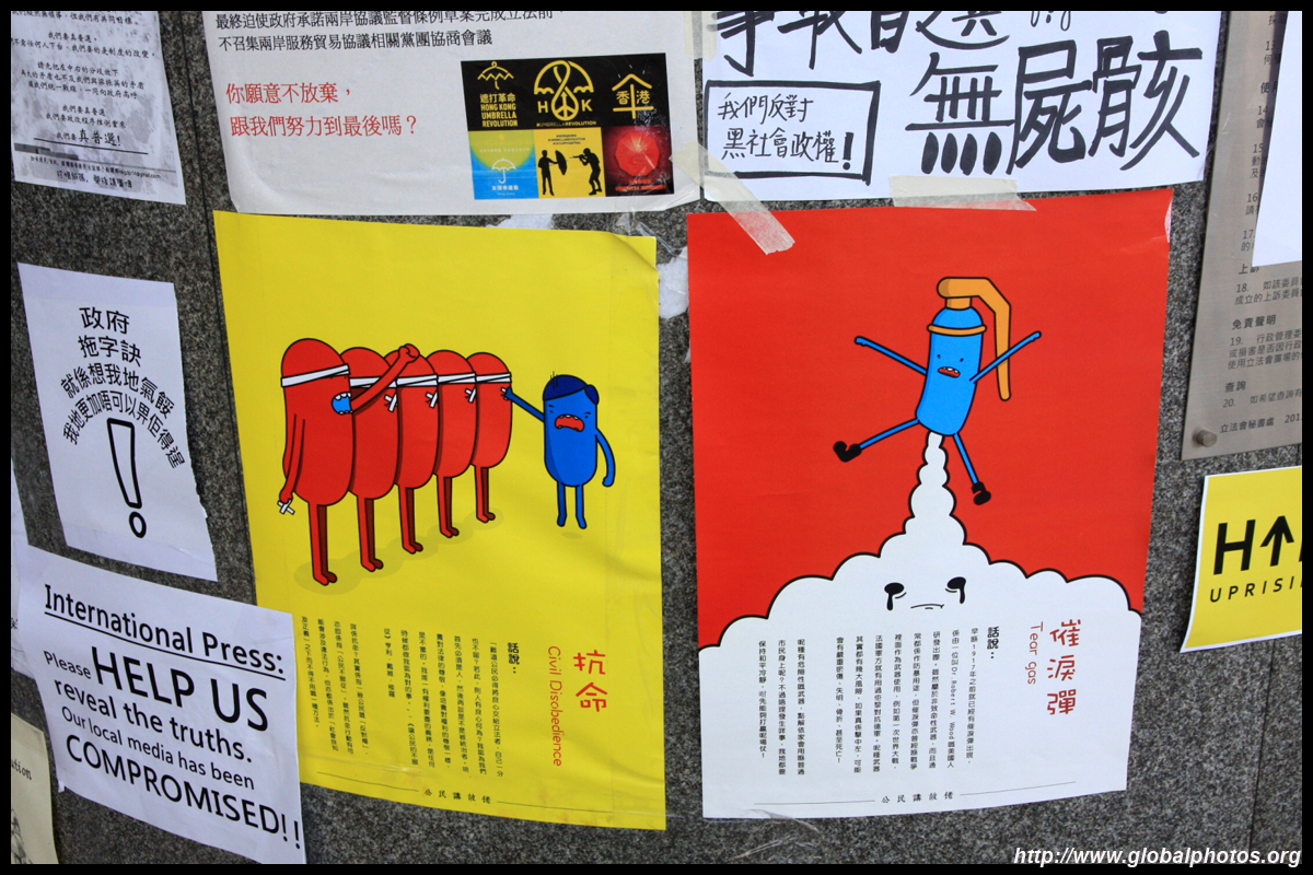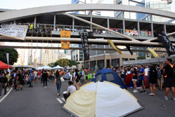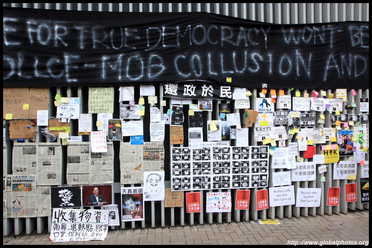 The Occupy Central civil disobedience protest began on September 28, 2014 to voice out against restrictions to universal suffrage being proposed. While originally meant to paralyze the financial district, spillover protests appeared in many parts of the city. The main protest camp was outside the government headquarters in Admiralty.