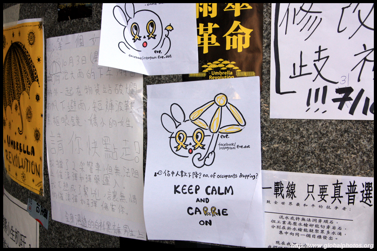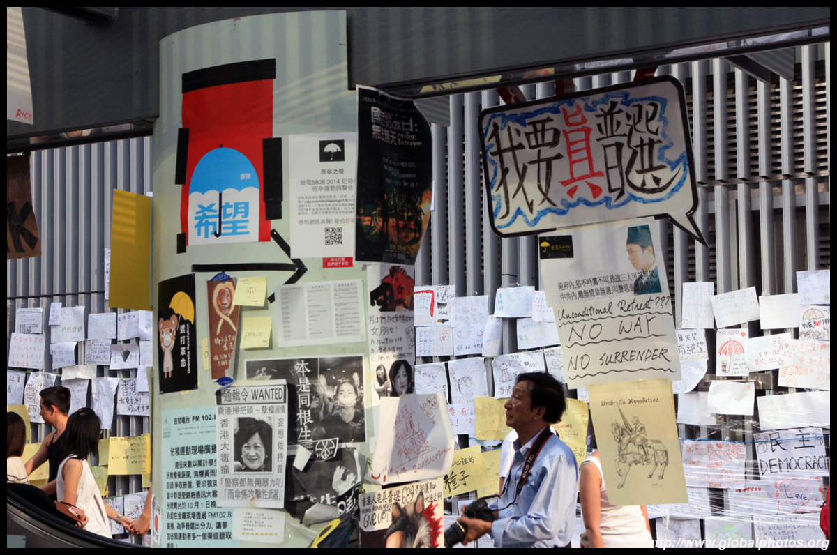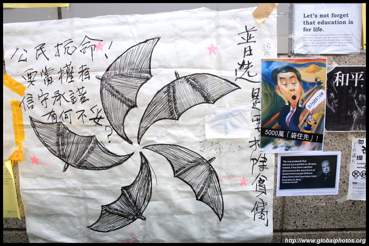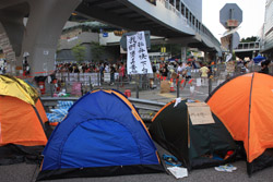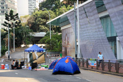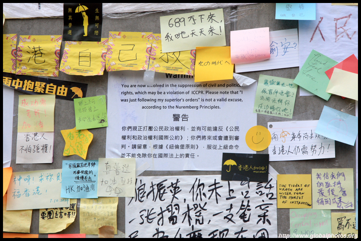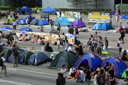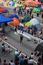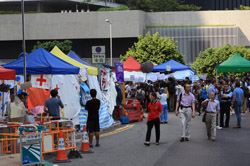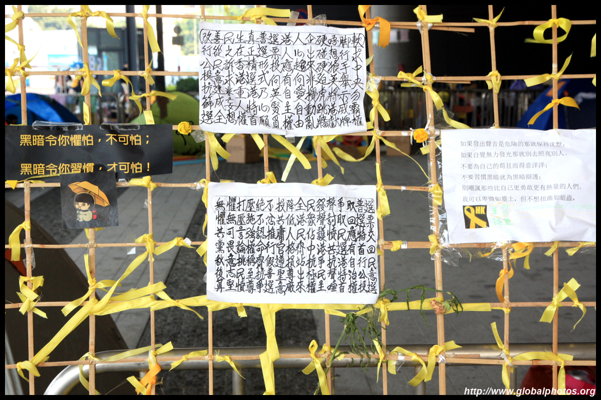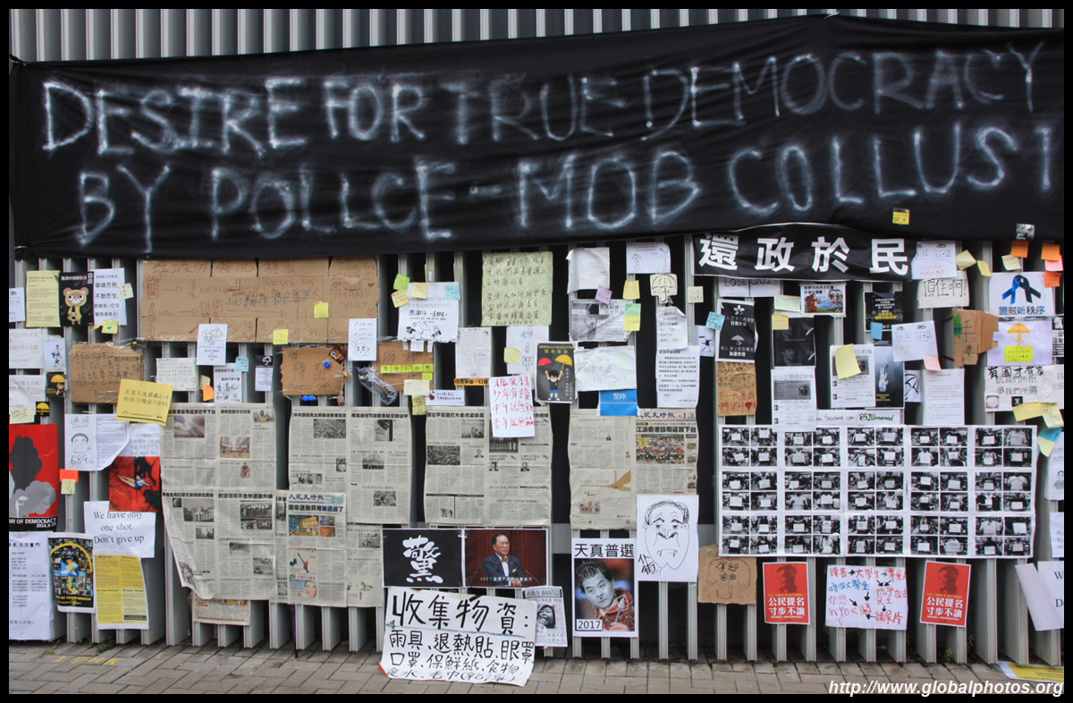 The Occupy Central civil disobedience protest began on September 28, 2014 to voice out against restrictions to universal suffrage being proposed. While originally meant to paralyze the financial district, spillover protests appeared in many parts of the city. The main protest camp was outside the government headquarters in Admiralty.