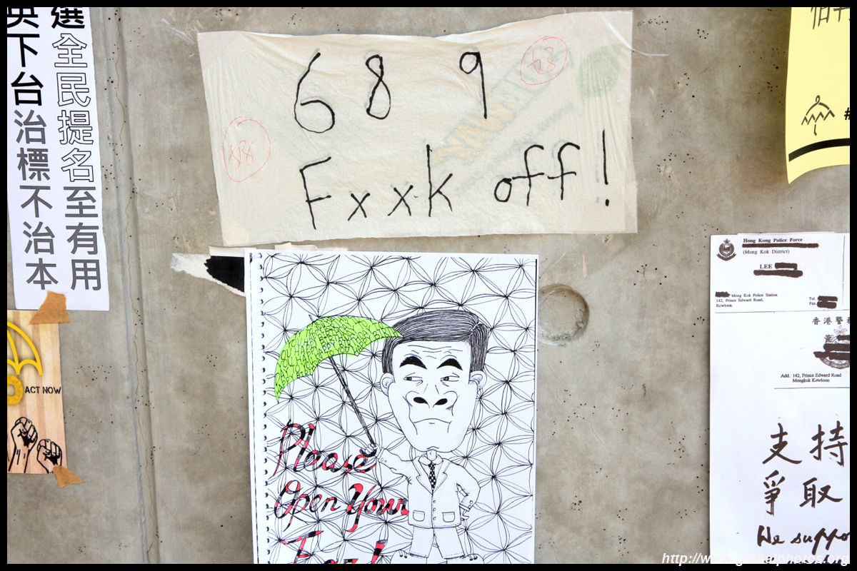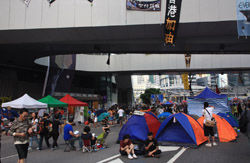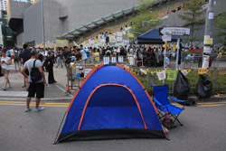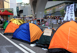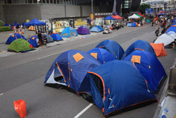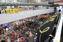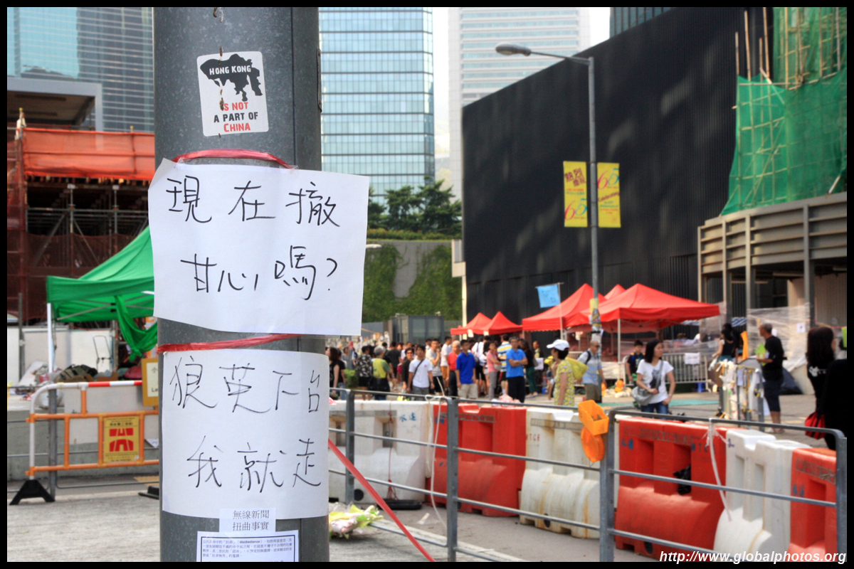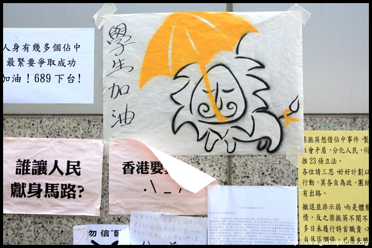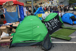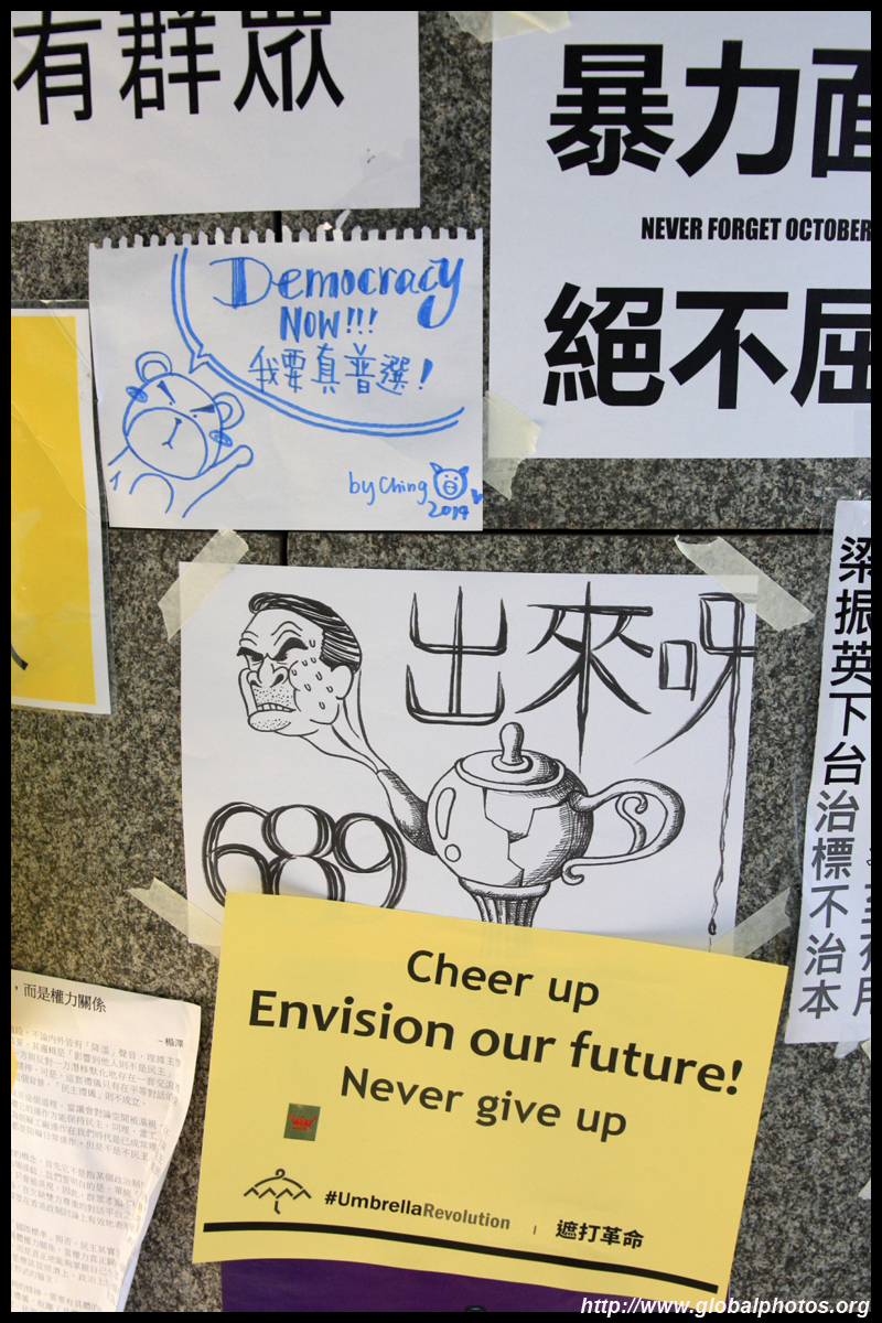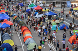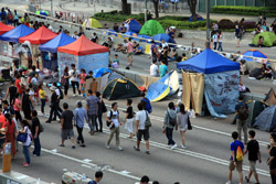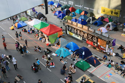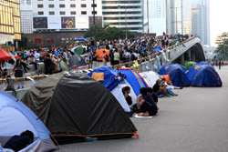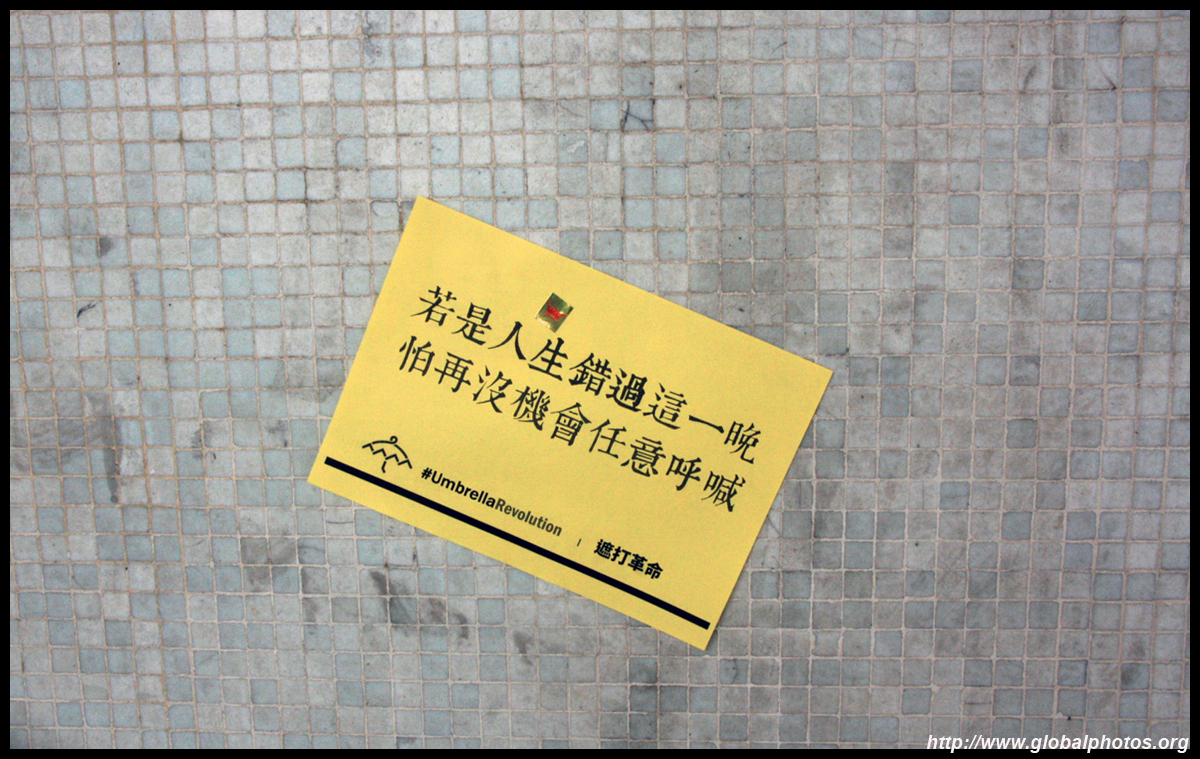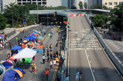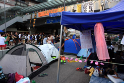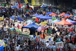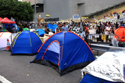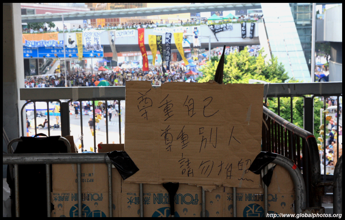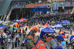 The Occupy Central civil disobedience protest began on September 28, 2014 to voice out against restrictions to universal suffrage being proposed. While originally meant to paralyze the financial district, spillover protests appeared in many parts of the city. The main protest camp was outside the government headquarters in Admiralty.