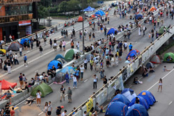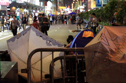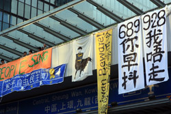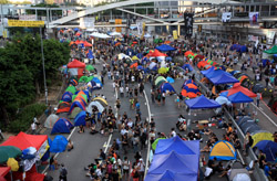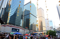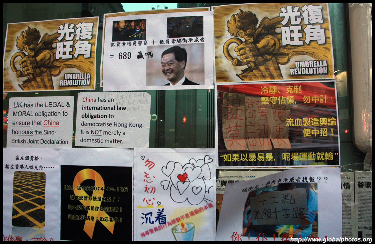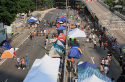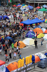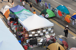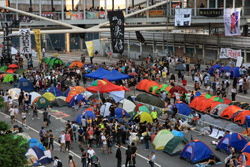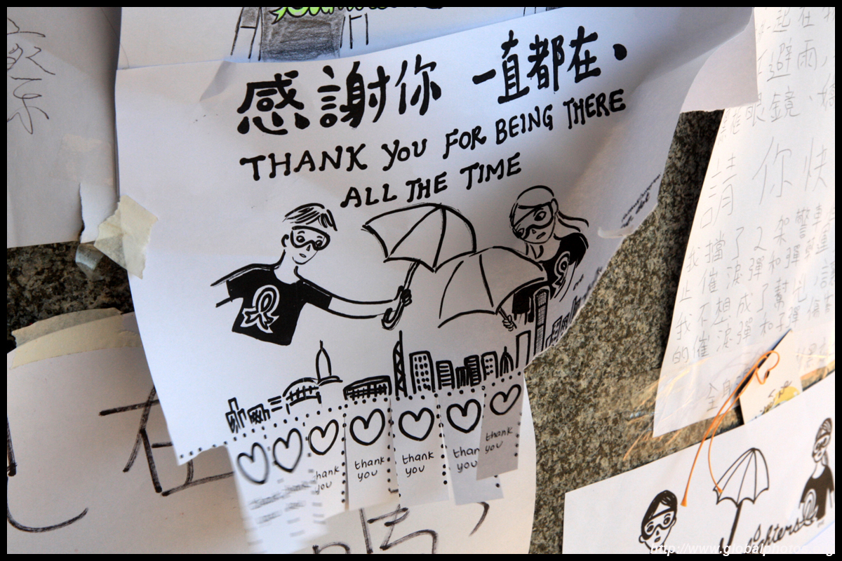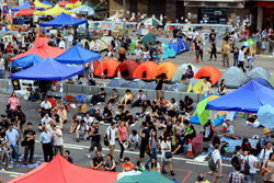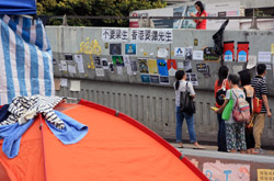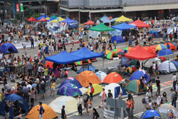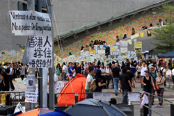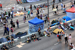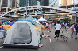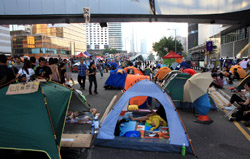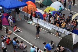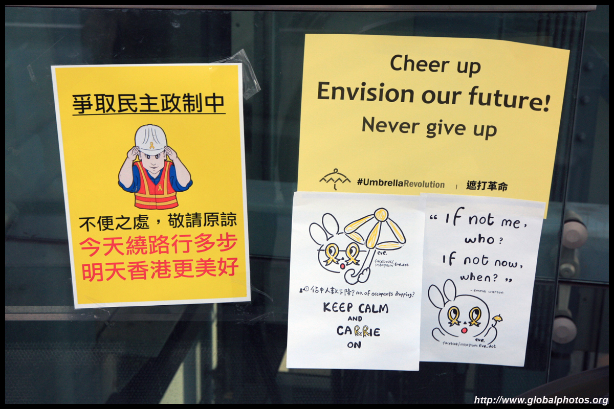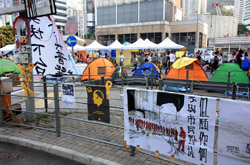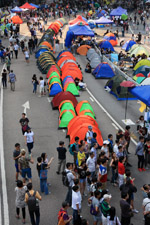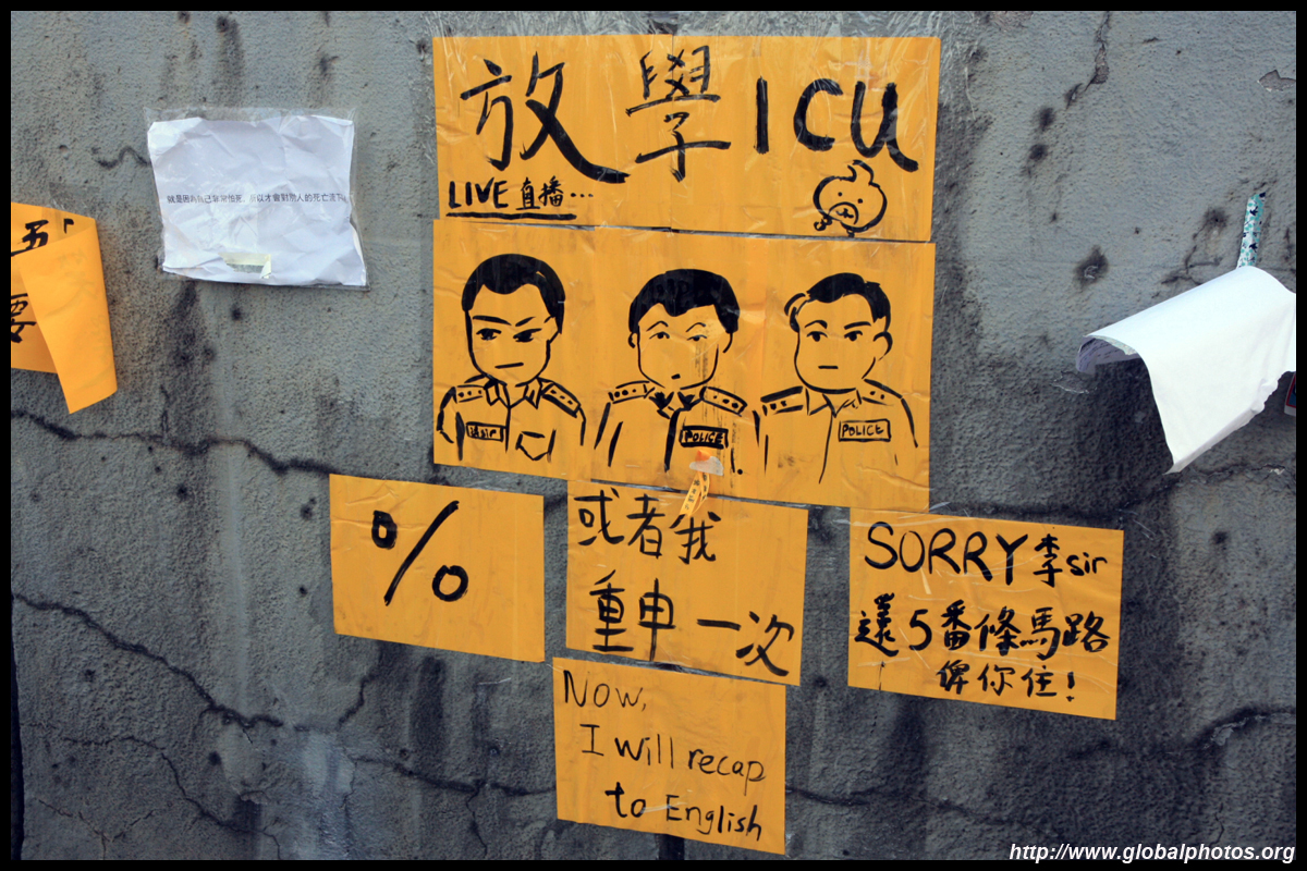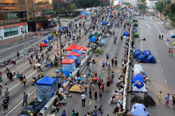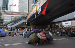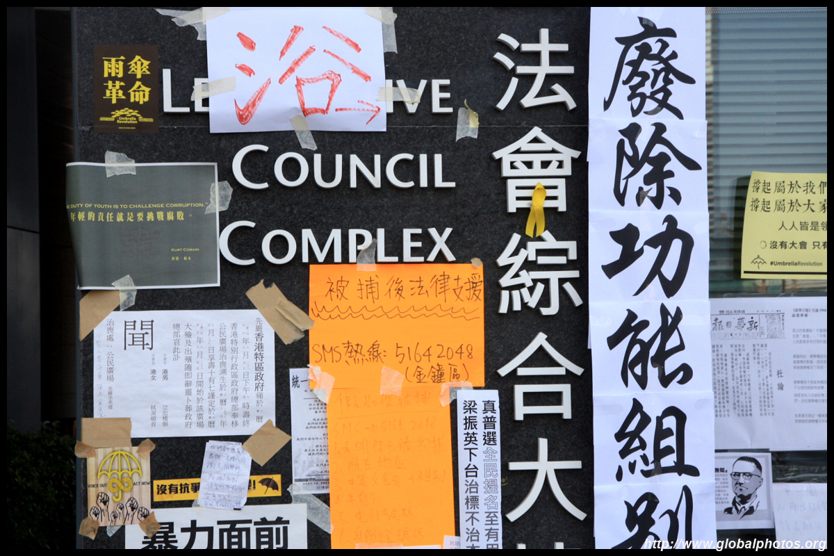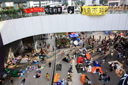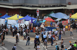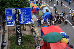 The Occupy Central civil disobedience protest began on September 28, 2014 to voice out against restrictions to universal suffrage being proposed. While originally meant to paralyze the financial district, spillover protests appeared in many parts of the city. The main protest camp was outside the government headquarters in Admiralty.