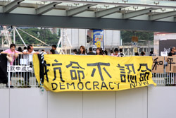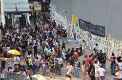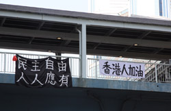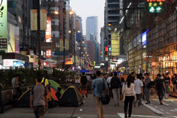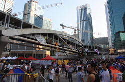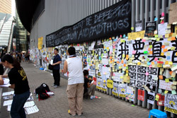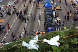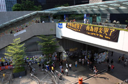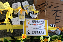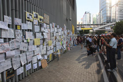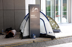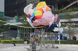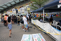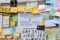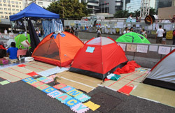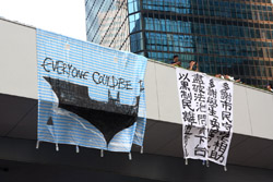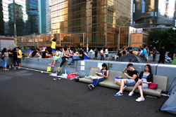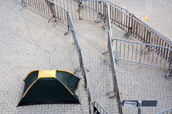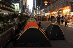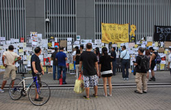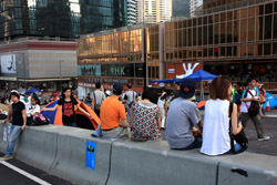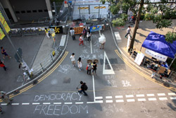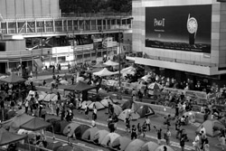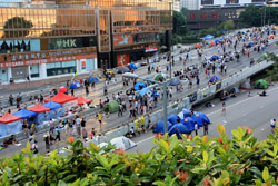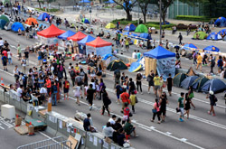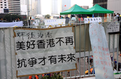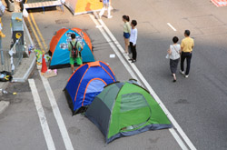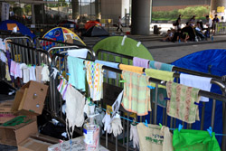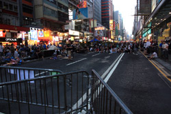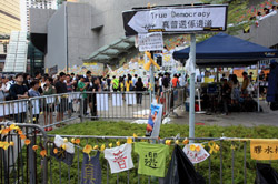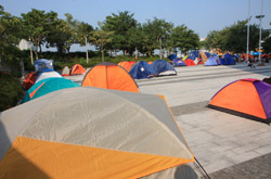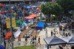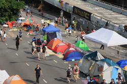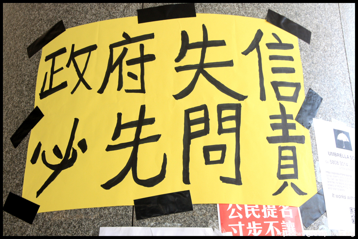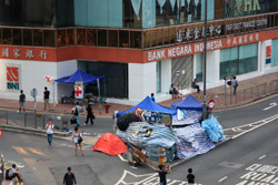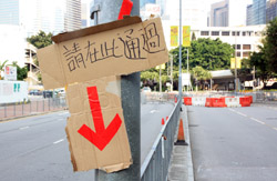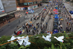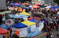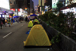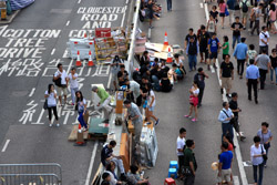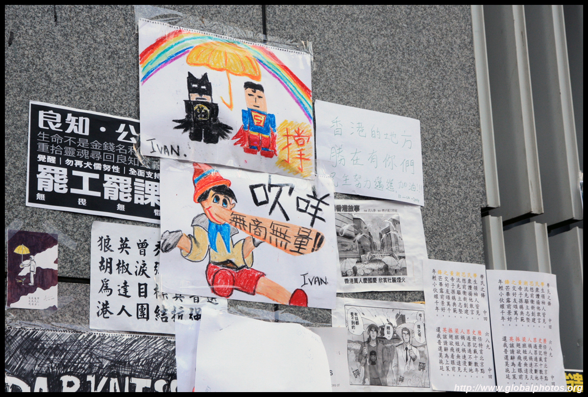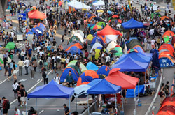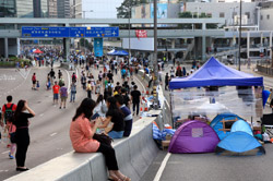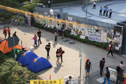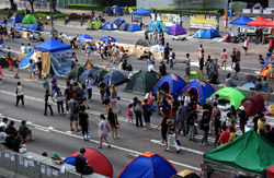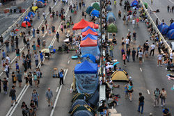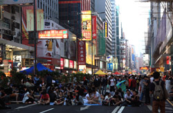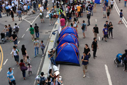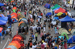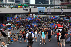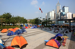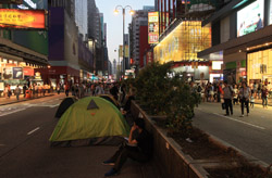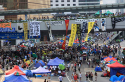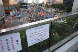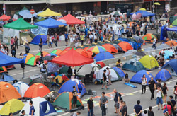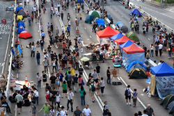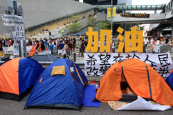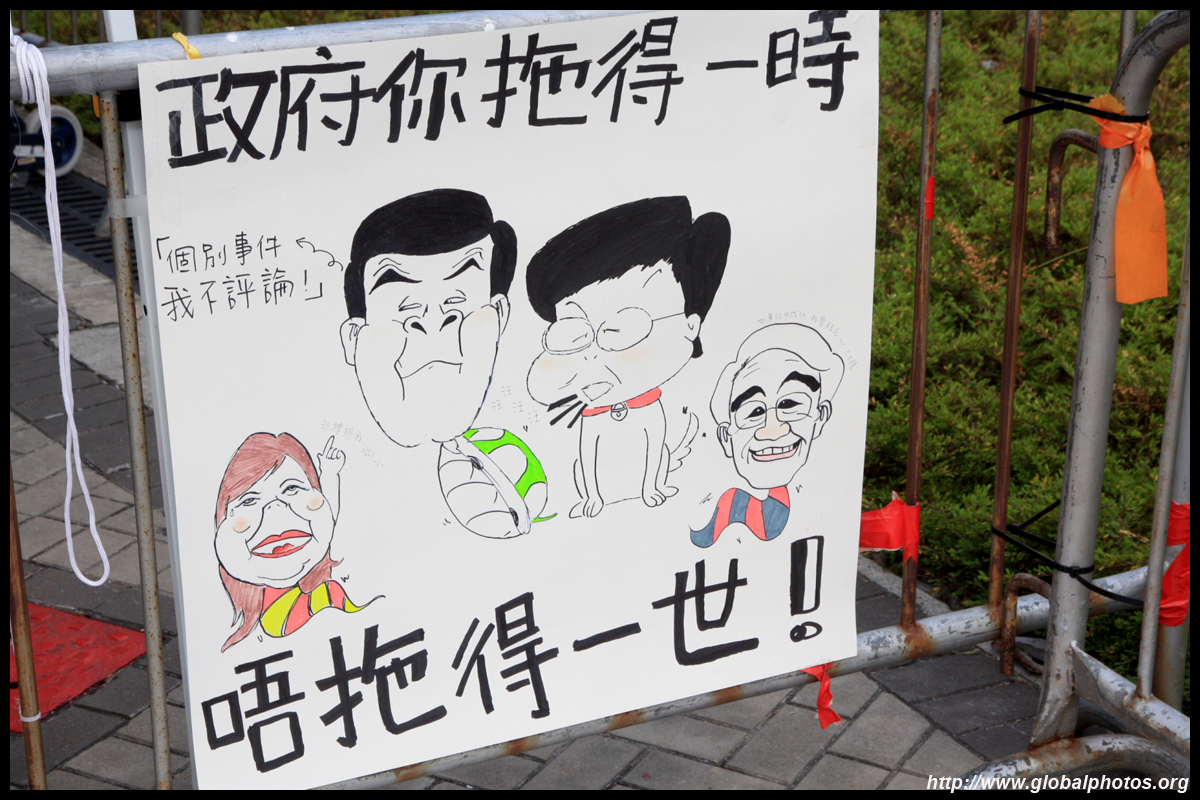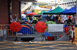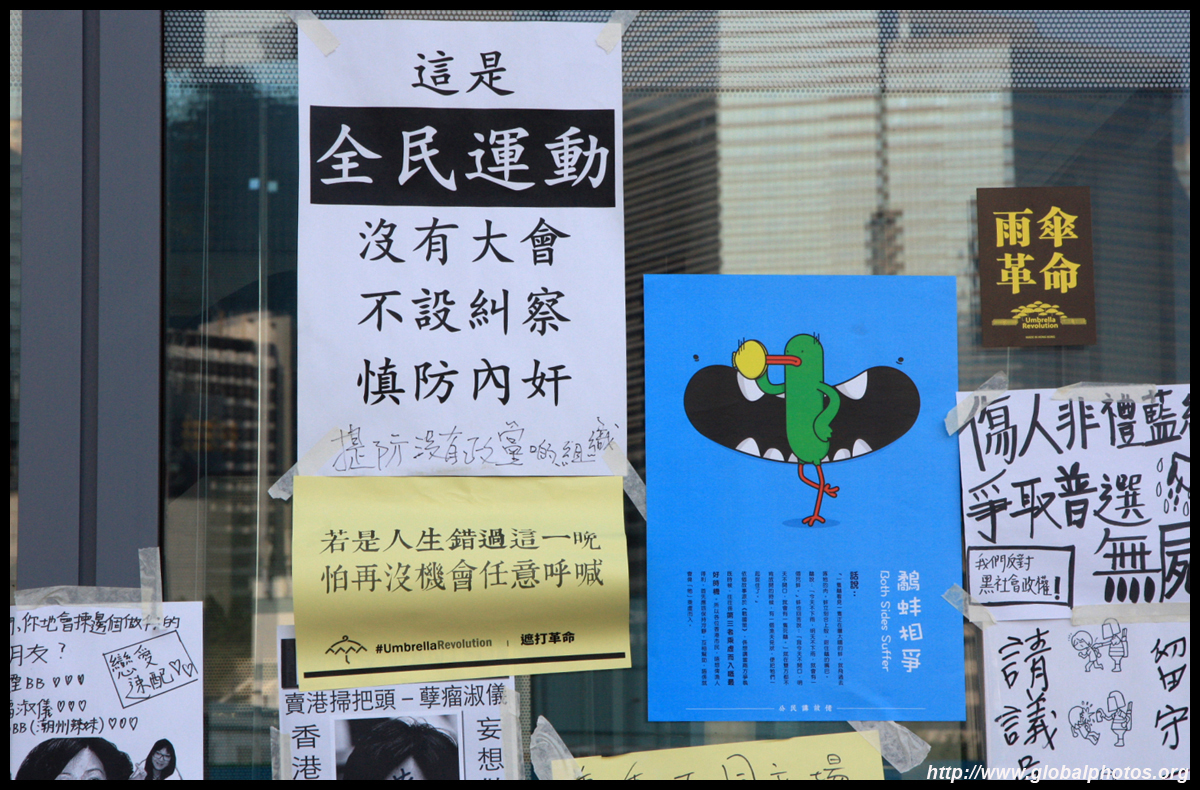 The Occupy Central civil disobedience protest began on September 28, 2014 to voice out against restrictions to universal suffrage being proposed. While originally meant to paralyze the financial district, spillover protests appeared in many parts of the city. The main protest camp was outside the government headquarters in Admiralty.