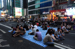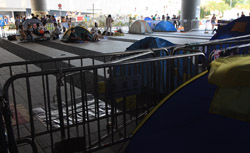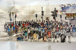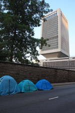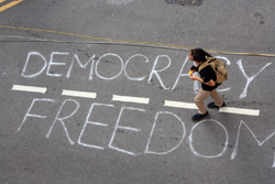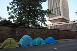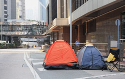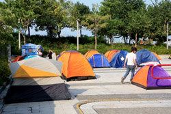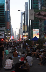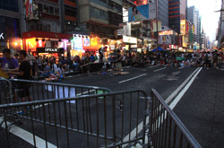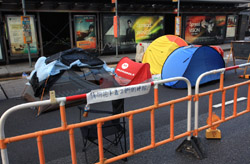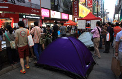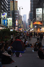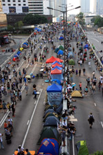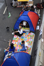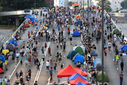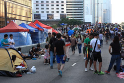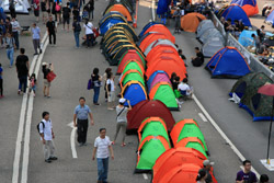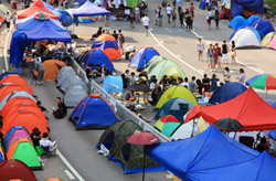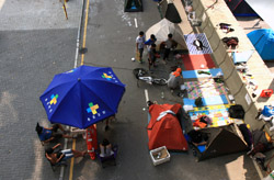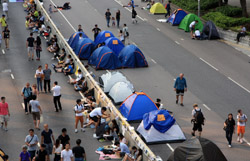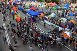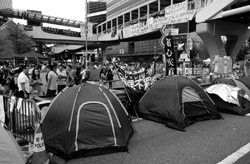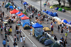 Busy streets were turned into campsites as protesters stayed 24 hours a day.