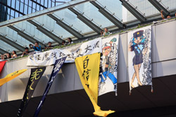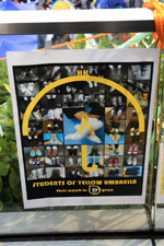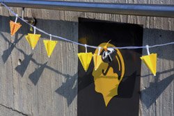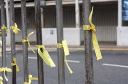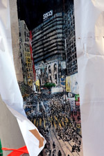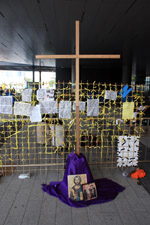 Protest banners came in many original and unique forms, with this one incorporating an artistic flavour.