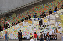The Lennon Wall consisted of hundreds of post-it notes of people's thoughts, which were plentiful indeed.