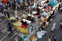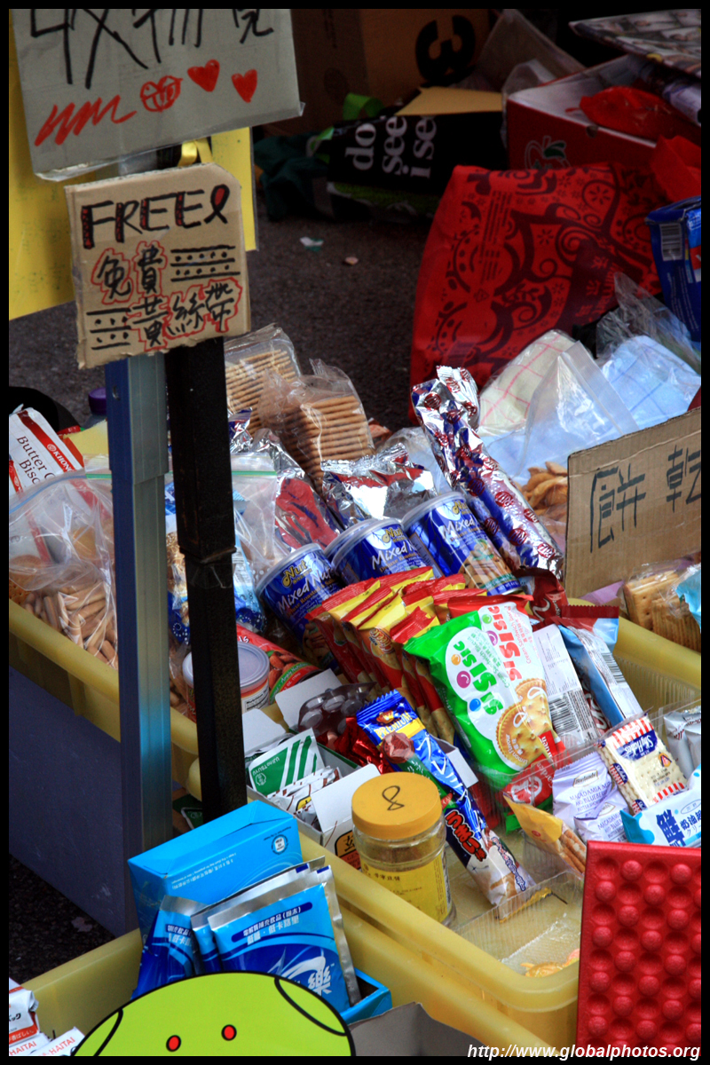 Student protesters were well-organized and had sufficient supplies for a long stay. Help yourself to some biscuits.