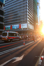 Normally, this is the main thoroughfare with trams, buses, and other cars moving about.