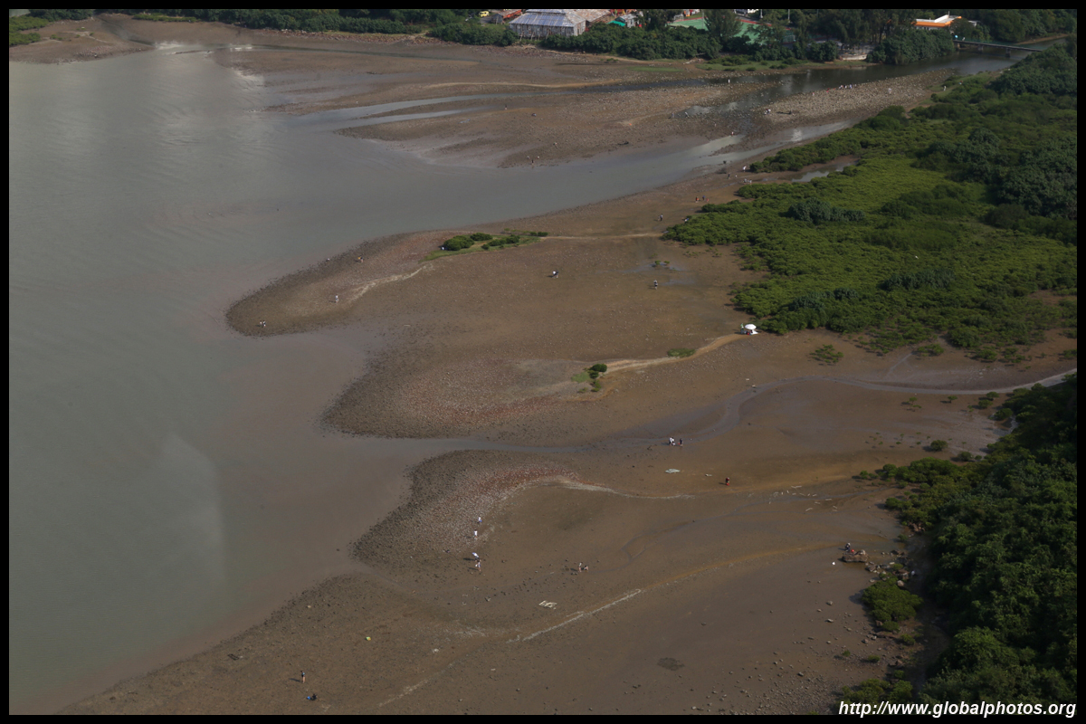 At low tide, many people were out in the muddy seabed hunting for creatures.