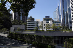 Uphill from Pacific Place, the Asia Society occupies the former Explosives Magazine of the Victoria Barracks. 4 British military buildings dating from the mid 19th century have survived today, with property developers not interested in demolishing them as part of the Pacific Place development in the 1980s.