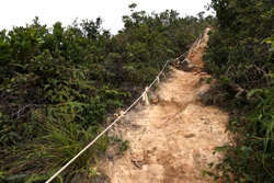 Behind the estate is Yuk Kwai Shan, a steep hill that rises 196m above sea level. The ascent is not easy to find, starting behind the fence next to the bus station's staff portable office, then uphill through difficult terrain. Make use of the ropes installed along the rail to help navigate the dirt trails. From the top, the views make the effort worthwhile.