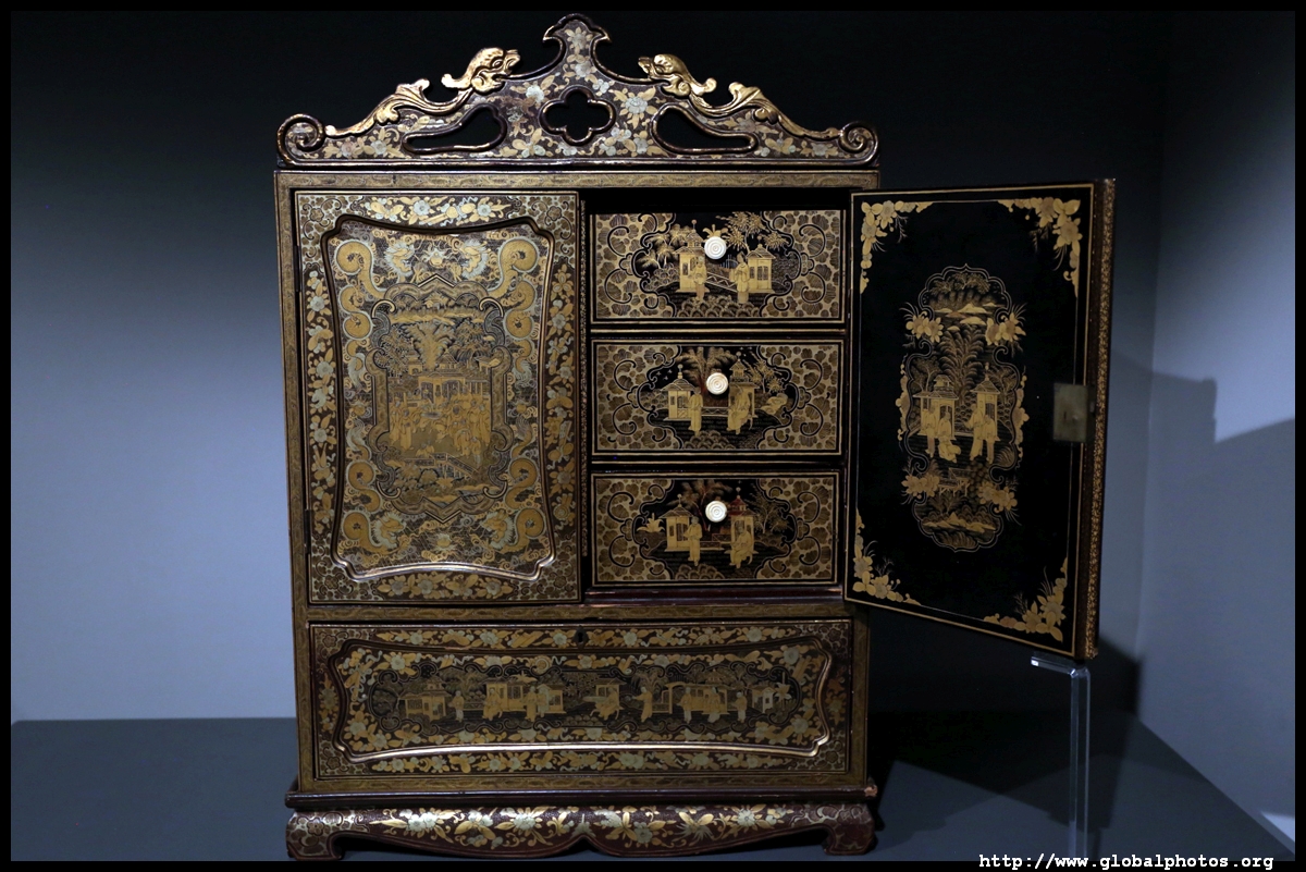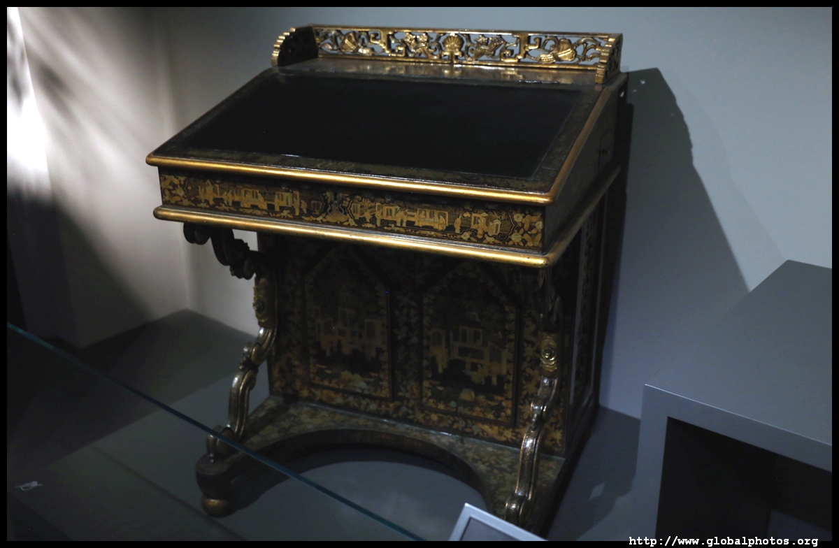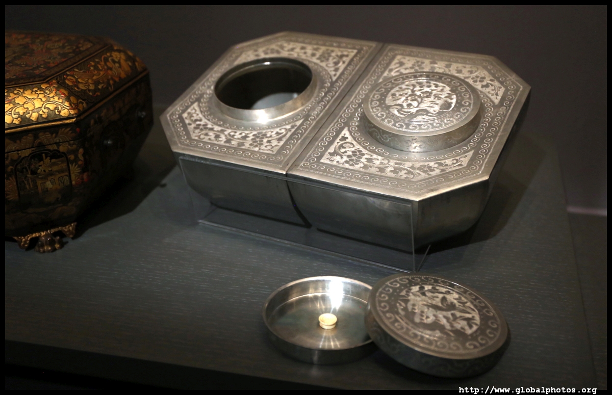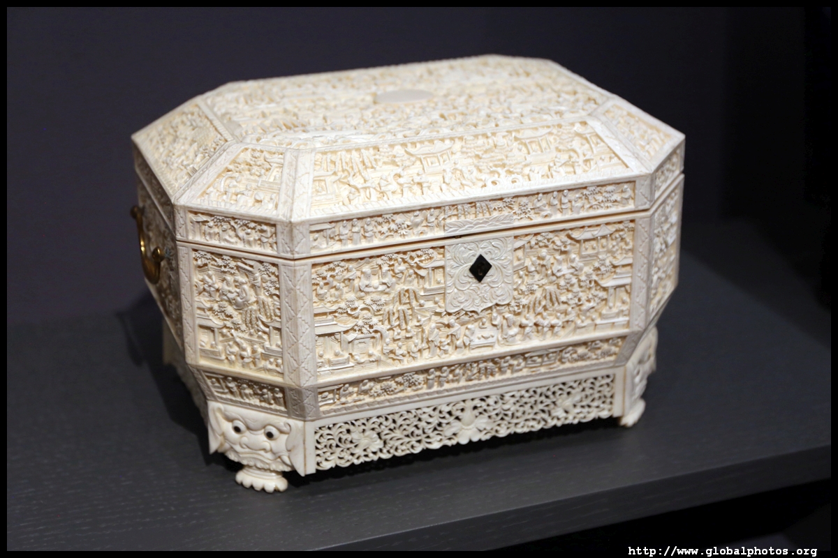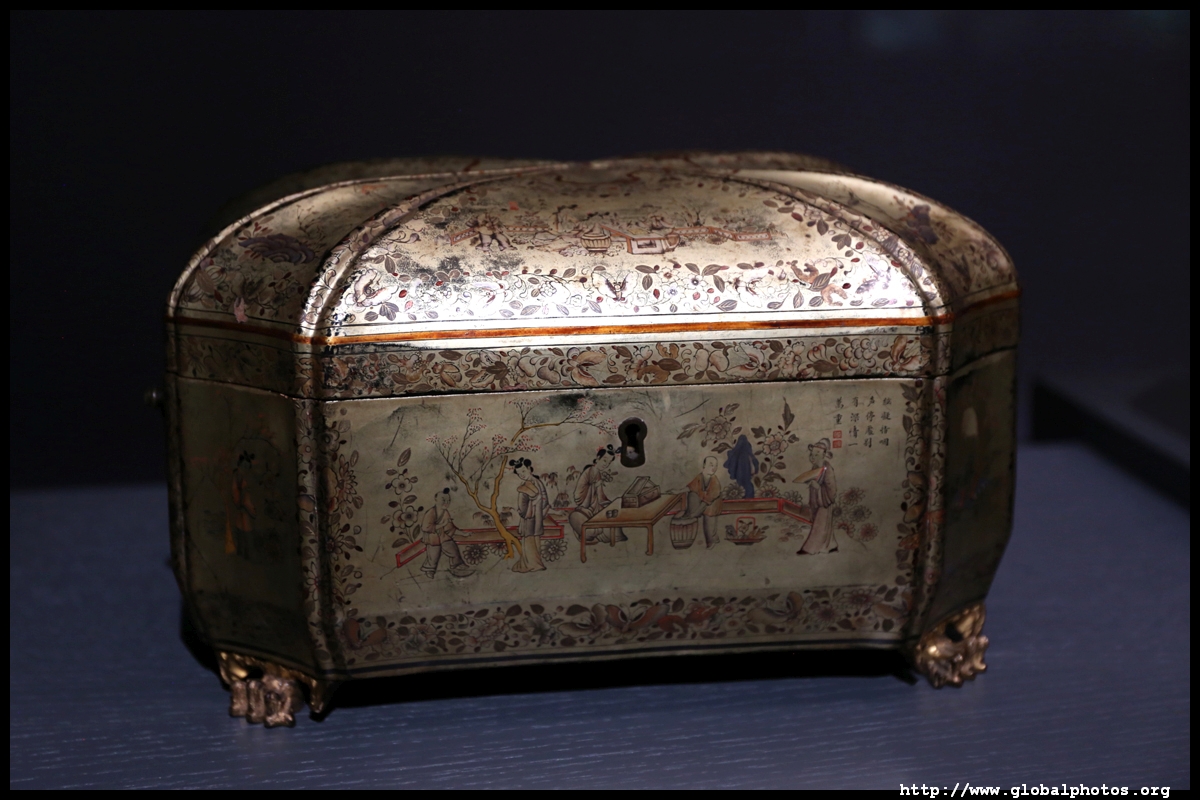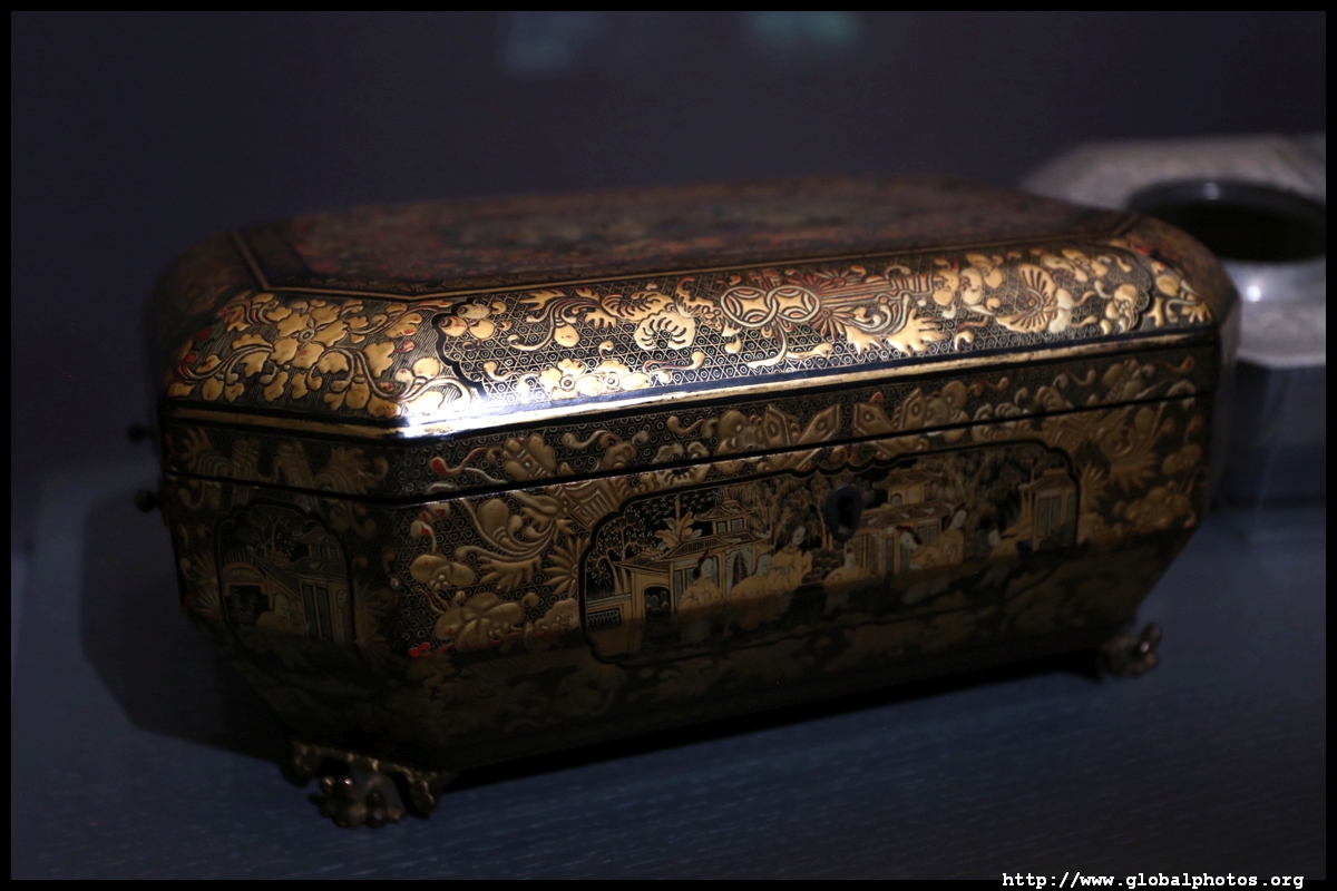 Lacquerware exported from Canton were heavily decorated with intricate patterns. Used to store tea, which was an expensive commodity in Europe, they had to be locked up like safety deposit boxes to protect its contents.