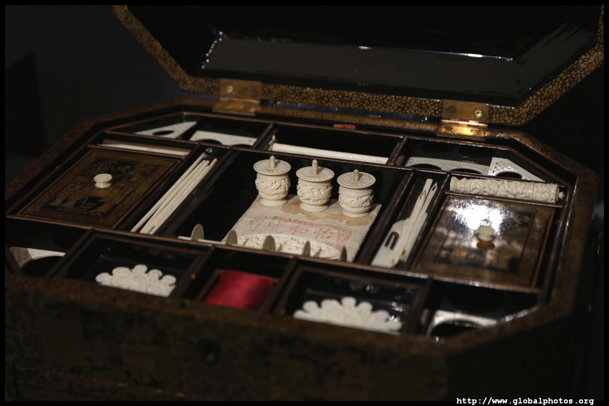 This early 19th century lacquer sewing box catered for Western upper class tastes. The more exquisite the sewing box gets, the more noble the woman owning it feels.