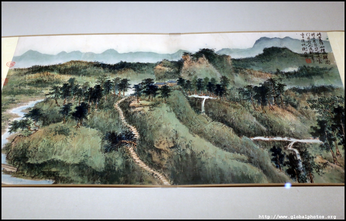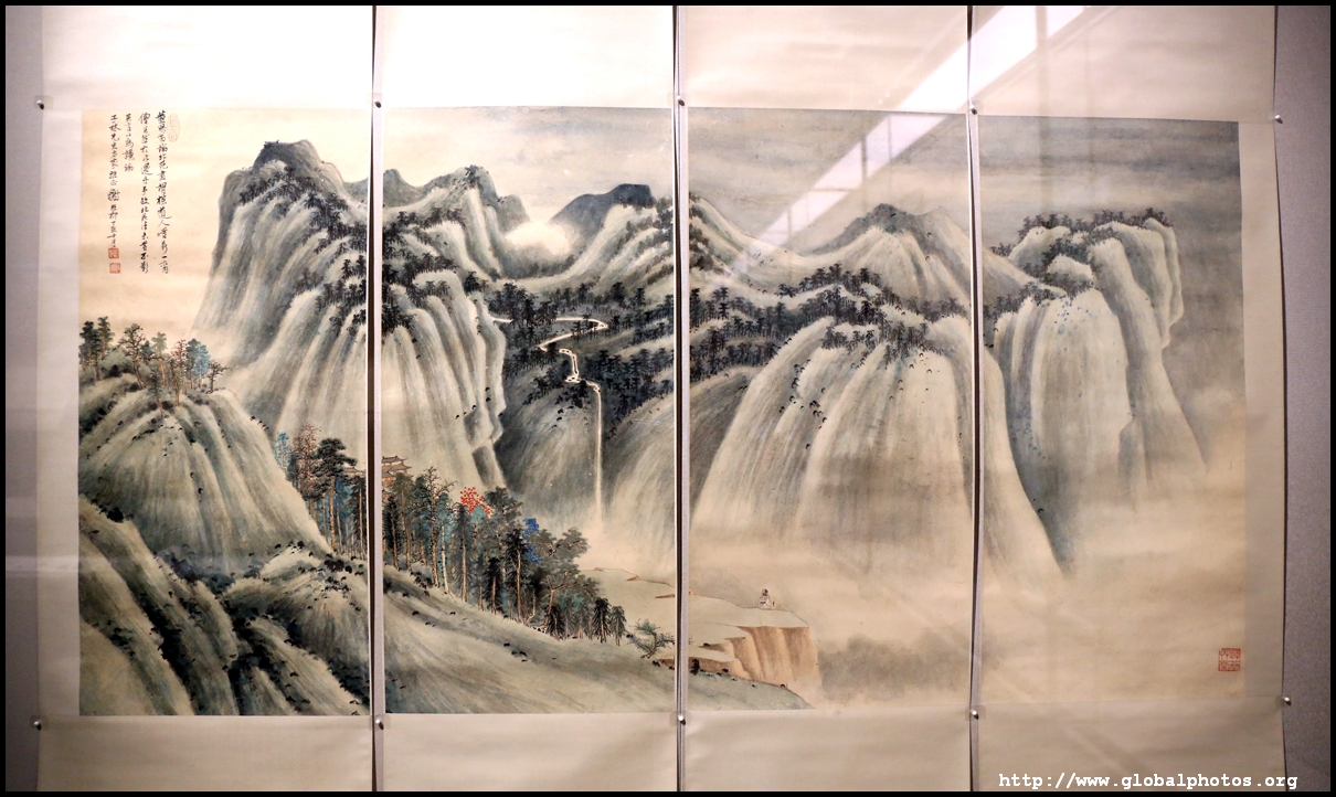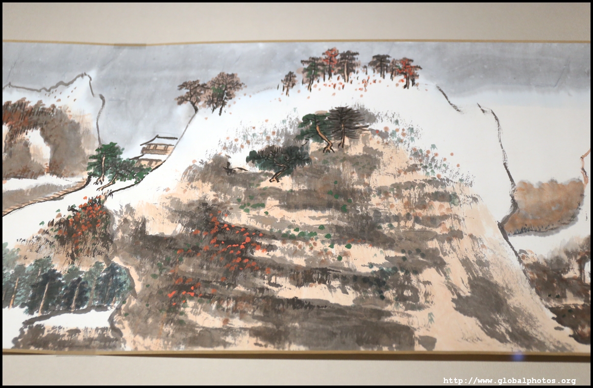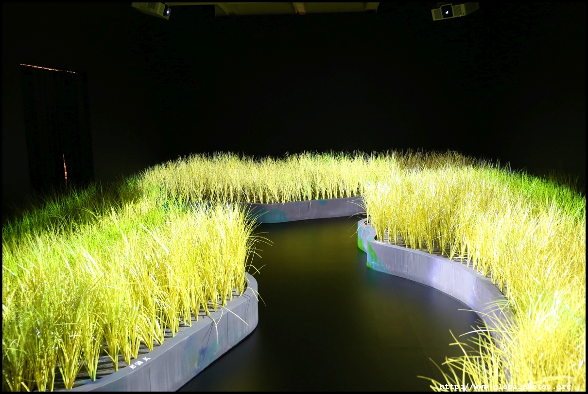 In between exhibits is an installation by local artists Keith Lam and Seth Hon, who were inspired by the painter couple's travels through natural landscapes. This is a view of the 4 seasons superimposed on a paddy field.