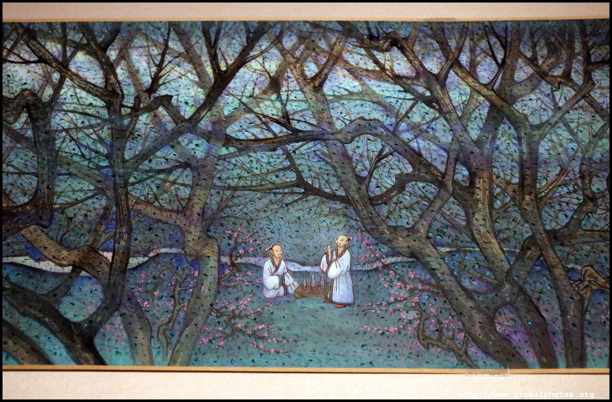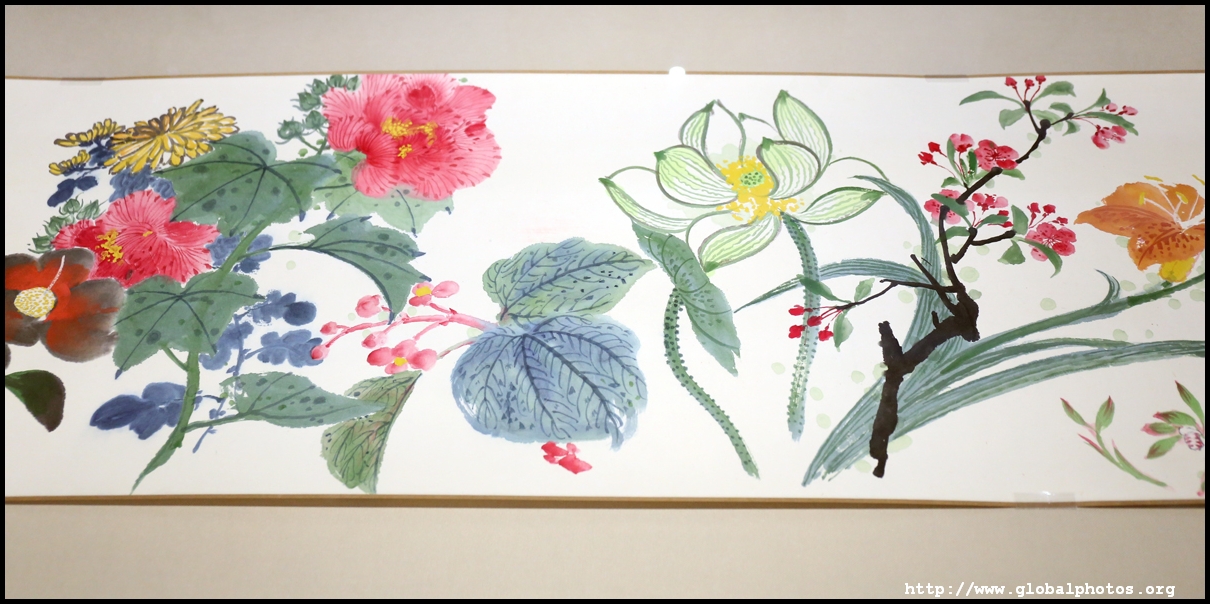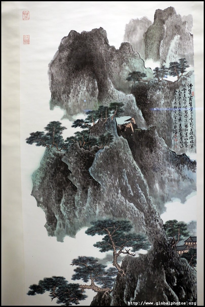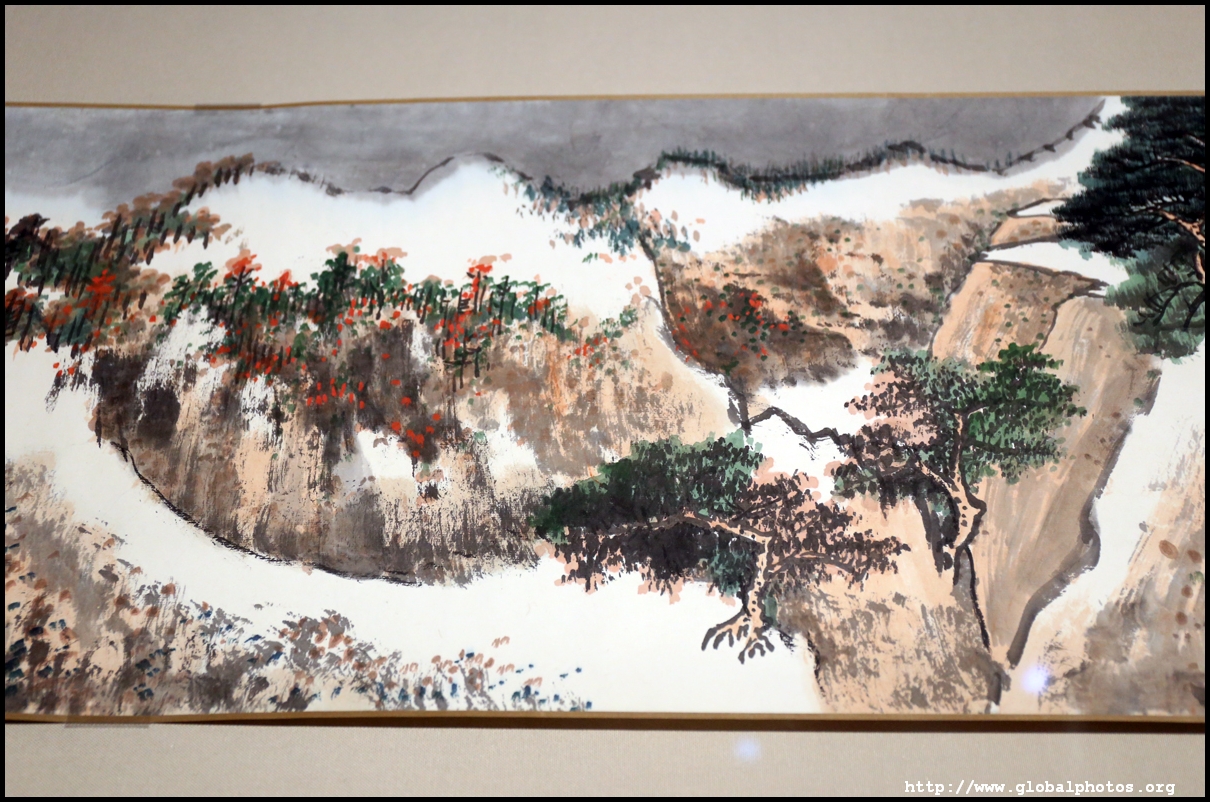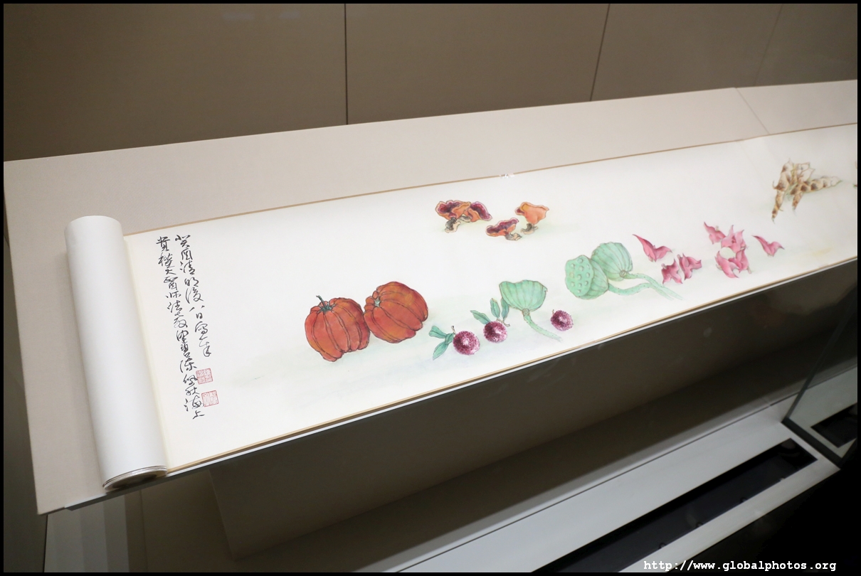 In between exhibits is an installation by local artists Keith Lam and Seth Hon, who were inspired by the painter couple's travels through natural landscapes. This is a view of the 4 seasons superimposed on a paddy field.