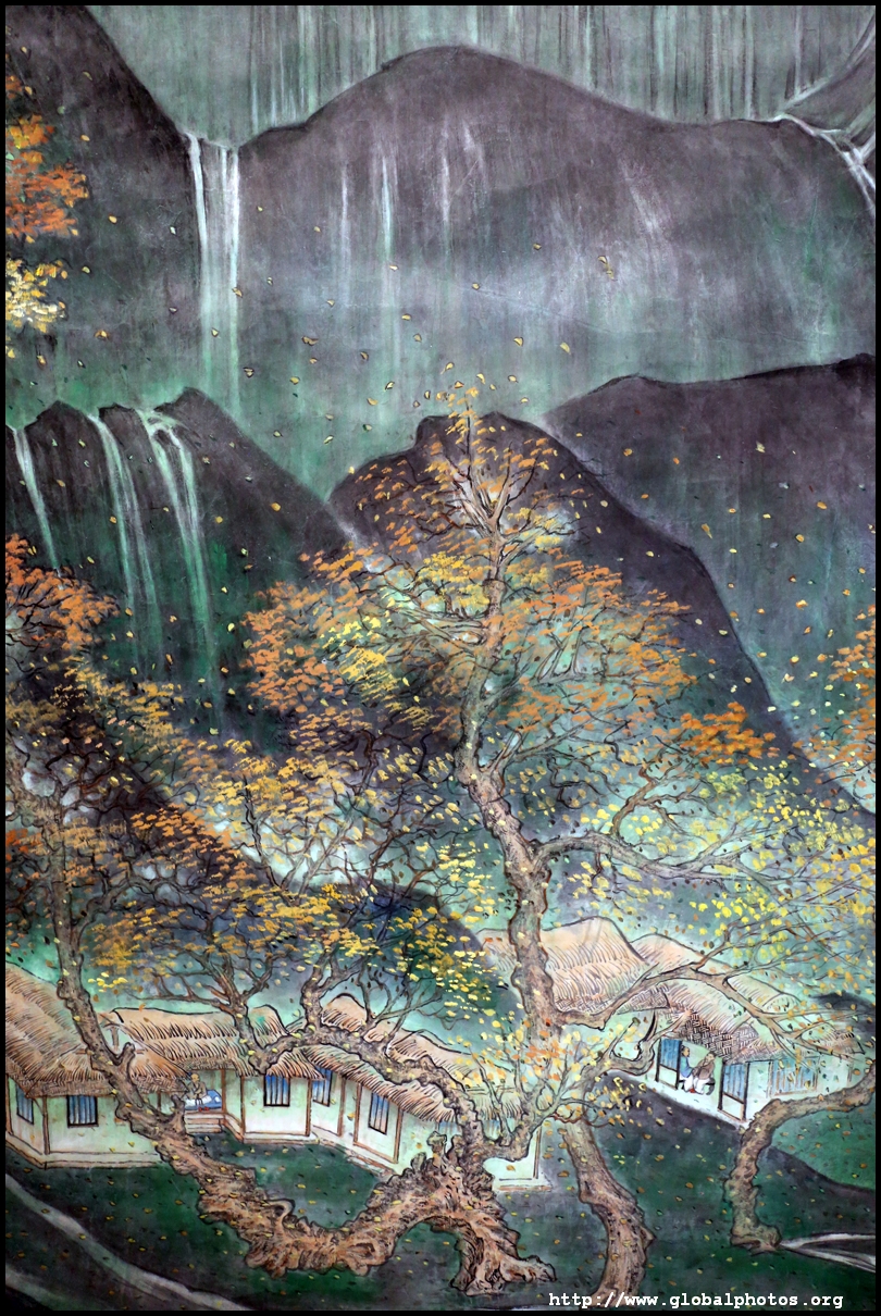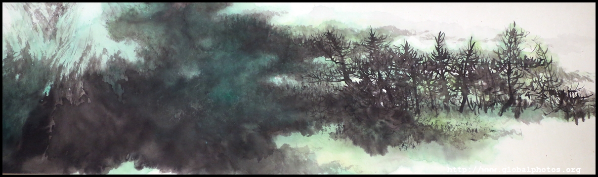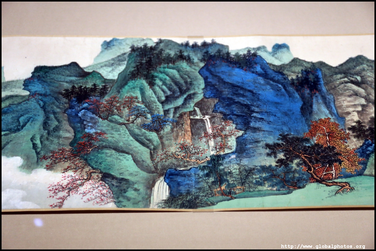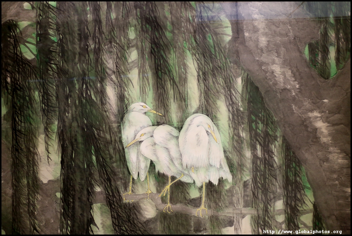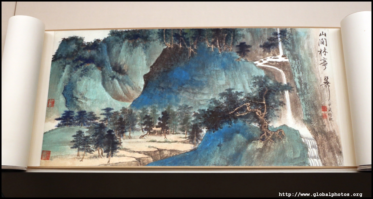 In between exhibits is an installation by local artists Keith Lam and Seth Hon, who were inspired by the painter couple's travels through natural landscapes. This is a view of the 4 seasons superimposed on a paddy field.