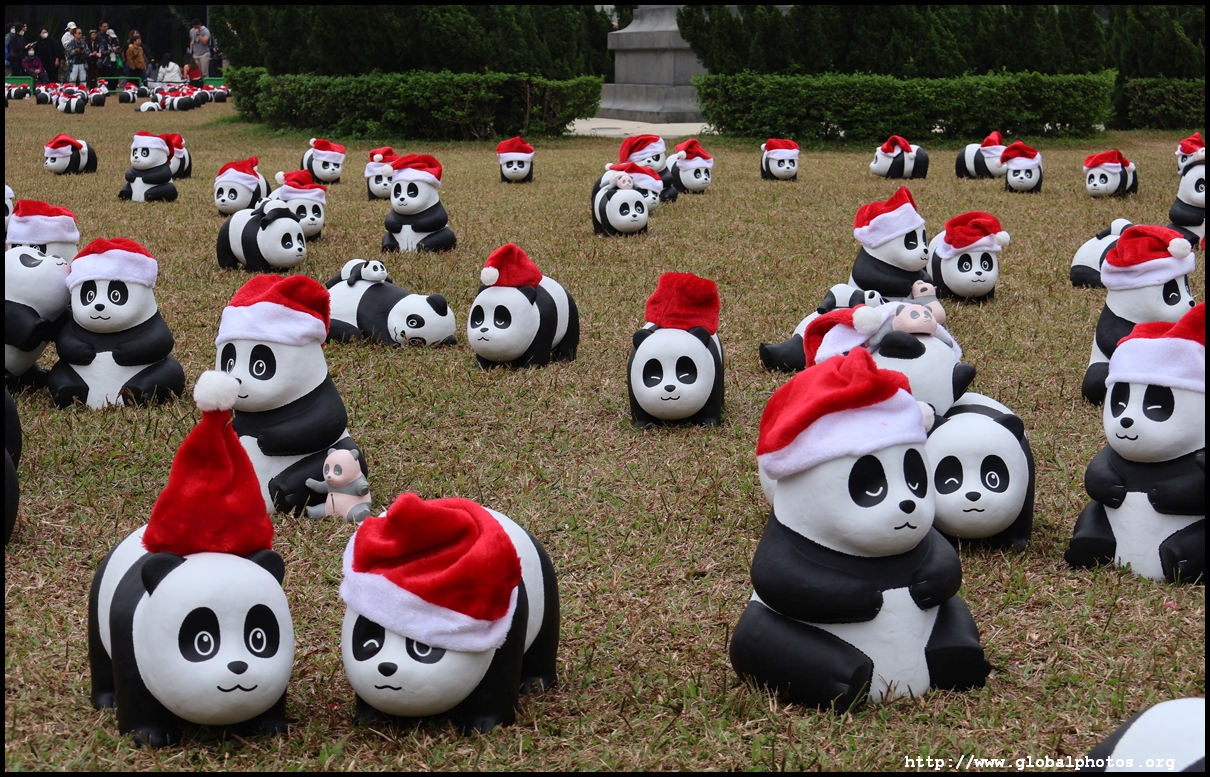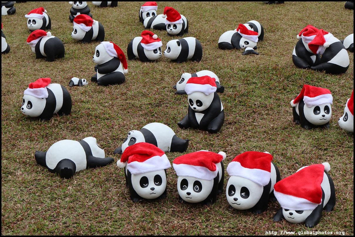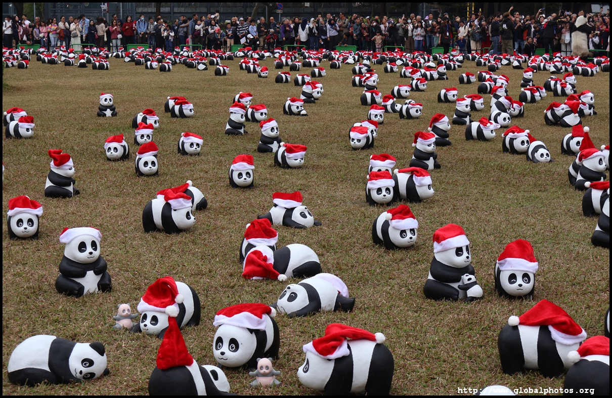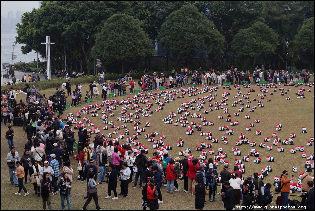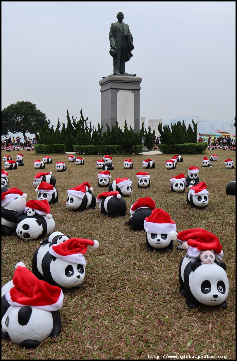 2 pandas gifted by Beijing to celebrate the handover arrived in Hong Kong in late September 2024. To celebrate the occasion, a series of panda-related events are taking place through the rest of the year.Pandas are native to the bamboo forests of Sichuan, Shaanxi, and Gansu. They are a class I protected animal and a national treasure. AllRightsReserved organized a series of panda sculpture displays around the city throughout December 2024. 2500 strong, they are a tribute to the global panda population, which numbers about 1900 in the wild and a further 600 in captivity. Here, we find them at Sun Yat-sen Memorial Park near Sheung Wan. Once the exhibition is over, 1000 of these sculptures will be sold with proceeds for Ocean Park's panda conservation program.