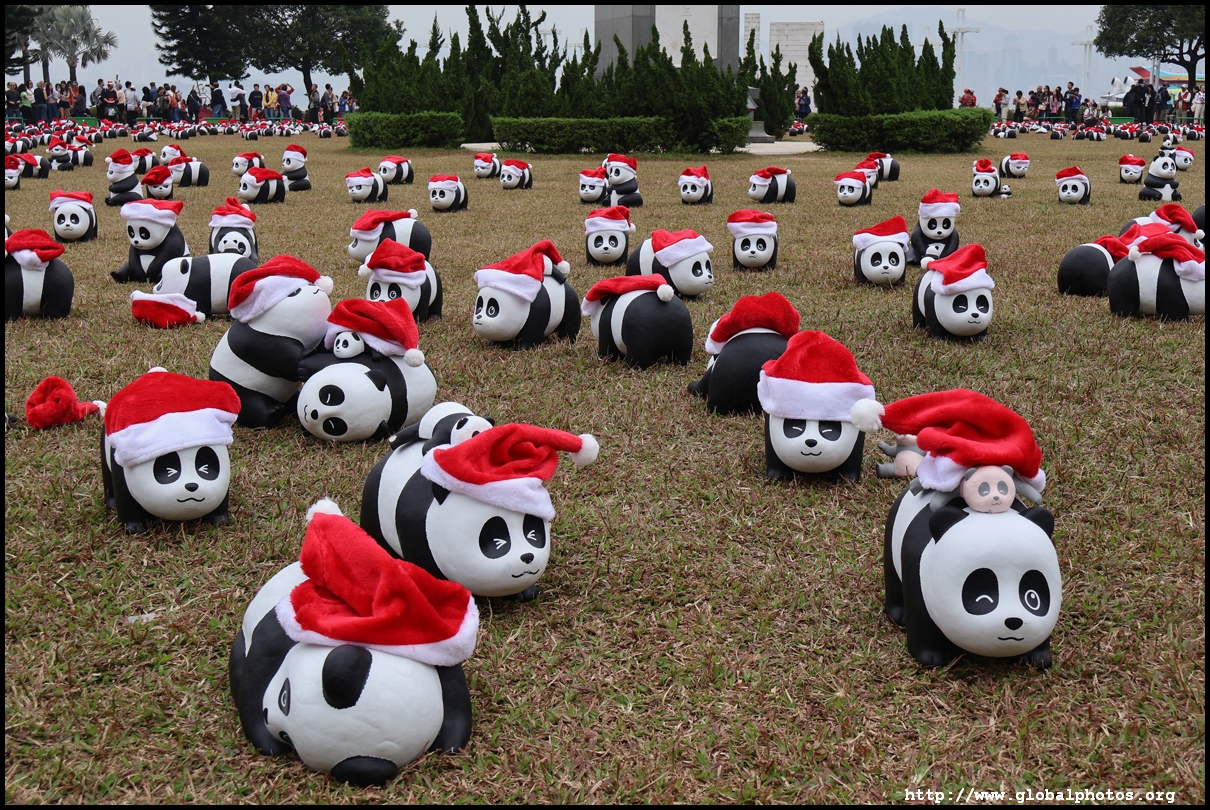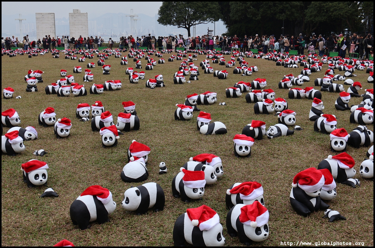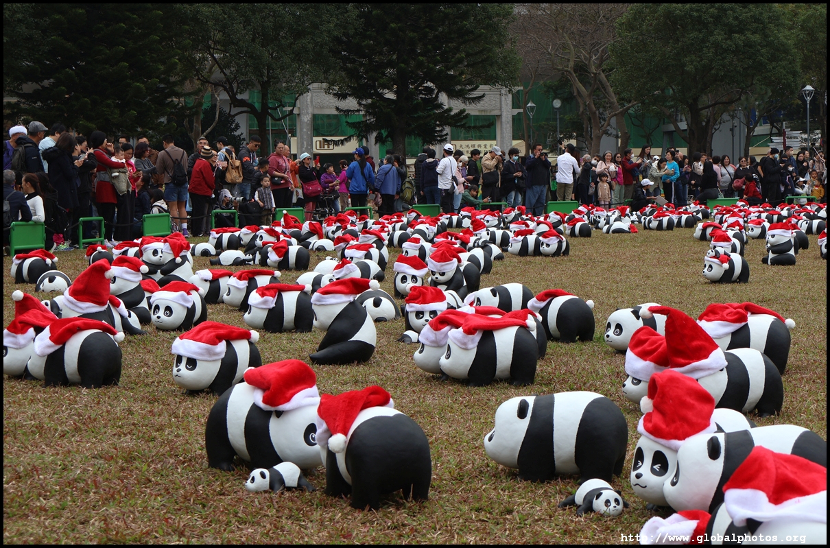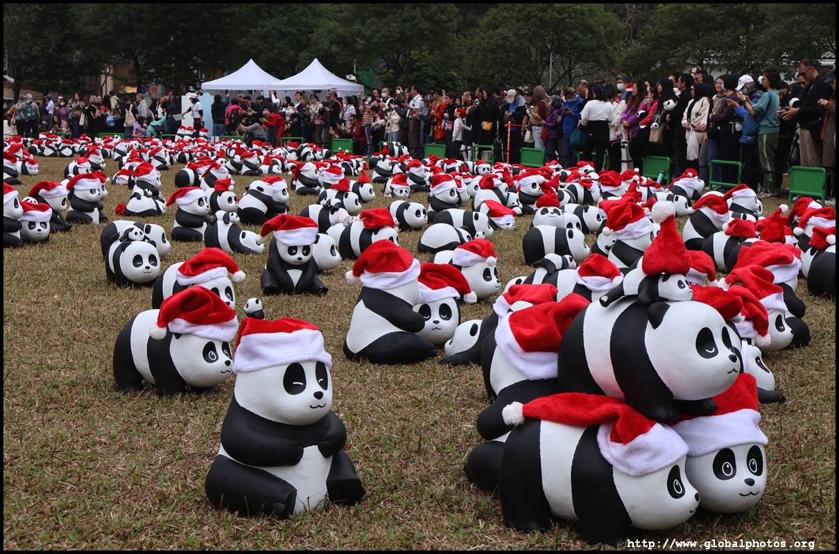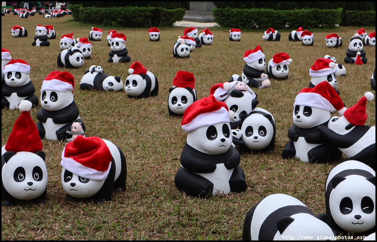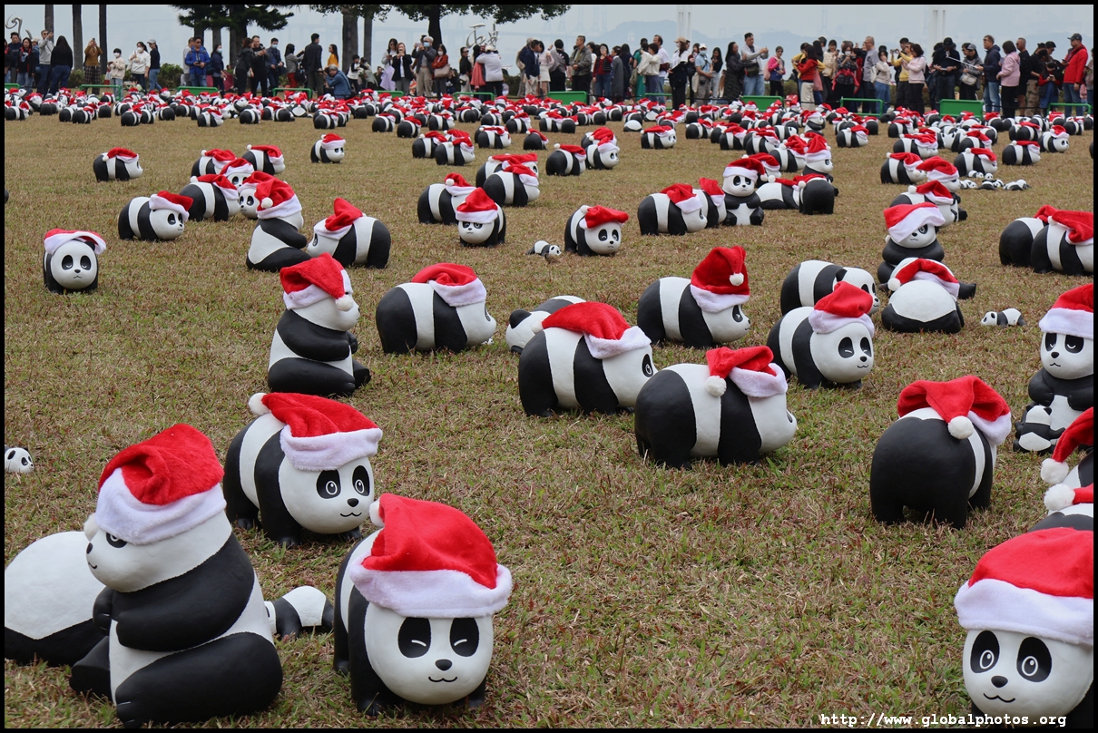 2 pandas gifted by Beijing to celebrate the handover arrived in Hong Kong in late September 2024. To celebrate the occasion, a series of panda-related events are taking place through the rest of the year.Pandas are native to the bamboo forests of Sichuan, Shaanxi, and Gansu. They are a class I protected animal and a national treasure. AllRightsReserved organized a series of panda sculpture displays around the city throughout December 2024. 2500 strong, they are a tribute to the global panda population, which numbers about 1900 in the wild and a further 600 in captivity. Here, we find them at Sun Yat-sen Memorial Park near Sheung Wan. Once the exhibition is over, 1000 of these sculptures will be sold with proceeds for Ocean Park's panda conservation program.