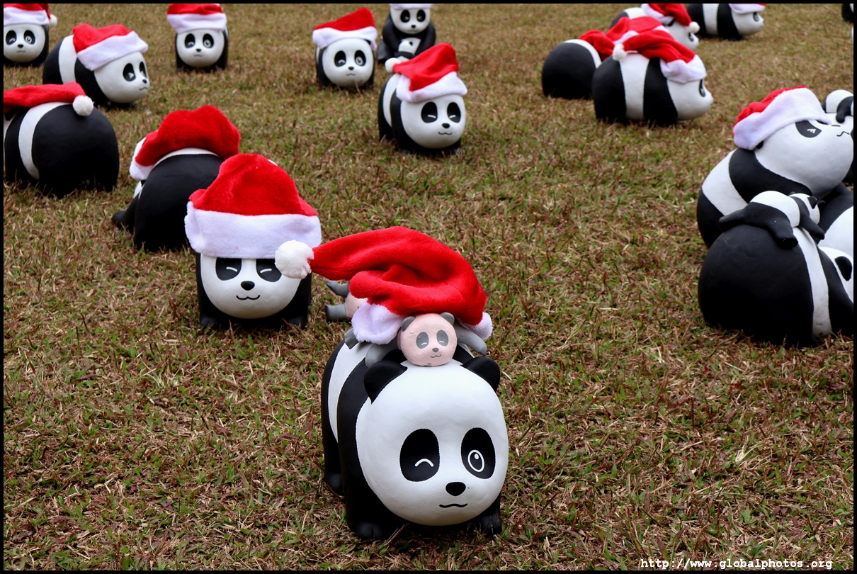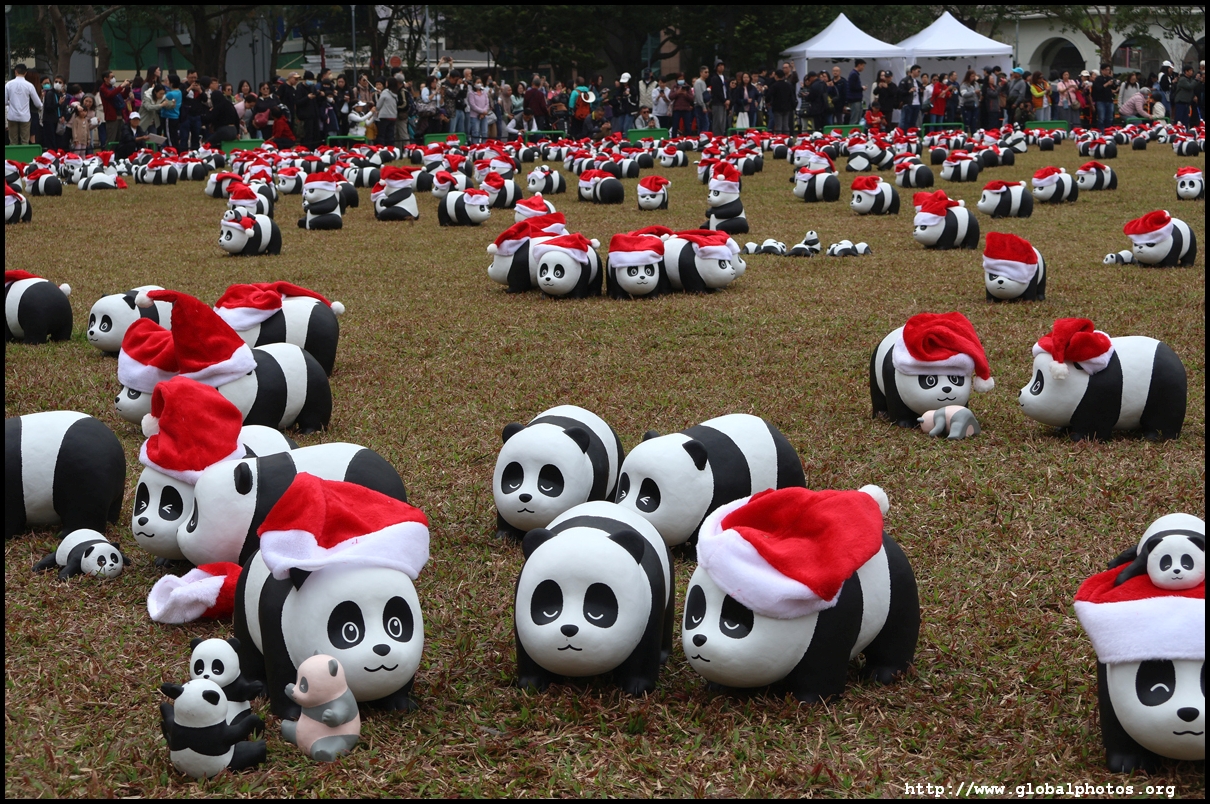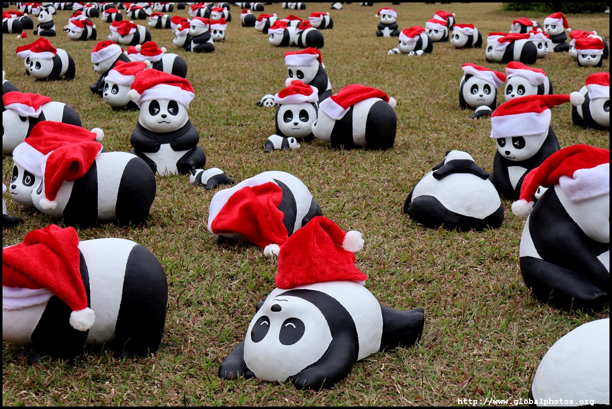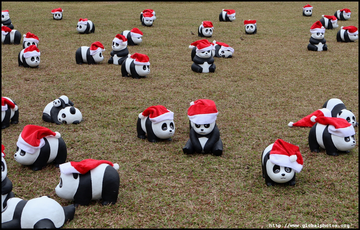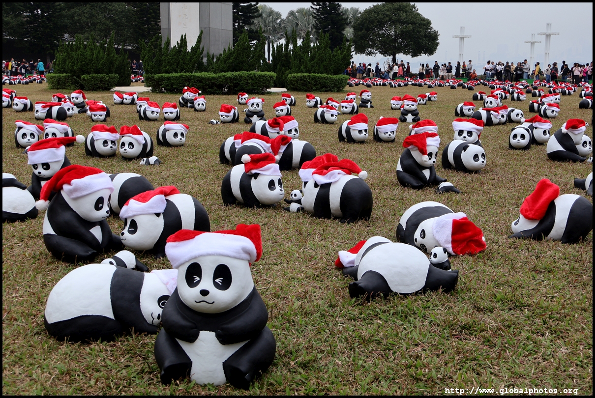 2 pandas gifted by Beijing to celebrate the handover arrived in Hong Kong in late September 2024. To celebrate the occasion, a series of panda-related events are taking place through the rest of the year.Pandas are native to the bamboo forests of Sichuan, Shaanxi, and Gansu. They are a class I protected animal and a national treasure. AllRightsReserved organized a series of panda sculpture displays around the city throughout December 2024. 2500 strong, they are a tribute to the global panda population, which numbers about 1900 in the wild and a further 600 in captivity. Here, we find them at Sun Yat-sen Memorial Park near Sheung Wan. Once the exhibition is over, 1000 of these sculptures will be sold with proceeds for Ocean Park's panda conservation program.