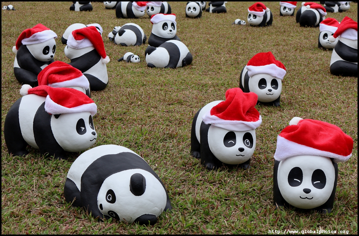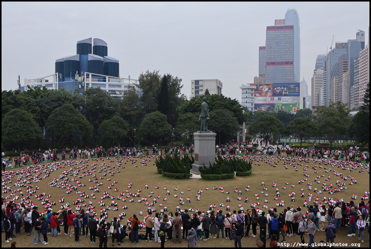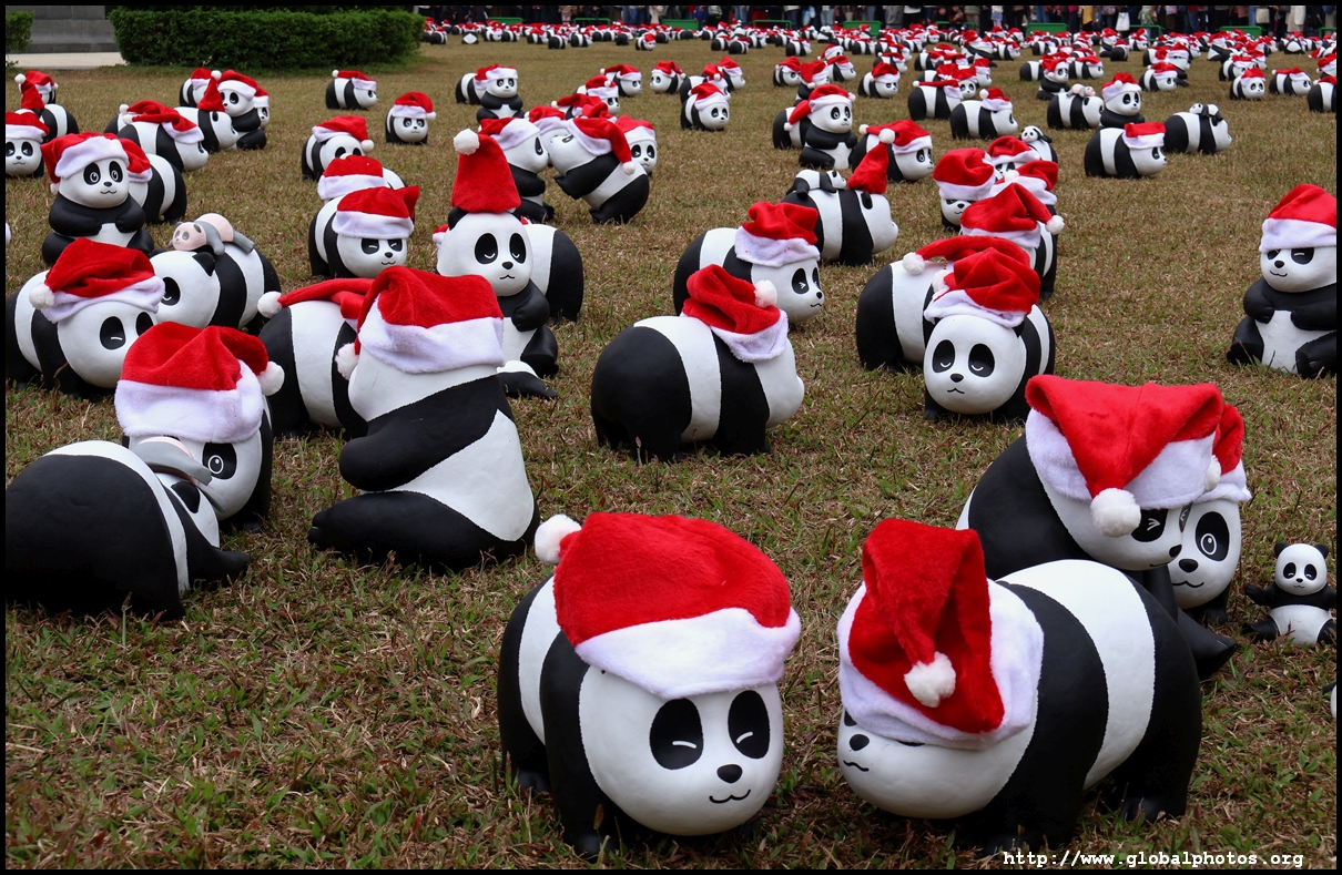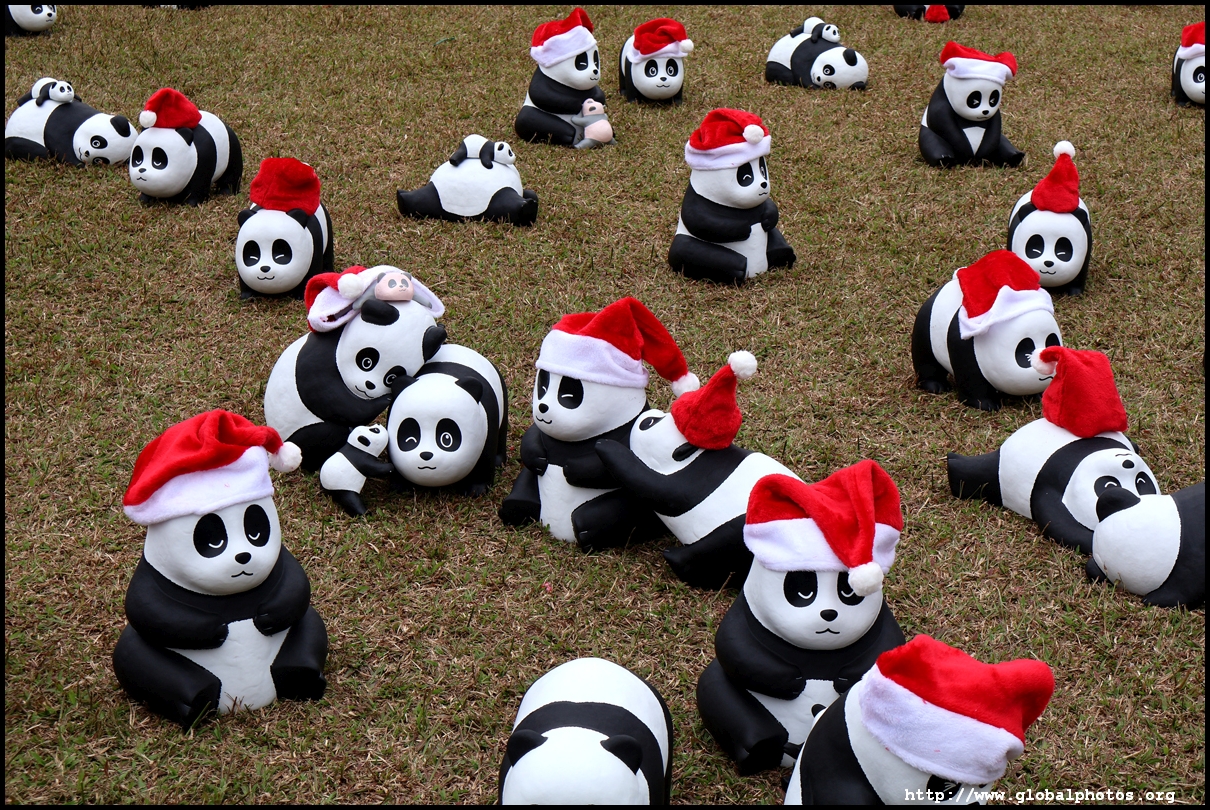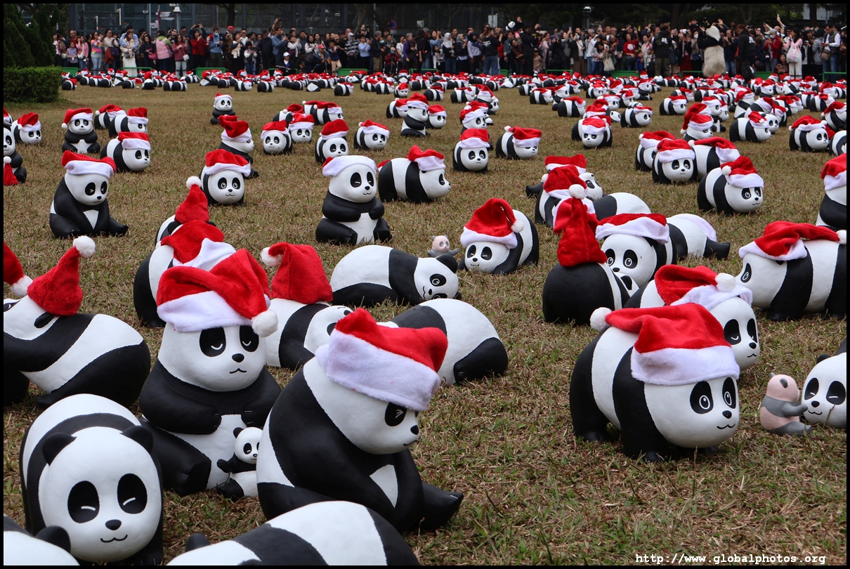 2 pandas gifted by Beijing to celebrate the handover arrived in Hong Kong in late September 2024. To celebrate the occasion, a series of panda-related events are taking place through the rest of the year.Pandas are native to the bamboo forests of Sichuan, Shaanxi, and Gansu. They are a class I protected animal and a national treasure. AllRightsReserved organized a series of panda sculpture displays around the city throughout December 2024. 2500 strong, they are a tribute to the global panda population, which numbers about 1900 in the wild and a further 600 in captivity. Here, we find them at Sun Yat-sen Memorial Park near Sheung Wan. Once the exhibition is over, 1000 of these sculptures will be sold with proceeds for Ocean Park's panda conservation program.