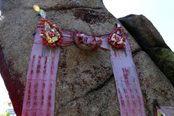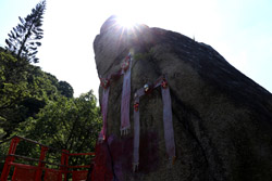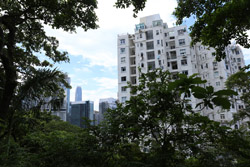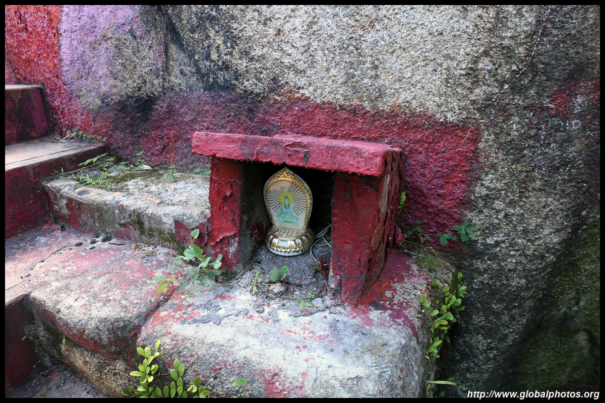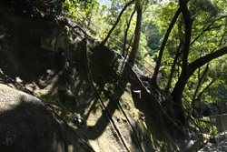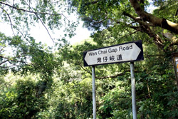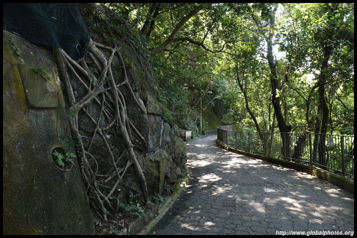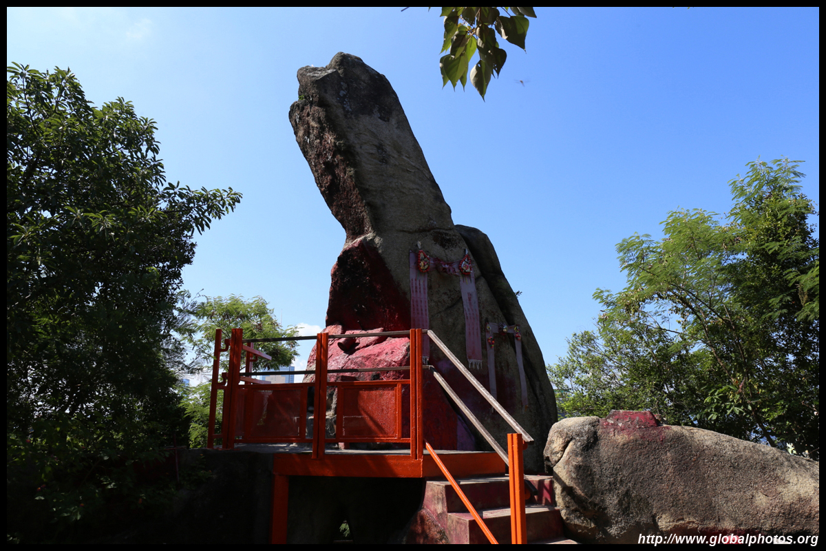 As I walked along the shaded path cooled by the breeze, I noticed a temple entrance. The phallus-shaped Lovers' Rock rises above Bowen Road and is a shrine for a good marriage and fertility.
