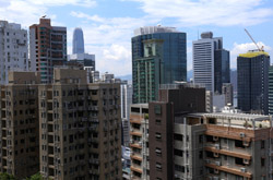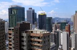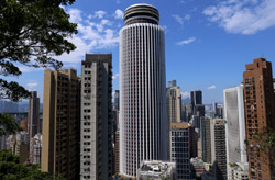 The circular Hopewell Centre was once Hong Kong's tallest building back in the 1980s. Standing at 216m tall, it has been dwarfed by newer buildings since. The current tallest in the city is 484m high.