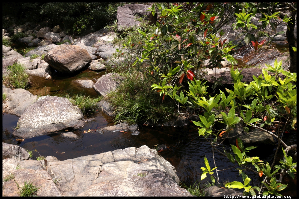 At the junction, turn right into a dirt path that will lead you to the river, starting at a small set of falls. Climb up the rocks and follow upstream towards the grand prize.