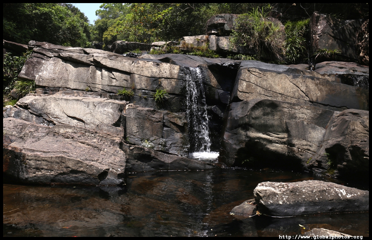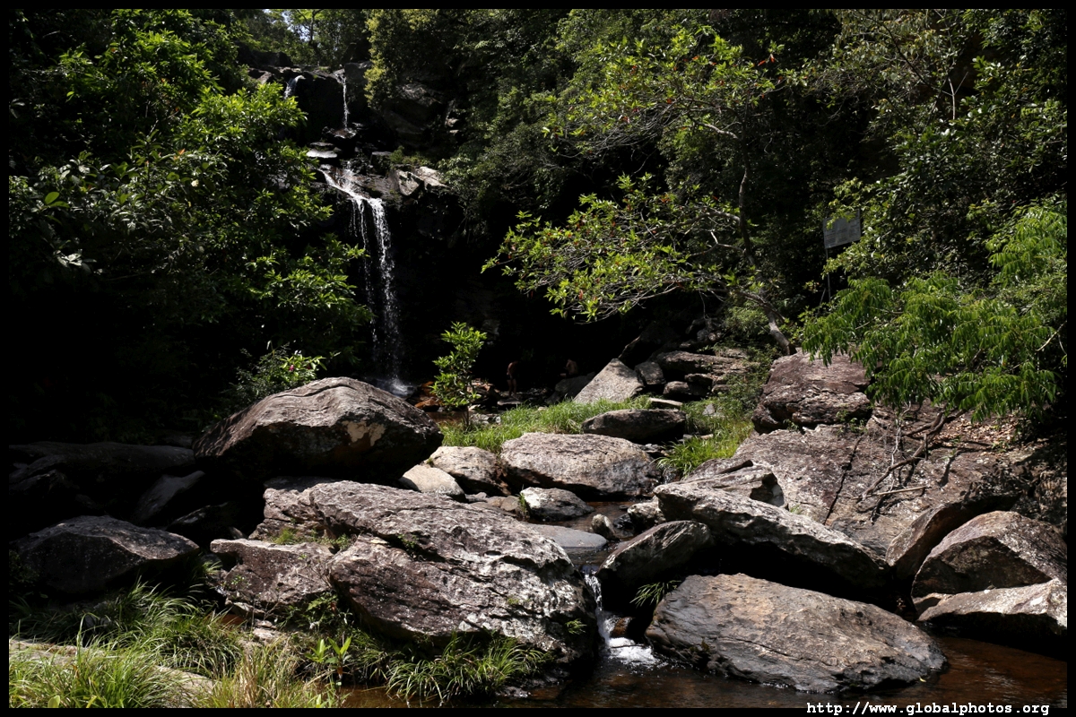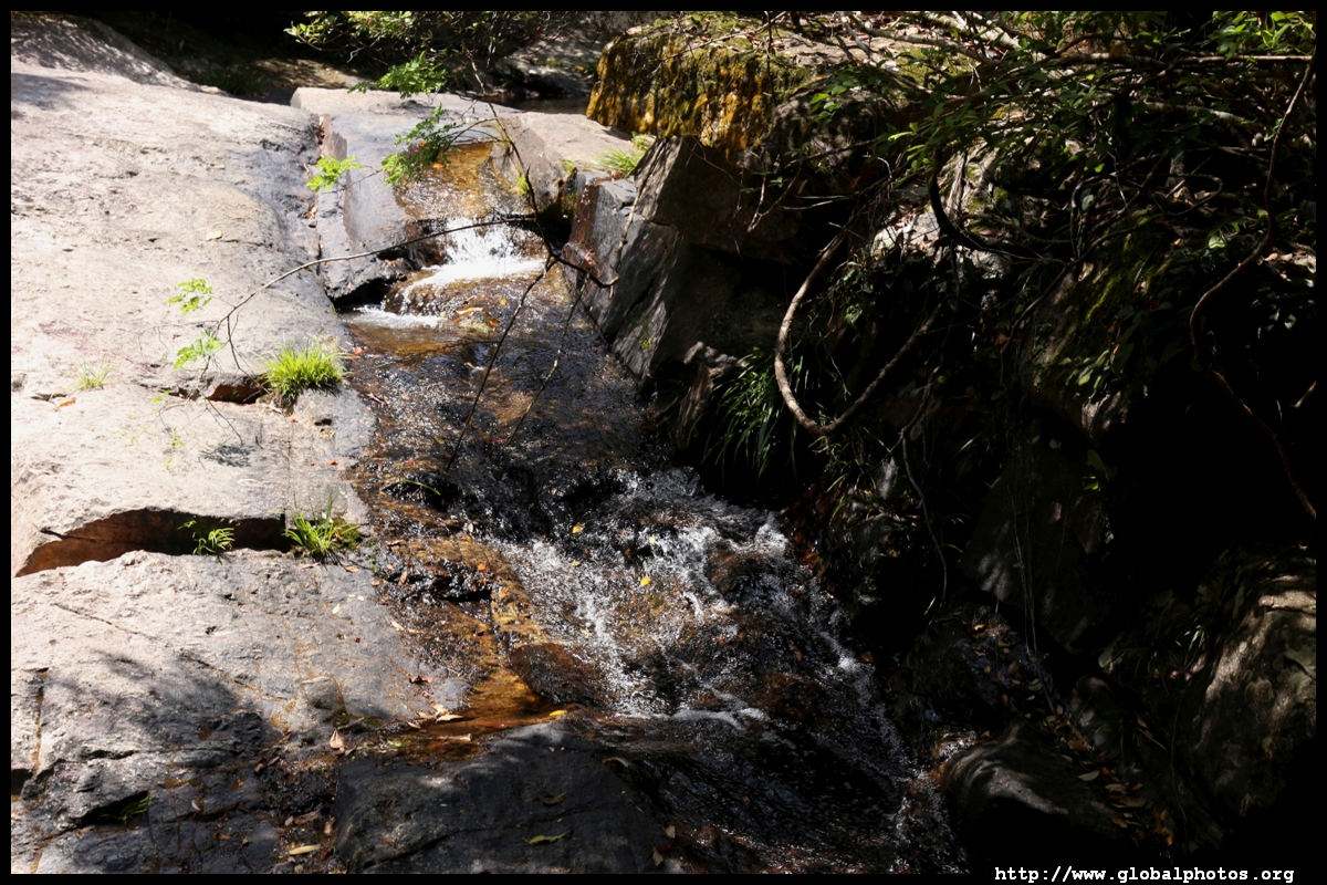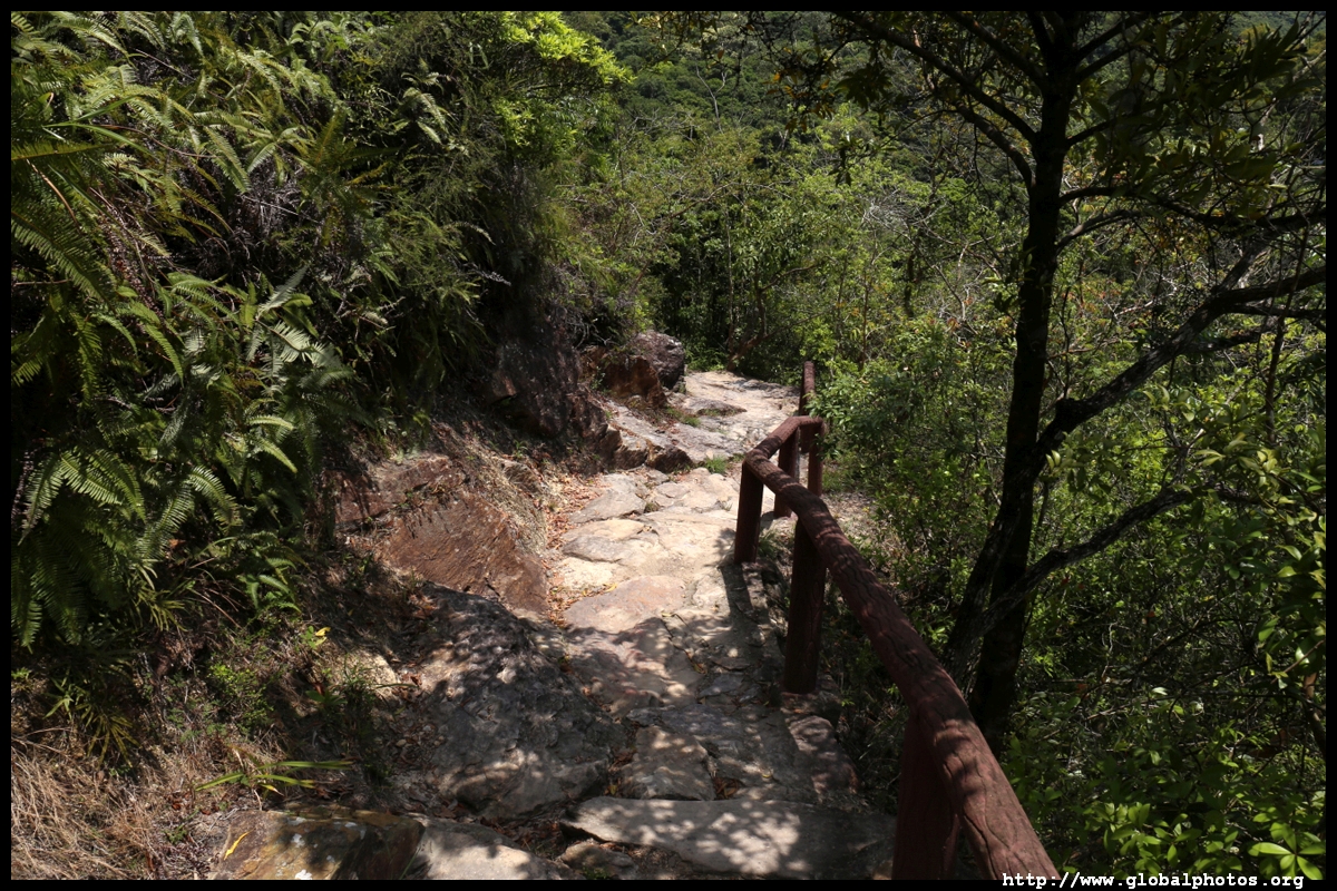 The trail begins at the top of the waterfall and heads downhill. The river feeding it didn't have that much water, likely due to it being the tail end of the dry season.