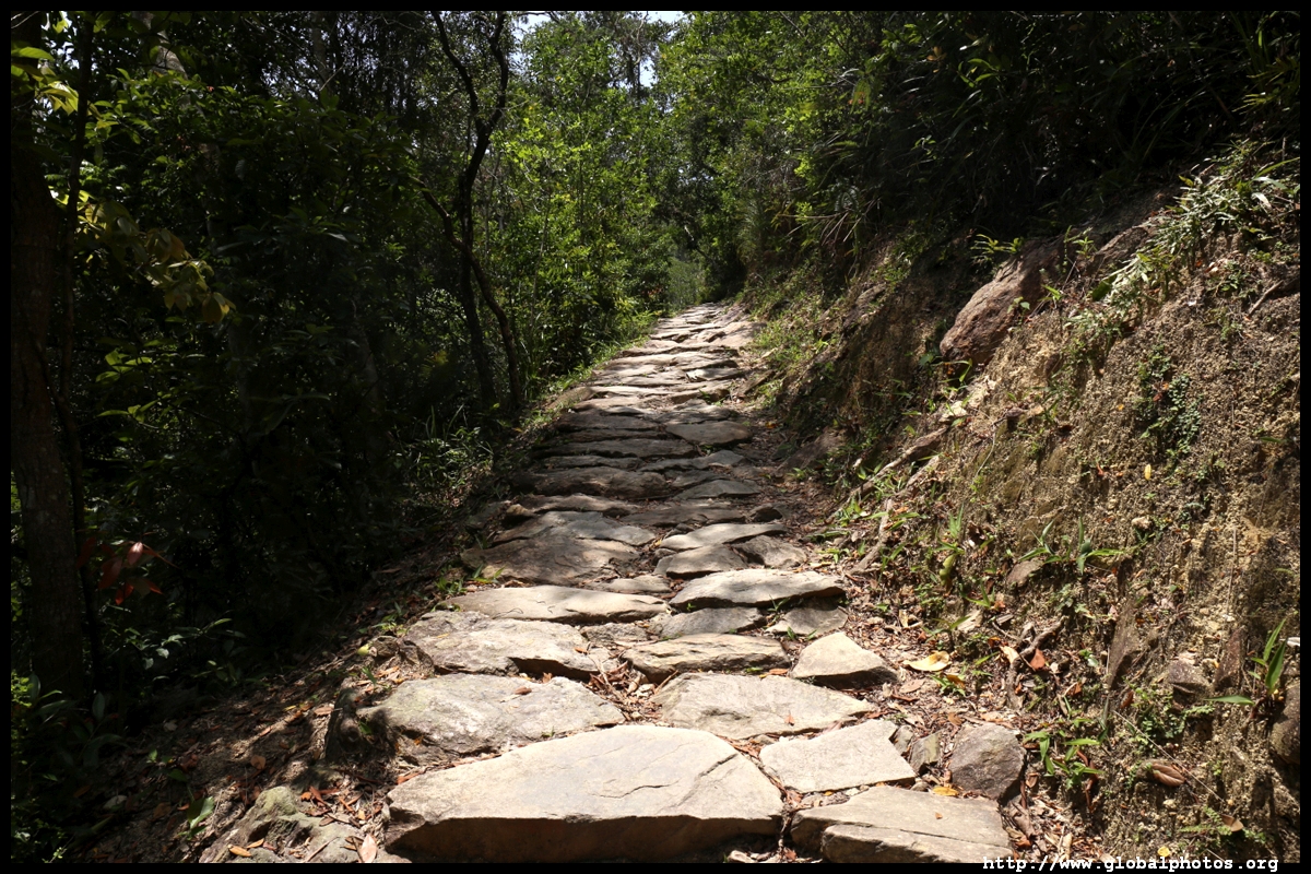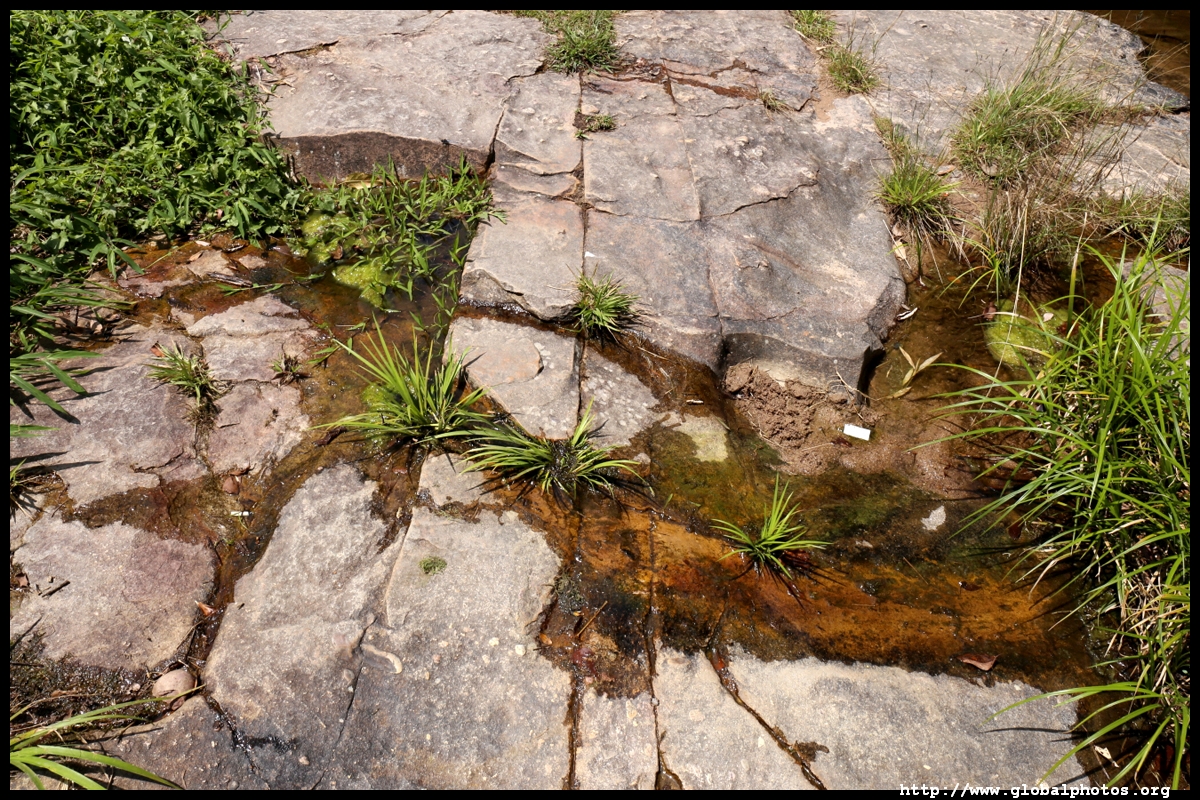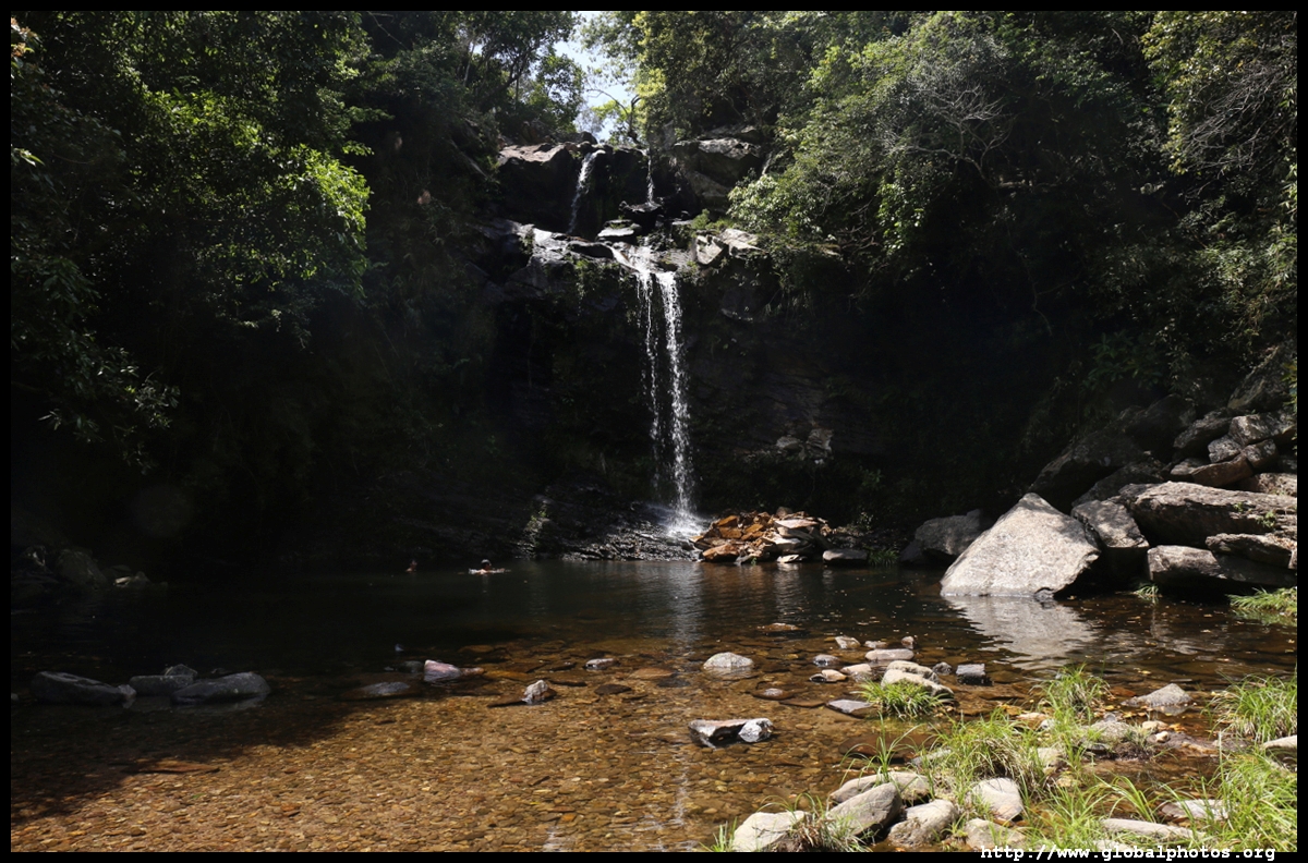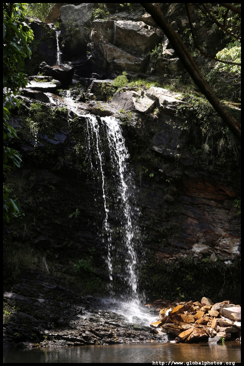The trail begins at the top of the waterfall and heads downhill. The river feeding it didn't have that much water, likely due to it being the tail end of the dry season.