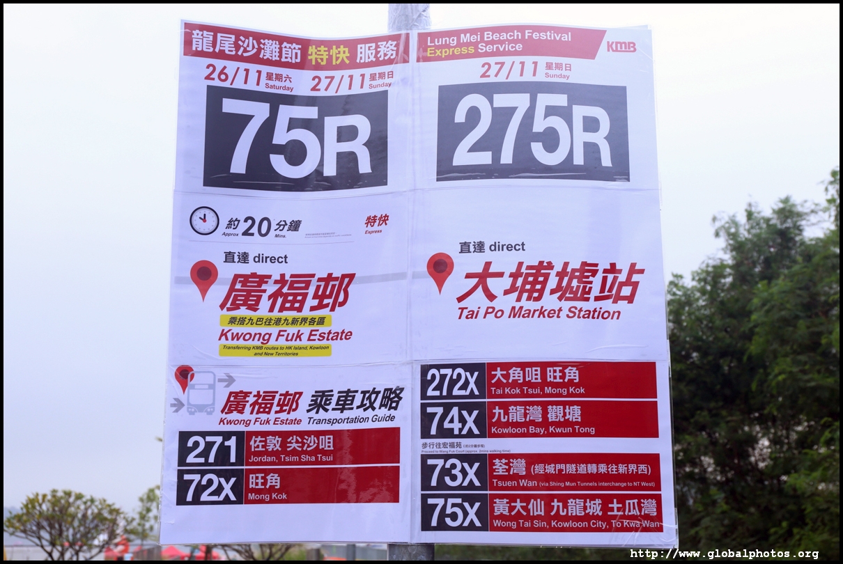 KMB launched a special bus route 75R connecting Tai Po Market station with the Lung Mei Beach Festival near Tai Mei Tuk. While pre-existing routes 75K and 275R run through this area, this route is a special express.
