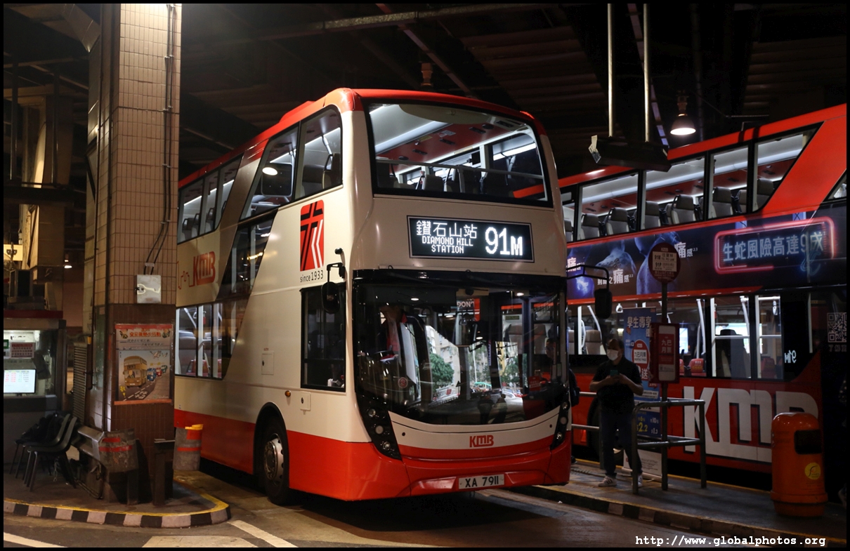 As part of KMB's 90th anniversary celebrations, 2 buses were decorated in a retro livery.XA 7911 was running on route 91M between Diamond Hill and Tseung Kwan O.