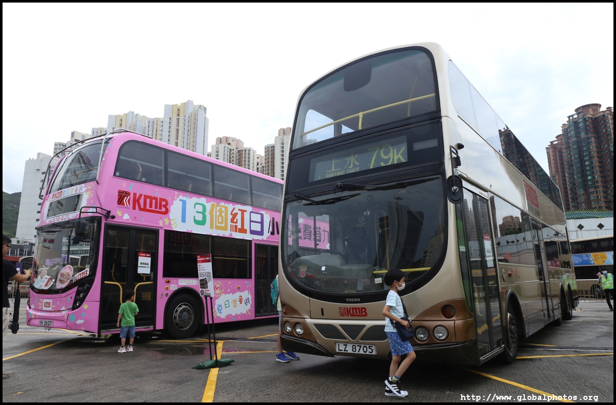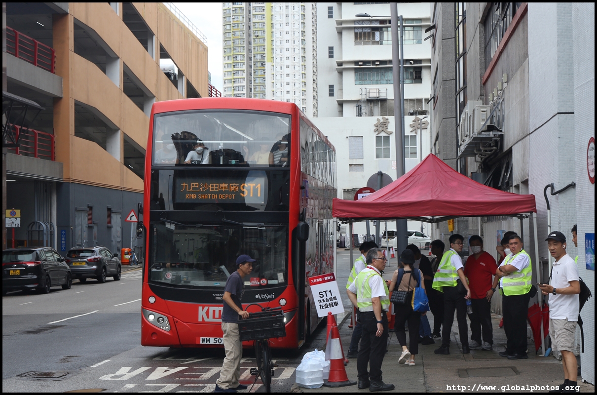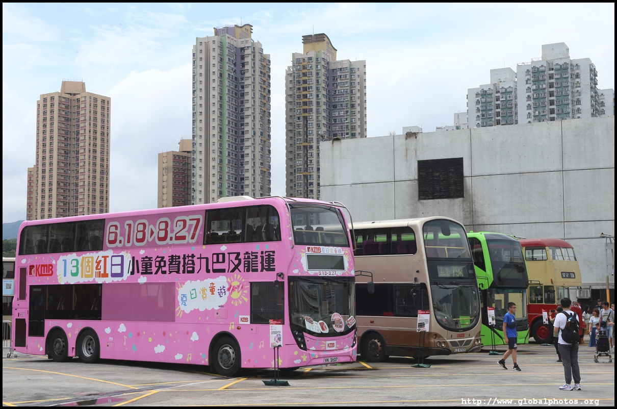 KMB hosted an open day at its Shatin Depot for a family outing and recruiting new staff. Held at the rooftop open deck, they placed a few old and new vehicles on display, as well as a souvenir shop. To get there, they offered a free shuttle bus ST1 from their street-level entrance through its depot to the roof, passing through the double decker bus cleaning machine along the way.
