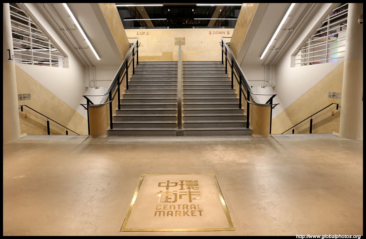 The Bauhaus style Central Market was built in 1939 and was originally slated for demolition. It was vacated in 2003 and plans for revitalization were mentioned in the 2009 Policy Address although the Grade 3 historic building sat empty for many years before works finally began in 2017. Only a small corridor was kept open to connect the Central-Midlevels Escalator with IFC.