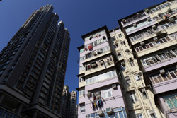 Bordering Sham Shui Po, Cheung Sha Wan is associated with older run-down residences, poverty, and industrial buildings. In the 1970s, the district was home to a vibrant garment industry, then once the factories moved to cheaper locations up north, an office district for exporters and merchandising companies.