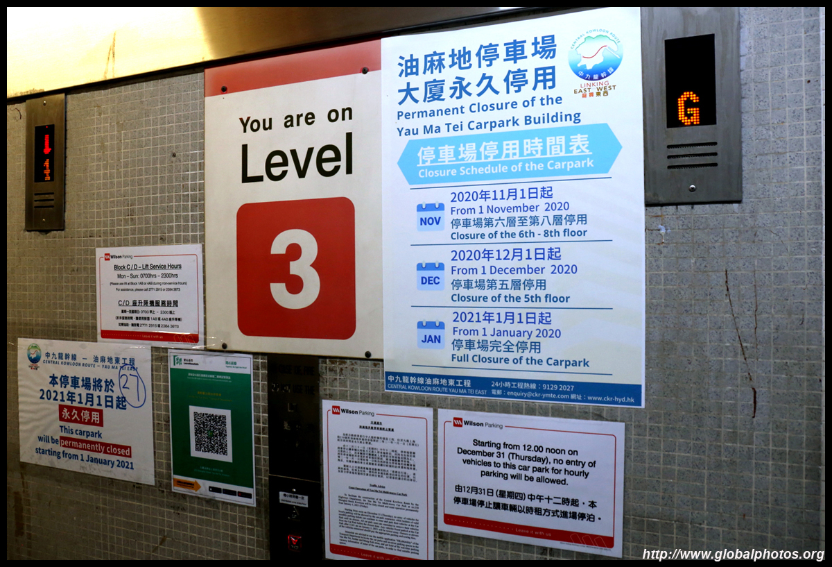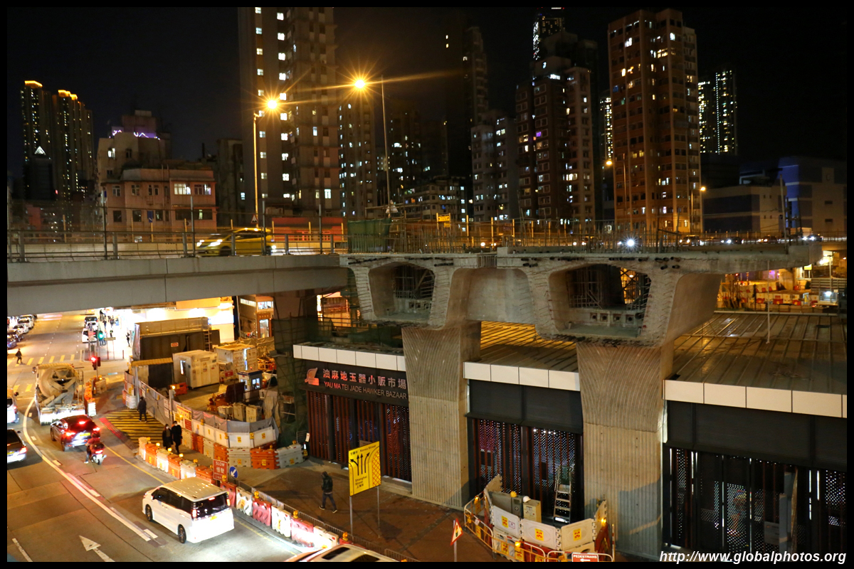 The Yau Ma Tei Carpark Building will be demolished in late 2020 to make way for construction. The Gascoigne Road Flyover actually traverses through the building, a fairly unique scene in the city that will disappear.