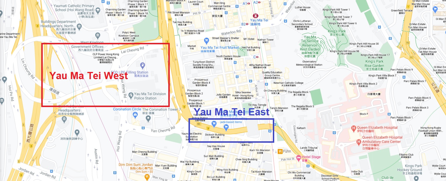 Project Website (Highways Department) Yau Ma Tei West The route will end with a large interchange to the West Kowloon Highway in Yau Ma Tei. Part of Hoi Wang Road north of the high-speed train station has been diverted to facilitate construction, with a landscaped deck expected to hang above the street to reduce the environmental impact.