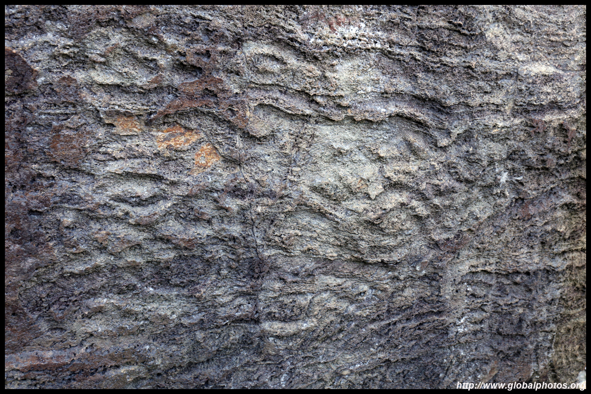 A sign and staircase leads down to the shore and a rock carving, which was discovered by hikers in 1978. The geometric patterns resemble animals and birds, but there is a debate whether this was man-made or natural.