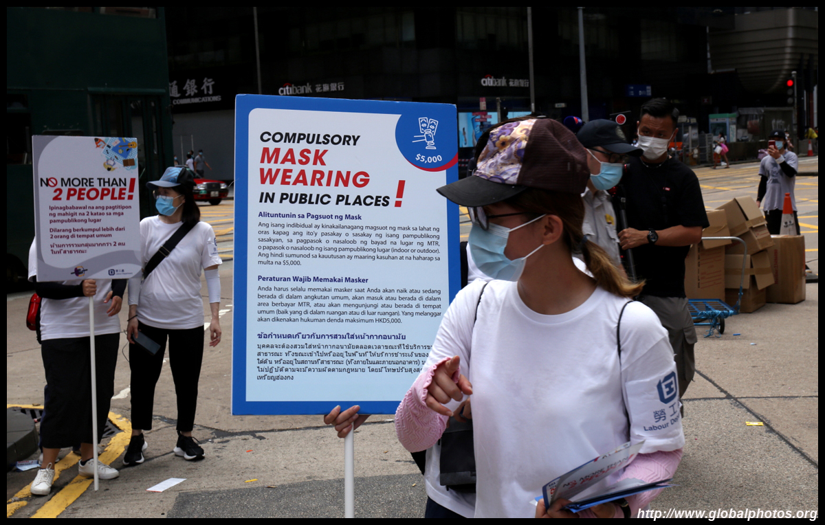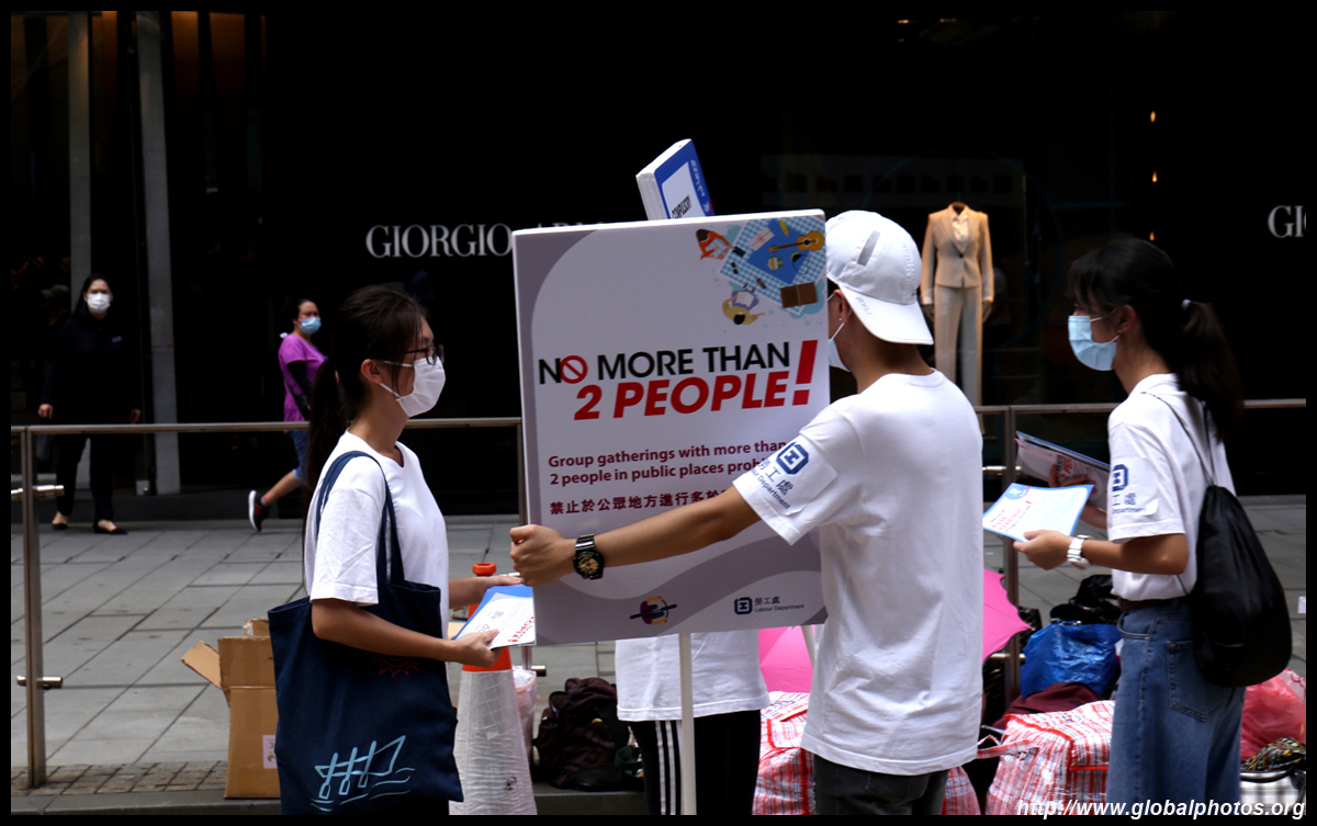 Sunday is the typical rest day for our domestic workers, many of whom come from the Philippines and Indonesia. With social distancing laws in place, only groups of maximum 2 are allowed. However, that wasn't the case in Central, where many of these workers congregate on Sunday and a few streets are closed off specially for them. While the police were quick to arrest pro-democracy protesters, they were far more lenient on the domestic worker groups with only leaflets and a sign.